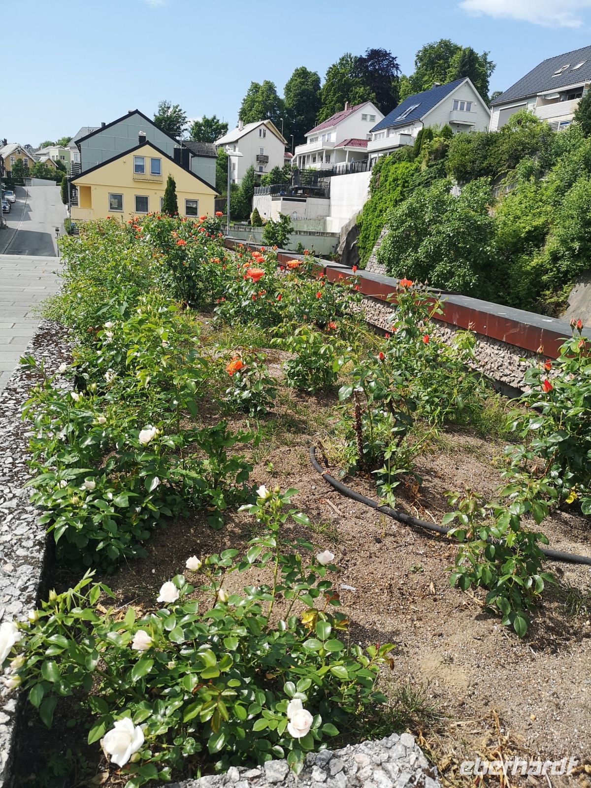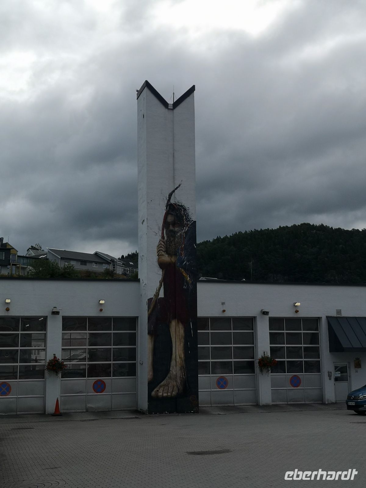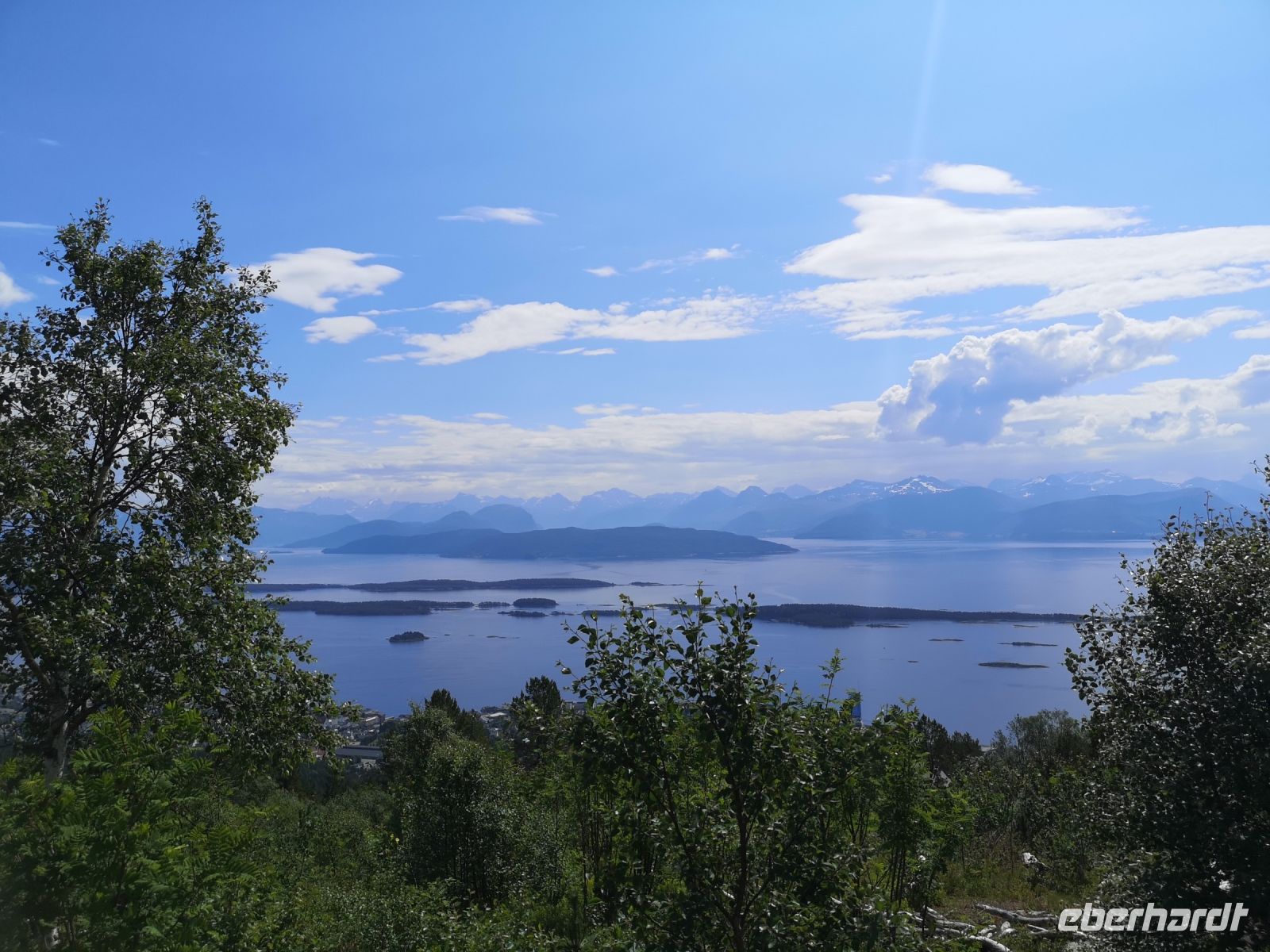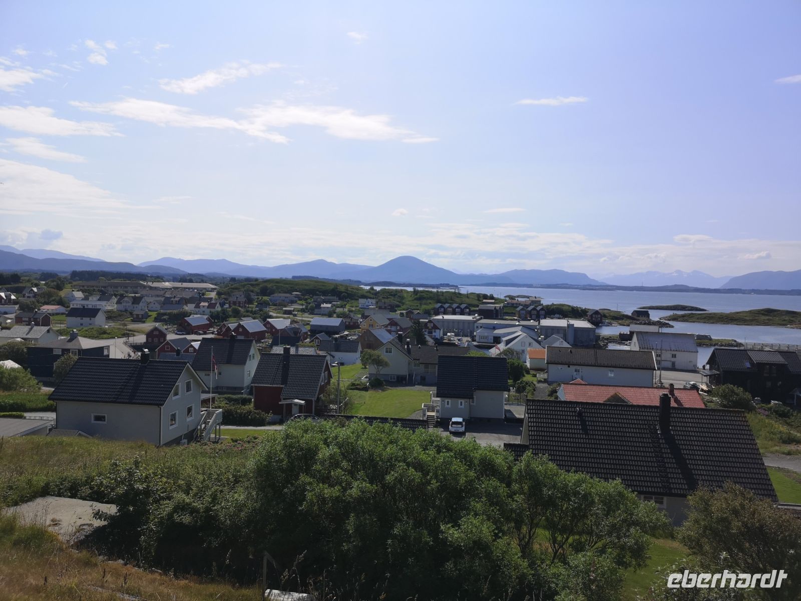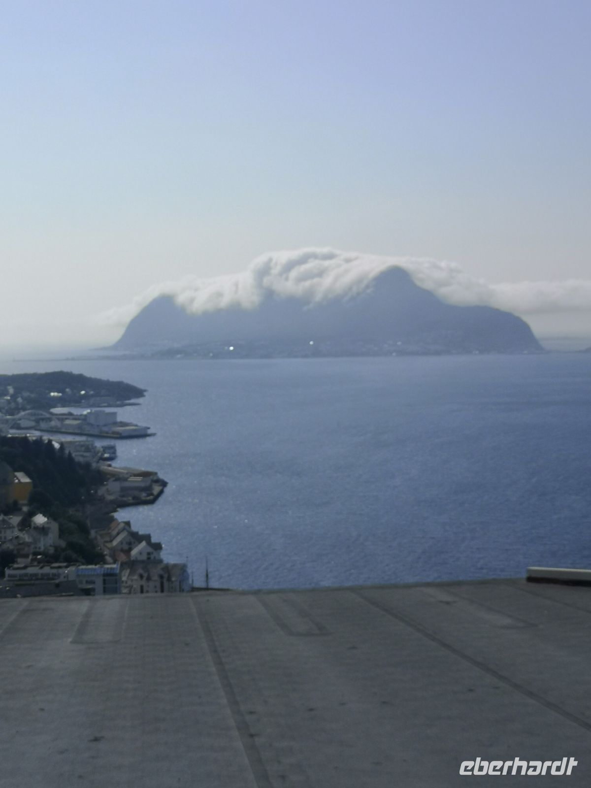 Für unsere Mittagspause wählten wir einen außergewöhnlichen Platz: gute 400 m über Molde, der Hafen- und Verwaltungsstadt von More og Romsdal, den Hausberg und Aussichtspunkt Varden. Vor der Kulisse von 222 Berggipfel im Hintergrund, zu unseren Füssen Molde am Romsdalsfjord. Später noch eine schnelle Stadtbesichtigung und ein Fotostopp auf dem Dach vom Rathaus, wo hunderte von Rosen gepflanzt sind. Danach noch ein heiliger Platz für alle Fußballfans: Aker, die Fußballarena und schon verlassen wir die Stadt. Zwei Stunden später erreichten wir Alesund
