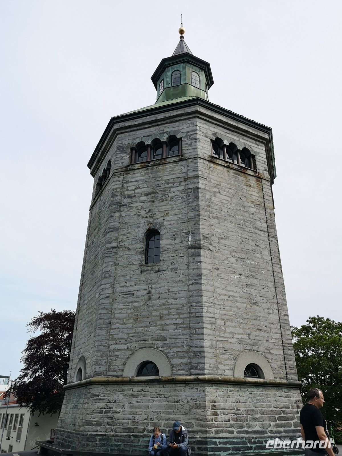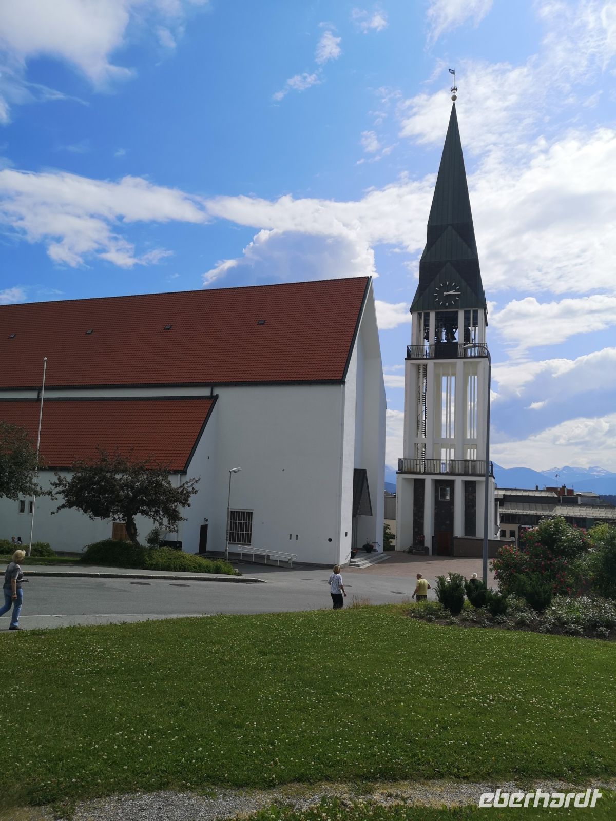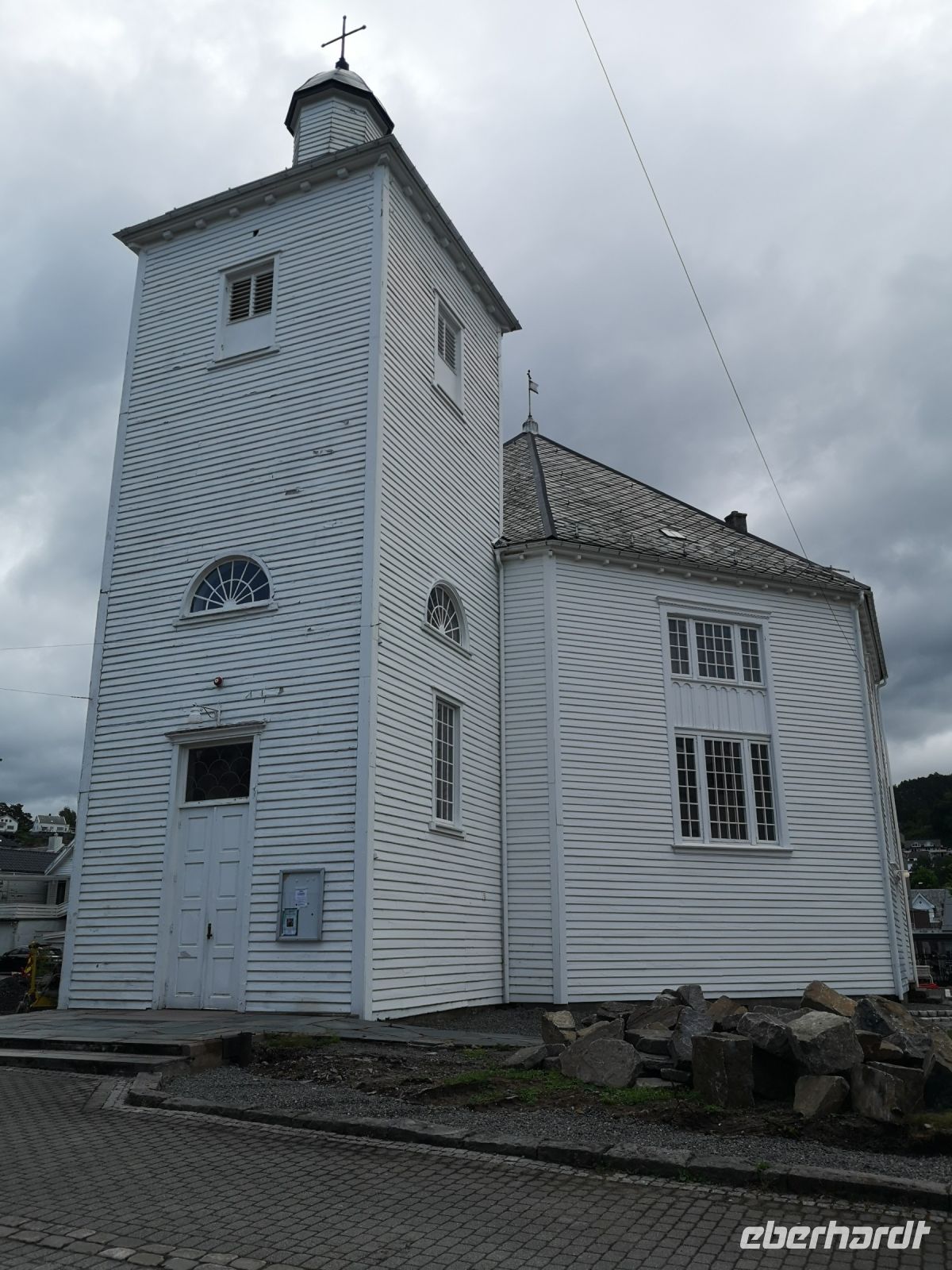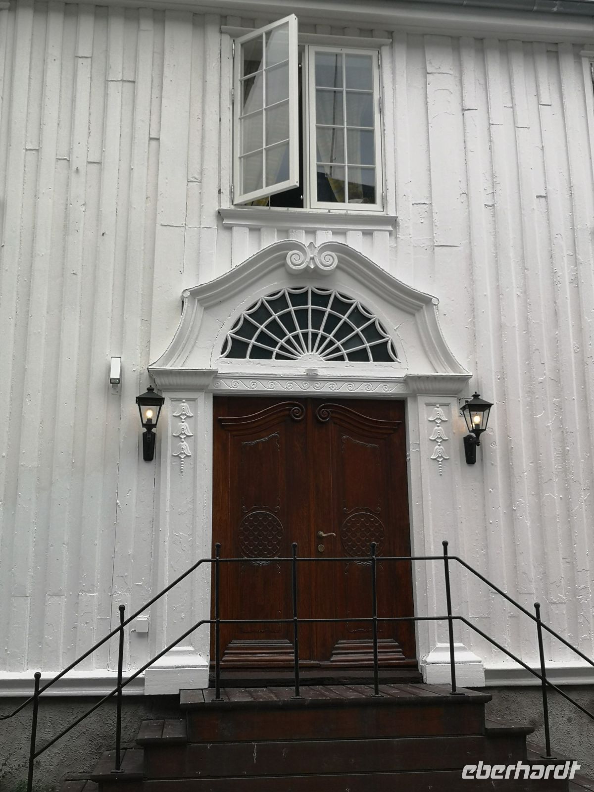 Der eher unruhige Skagerrak machte heute keinen Aufstand und so erreichten wir nach 2,5 Stunden Fahrt mit dem Katamaran den skandinavischen Löwen und wir setzten so zum ersten Mal auf dieser Reise unsere Füße auf norwegisches Land. Aber nicht trocknen Fußes. Wir dürften schon am ersten Tag eine der „norwegischsten“ Dinge kennenlernen: den Regen. Er hatte sich schon unterwegs angekündigt und wollte auch nicht aufhören. In Mandal, einem zierlichen Städtchen, wo man in Vergangenheit aus dem lachsreichen Fluss mitten in der Stadt fischen konnte und wo die größte Holzkirche Norwegens und überhaupt das größte Monument aus Holz gebaut steht, wollten wir auf Uranienborg emporsteigen. Stattdessen suchte man ein trockenes Plätzchen, meistens irgendwo in einem der vielen Kaffees in der Stadt. Und wenn die Zeit unseres Aufenthaltes in Mandal vorbei war, ließ auch der Regen nach.