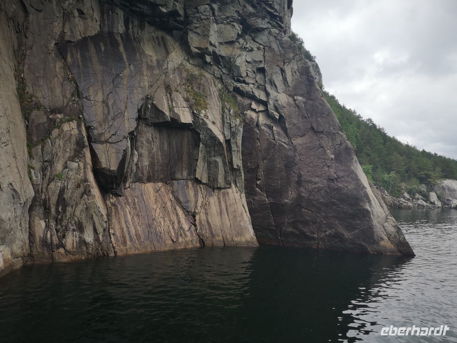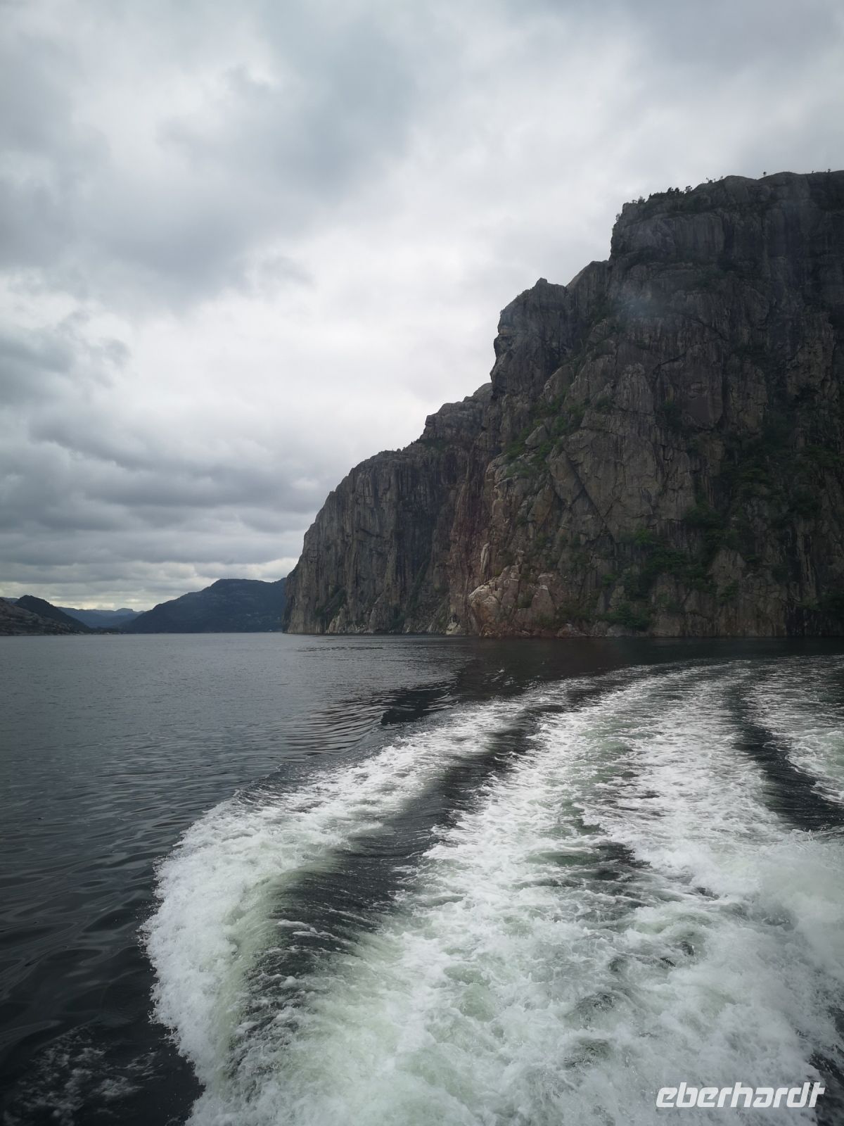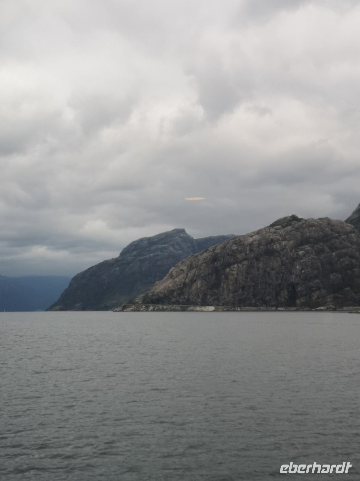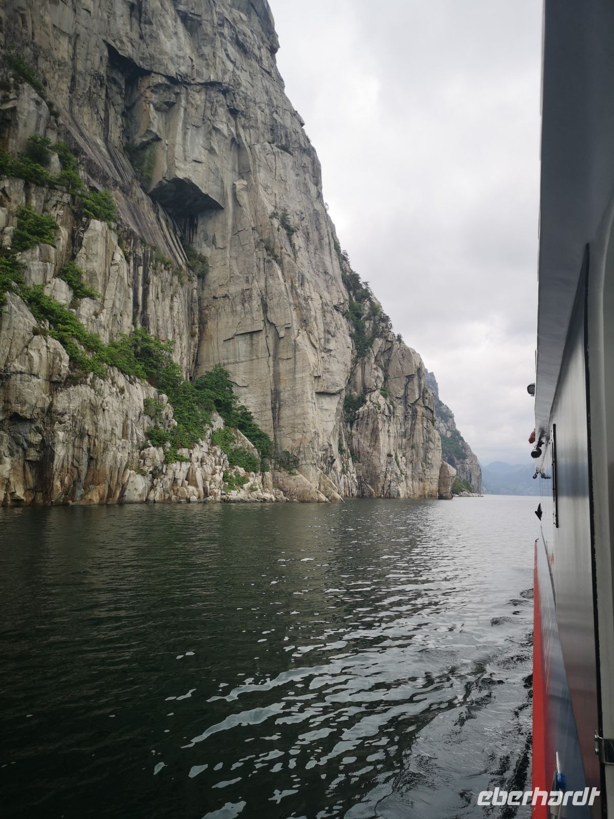 Unser Kreuzfahrtschiff, oder doch besser gesagt - Ausflugsdampfer – wo 17 Stück davon ihre Touren rund um Stavanger und Umgebung fahren, nahm uns mit auf die Fahrt hinein in den Lysefjord. Bis dahin hatten wir genug Zeit Gamle Stavanger (den ältesten Teil Stavangers, der unter Denkmalschutz steht) zu erforschen. Liegt sowieso gleich gegenüber dem Kai. Gern hätte ich ein paar Fotos ohne Menschenmenge gemacht, aber ein Costa Schiff mit der Kapazität von 5000 Passagieren ließ gefühlt eine genauso große Menge von Menschen ans Land. Ich denke, Gamle Stavanger hat in der Vergangenheit schon anderen Belagerungen gesehen und erlebt. Trotzdem war das Schlendern durch die schmalen, teilweise steilen Gassen ein besonderes Erlebnis. Genauso ein Erlebnis par exzellent war unsere Fahrt auf dem Lysefjord, eingebettet zwischen emporsteigenden Bergwänden, rauschenden Wasserfällen, die sich wie weiße Bänder von ganz oben bis zur Wasserlinie fallend überall erstreckten. Und als Krönung: Preikestolen: 604 m über uns, ein Plateau, wo man schwindelfrei sein muss, um über den Rand hinunter zum Fjord zu schauen, geschweige die schwindelerregenden Szenen aus Mission Impossible mit Tom Cruise. Ganz ehrlich gesagt, mir war meine Mission Possible von unten lieber, vom Schiff aus. Und ich denke, ich war nicht die einzige mit solch Gedankengut.
