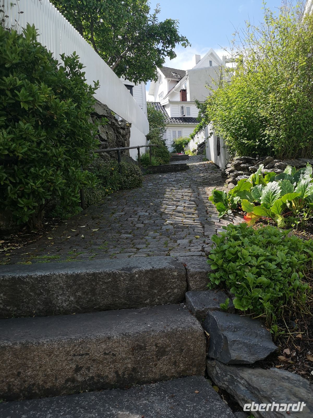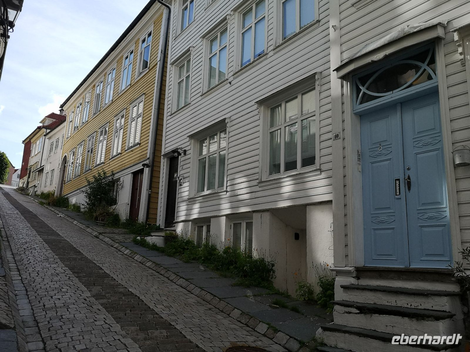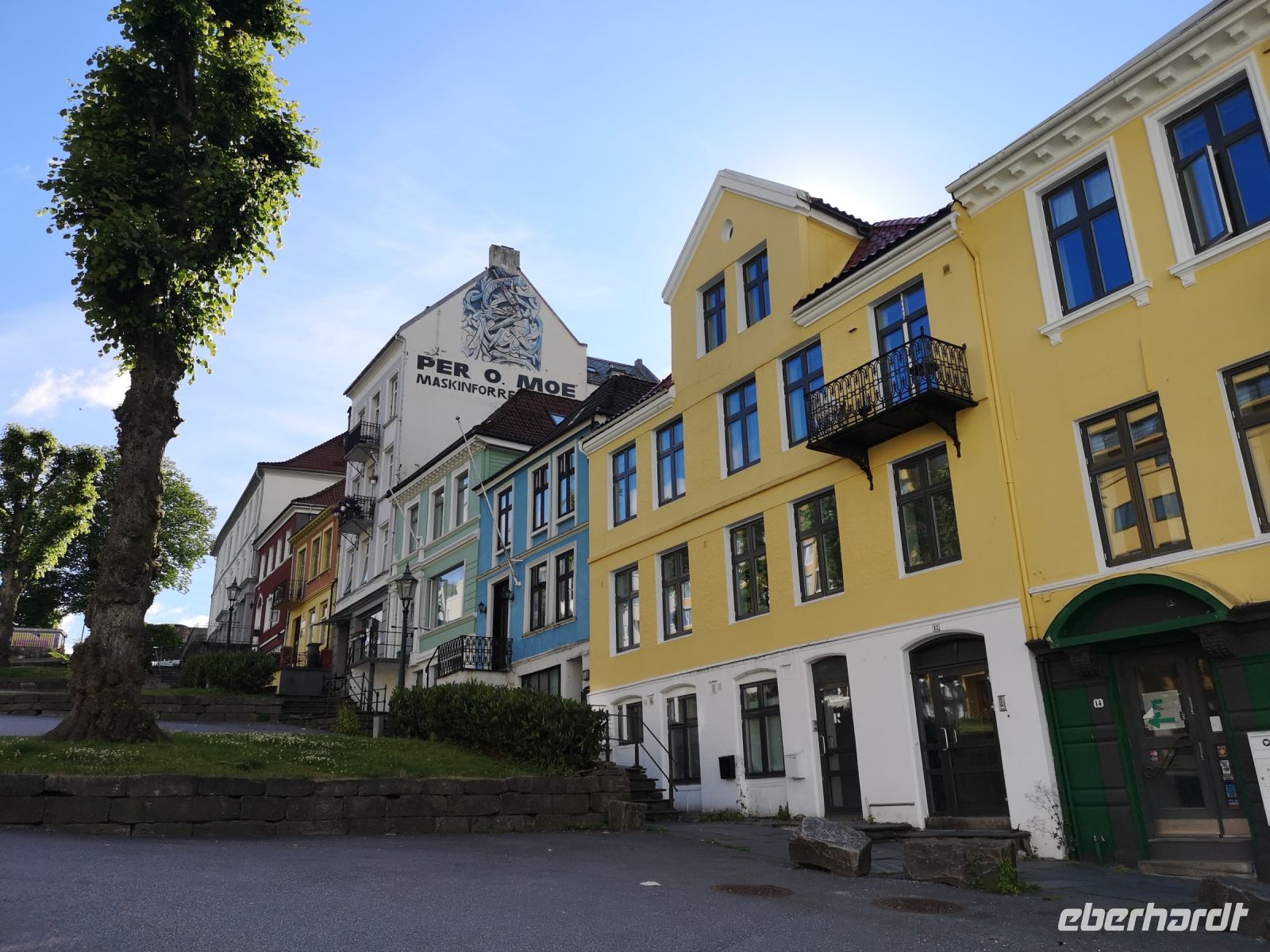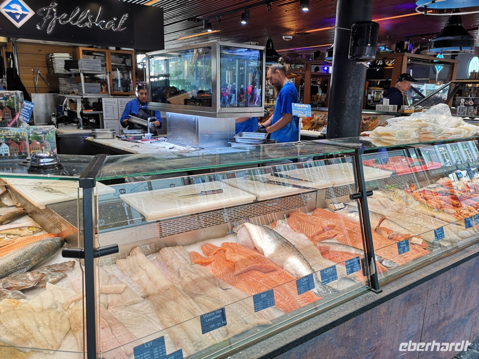 Genau vor 5 Tagen waren wir in diesem Gebiet unterwegs: Kaupanger, Laerdal, Aurlandsvangen … . Nur dieses Mal war unser Ziel Bergen und deswegen nahmen wir die schnellste Verbindung und nur ab und zu waren uns die Landesabschnitte schon bekannt. Und weil wir uns schon so auf die Rekorde abgesehen hatten, fuhren wir noch durch Laerdaltunnel: mit 24,1 km der längste der Welt. Flam war uns auch schon bekannt, aber für eine sehr kurze Pause hat sich der Ort direkt angeboten. Und ich denke, ich war nicht die Einzige, die Flam als alten Bekannten und als guten Freund gegrüßt hatte. Weiter über Voss und Dale (Wollprodukte Dale of Norway !!!), Indre Arna vorbei und schon haben wir Bergen erreicht. So weit so gut. Mit eine halben Stunde Vorsprung und mit einer der besten Stadtführerin Angela durchstreiften wir Bergen und machten das Beste aus der Zeit, die uns zur Verfügung stand. Und es blieb uns noch genug zur freien Verfügung. Ein Besuch des Fischmarktes, eine Fahrt mit der Bergbahn hinauf zum Floyen, Einkaufsbummel in den Kaufhäusern, die bis 22.00 offen waren. Oder einfach mal so chillen – letztendlich war unser Programm immer ziemlich voll und man hatte nicht immer viele Möglichkeiten für eigene Aktivitäten. Übrigens: als Hauptspeise zum Abendbrot wurde uns u.a. Renntierbraten serviert.