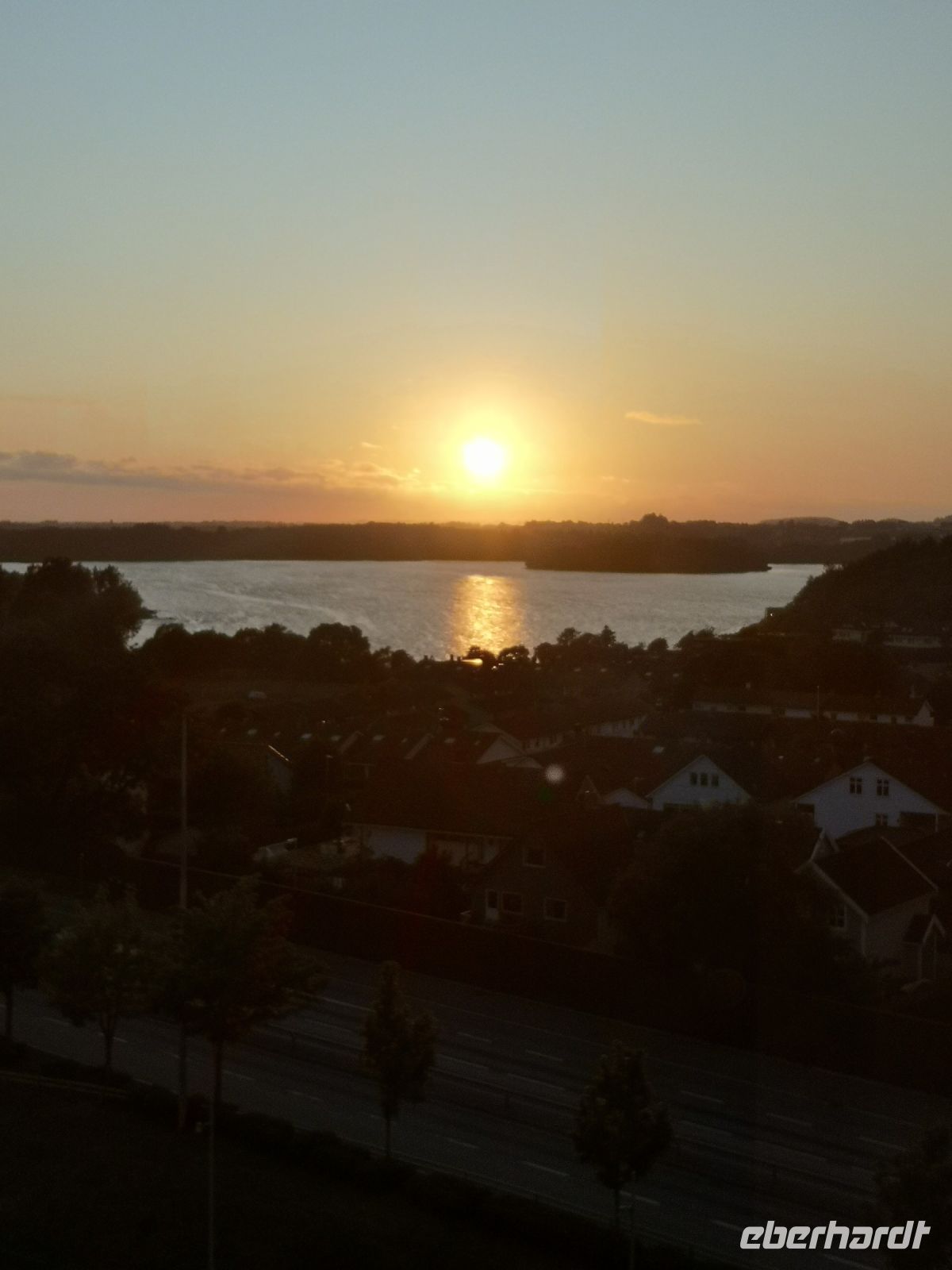 Abends, in unserem ersten Hotel in Aalborg, Dänemark: nach dem guten Essen stieg schön langsam die Müdigkeit in die Knochen und man ist froh, wenn man im Bett liegen konnte. Ja, der Tag war lang: über 930 km und 15 Stunden und mehr Fahrt hinter uns, Zustiege, Stopps, Pausen … Das Wetter hat es gut mit uns gemeint und auch die Fahrt selbst war kurzweilig: man beschäftigte sich mit Gedanken was auf uns zukommt, beobachtete die Mitreisenden usw. Unser Busfahrer Jan gab alles von sich, um aus dem Gegebenen das Maximale rauszuholen. So kamen wir tatsächlich früher als geplant nach Aalborg und jeder freute sich darauf. Man könnte etwas länger unseren Aufenthalt im Hotel genießen, wenn…: nicht alle Zufahrten rund um unser Hotel wegen einer Veranstaltung gesperrt gewesen wären. Nach der ersten, zweiten Ehrenrunde durch die Innenstadt war man allmählich etwas nervös. Aalborg ist zwar eine tolle Stadt mit bewundernswerter Architektur aber in diesem Moment stand die Bewunderung dem Wunsch nach Ausstieg aus dem Bus ganz hinten. Letztendlich verschaffte sich Jan kurzerhand eigenständig die Zufahrt zum Hotel. Dem Glück muss man gelegentlich etwas nachhelfen ??.