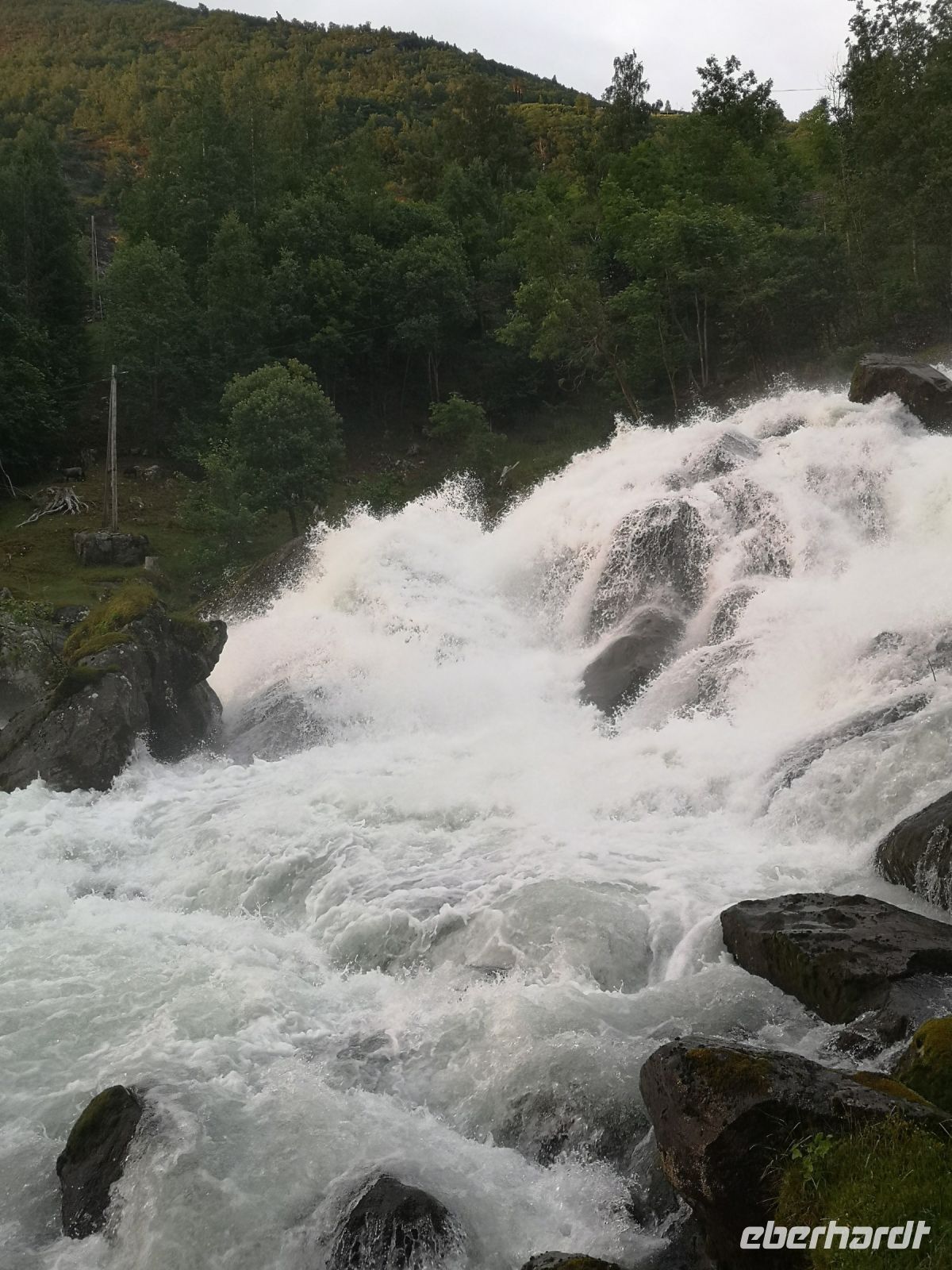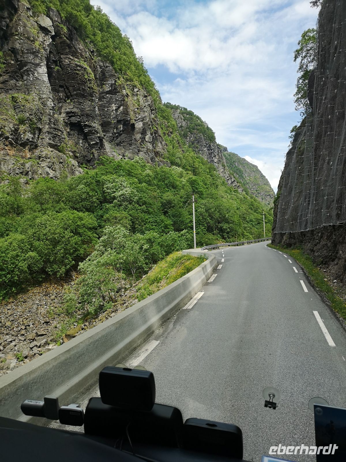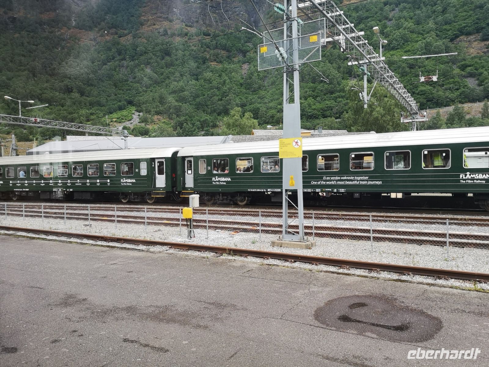 Die Wasserfälle zählen wir nicht mehr – es gibt so viele, einer interessantester als der andere, aber das wäre eine Geschichte für sich selbst. Der Weg führte durch Naeroydalen bis Flam. Man kann sich vorstellen, wenn zwei Berühmtheiten auf demselben Platz zu finden sind: die Flamsbana, eine der schönsten und spektakulärsten Bahnstrecken Europas und der Naeroyfjord: atemberaubend, wild, schmal und eingetragen in UNESCO Weltkulturerbe. Da ist dann die Menschenmenge nicht mehr abzudecken.