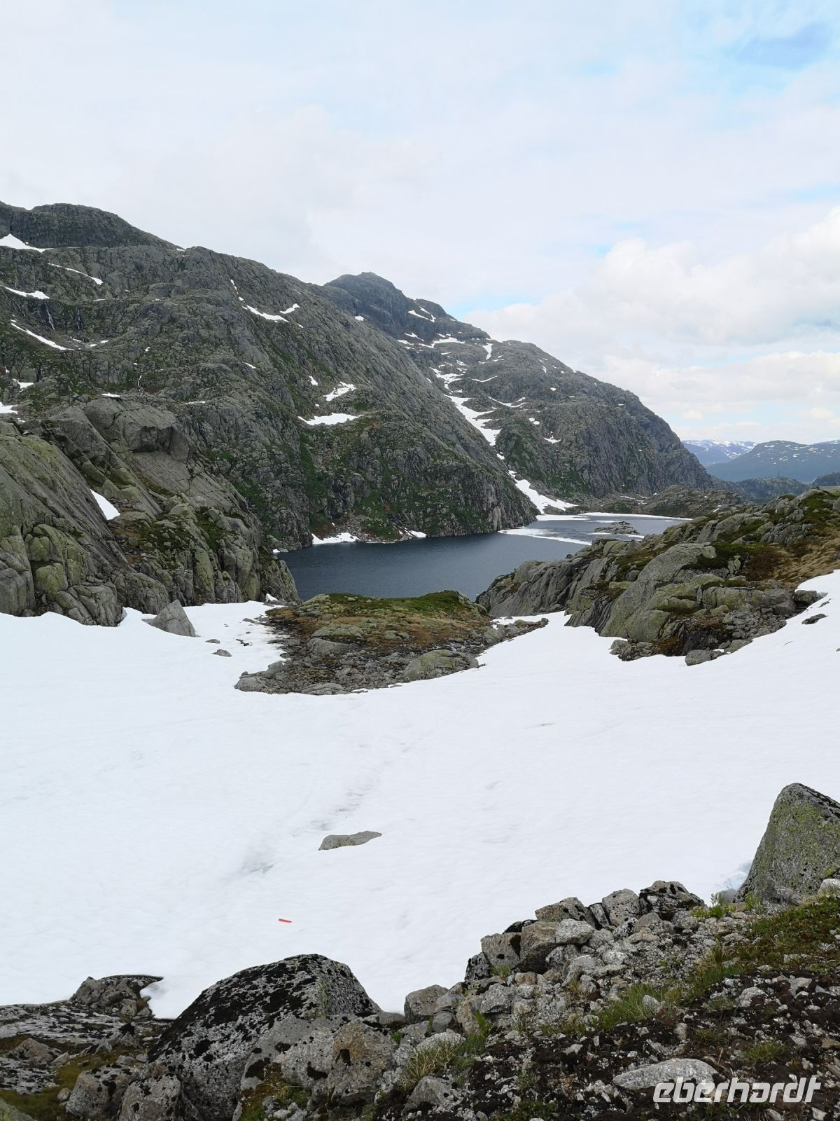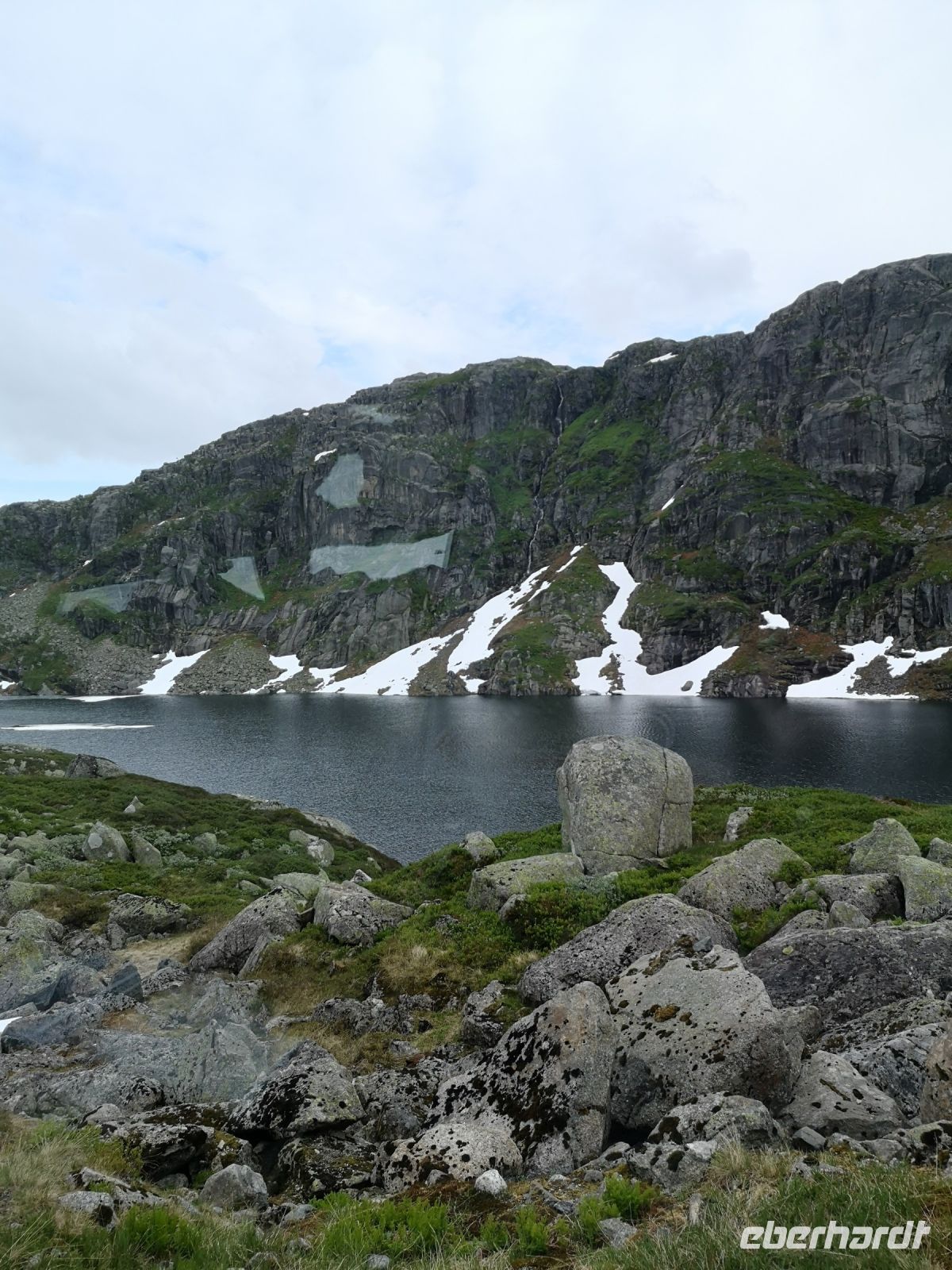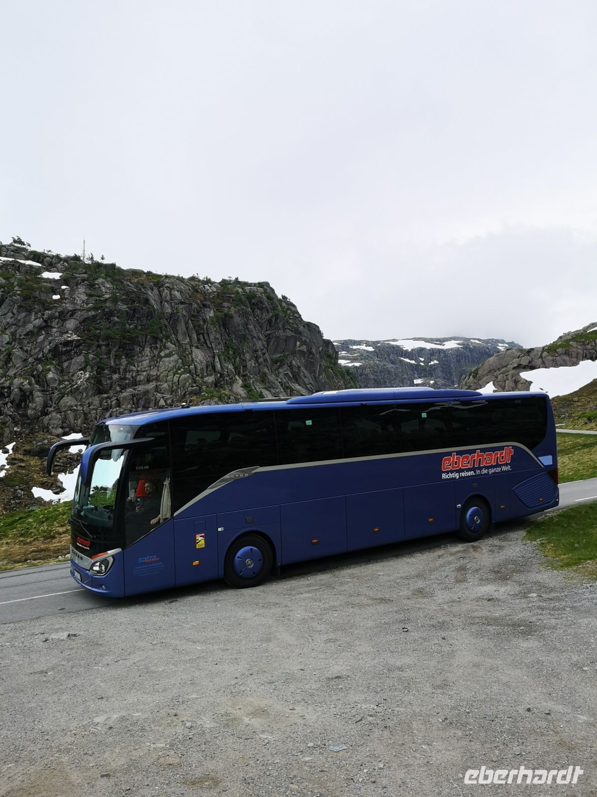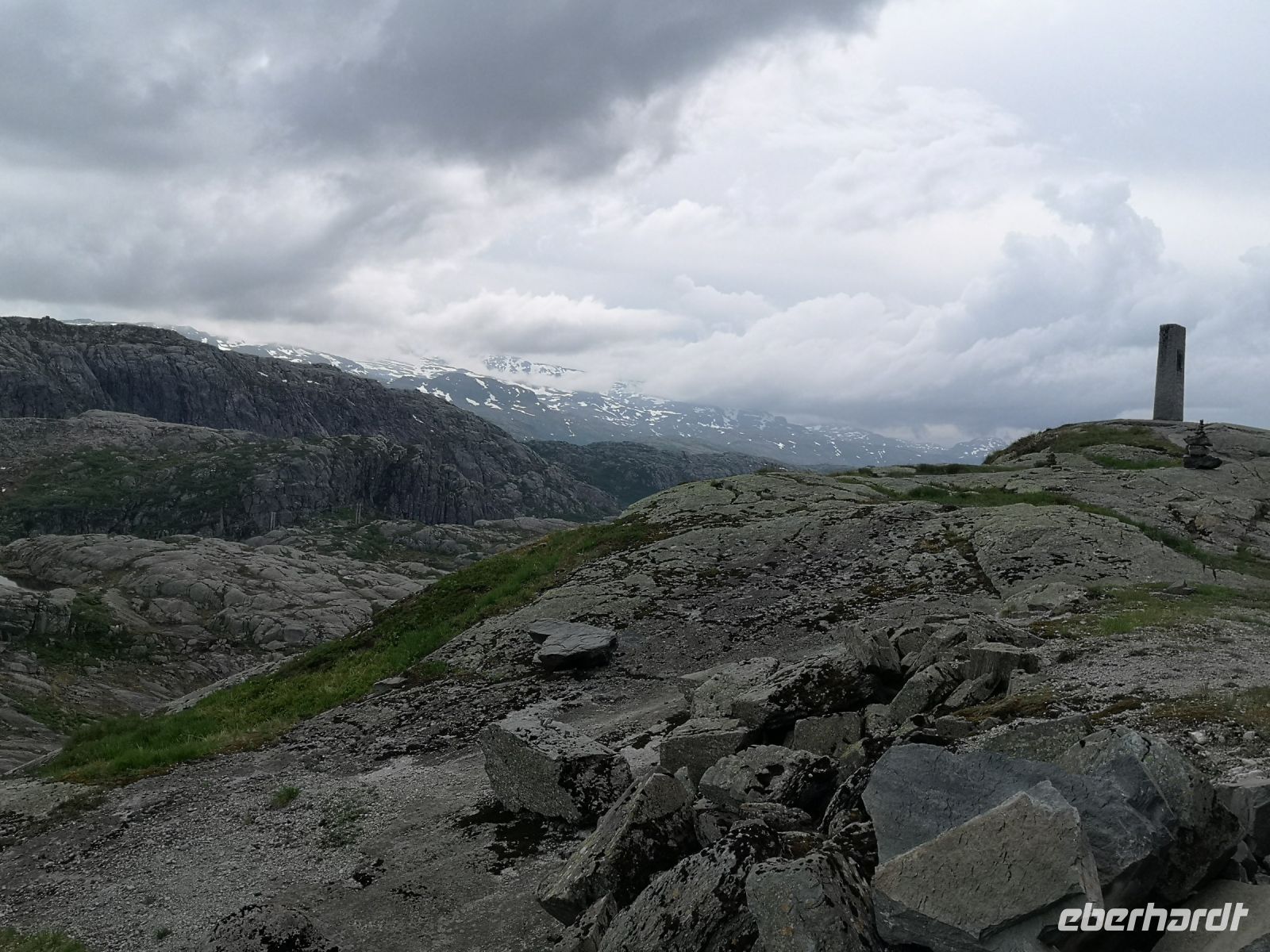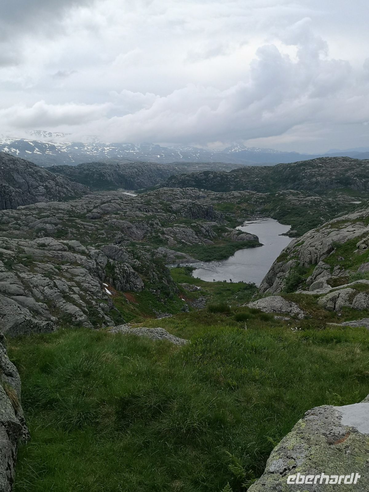 Von da an beginnt ein stopp and go: wir machten einen Stopp, wo man ein tolles Foto machen konnte, zB. Parkplatz Ostasteidn über den Sandfjord, oder Svandalfossen – ein Wasserfall von 180m Höhe und nebenan 540 Stufen, wenn man ihn erklimmen möchte. Kurzer Stopp in Sauda und schon gehts bergauf zum Saudafjell - einer Hochebene oberhalb der Baumgrenze, die auch norwegische Tundra genannt wird. Die Passstraße steigt bis auf 900 m Höhe hinauf und wurde 1960 mit amerikanischem Kapital gebaut. Sie ist eine reine Sommerstrasse, im Winter liegen hier 5-6 m Schnee und sie ist gesperrt. Saudafjell war die erste Hochebene und sie hat mit ihrer Landschaft jeden fasziniert. Ich denke, jeder würde sein Empfinden beim Anblick auf diese Natur anders beschrieben – und das ist auch gut so. Immer wieder hielten wir an und versuchten die schönsten Motive vor die Linse zu bekommen.