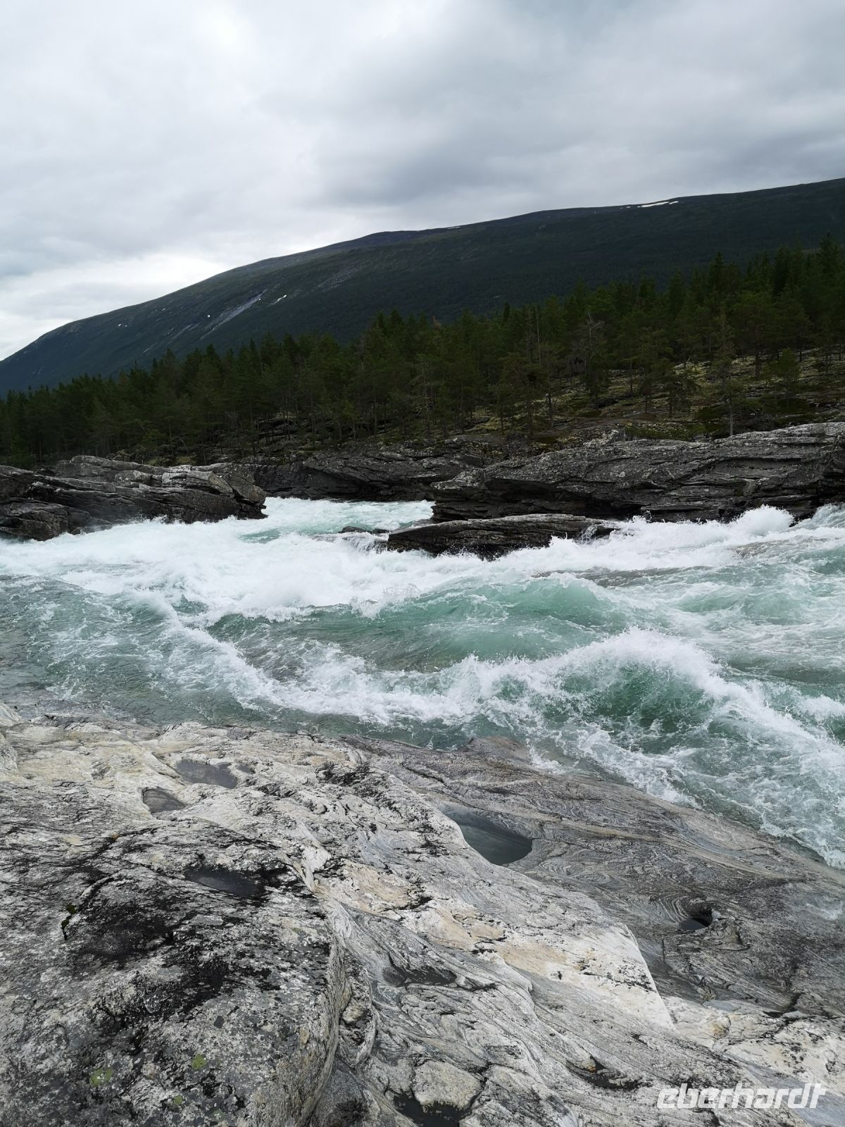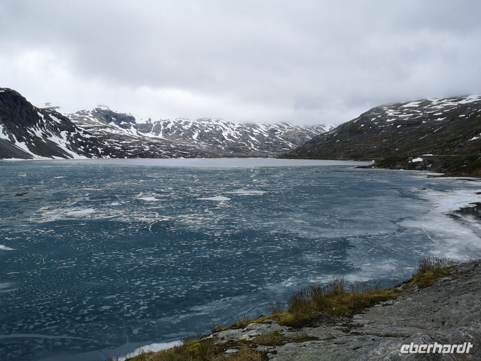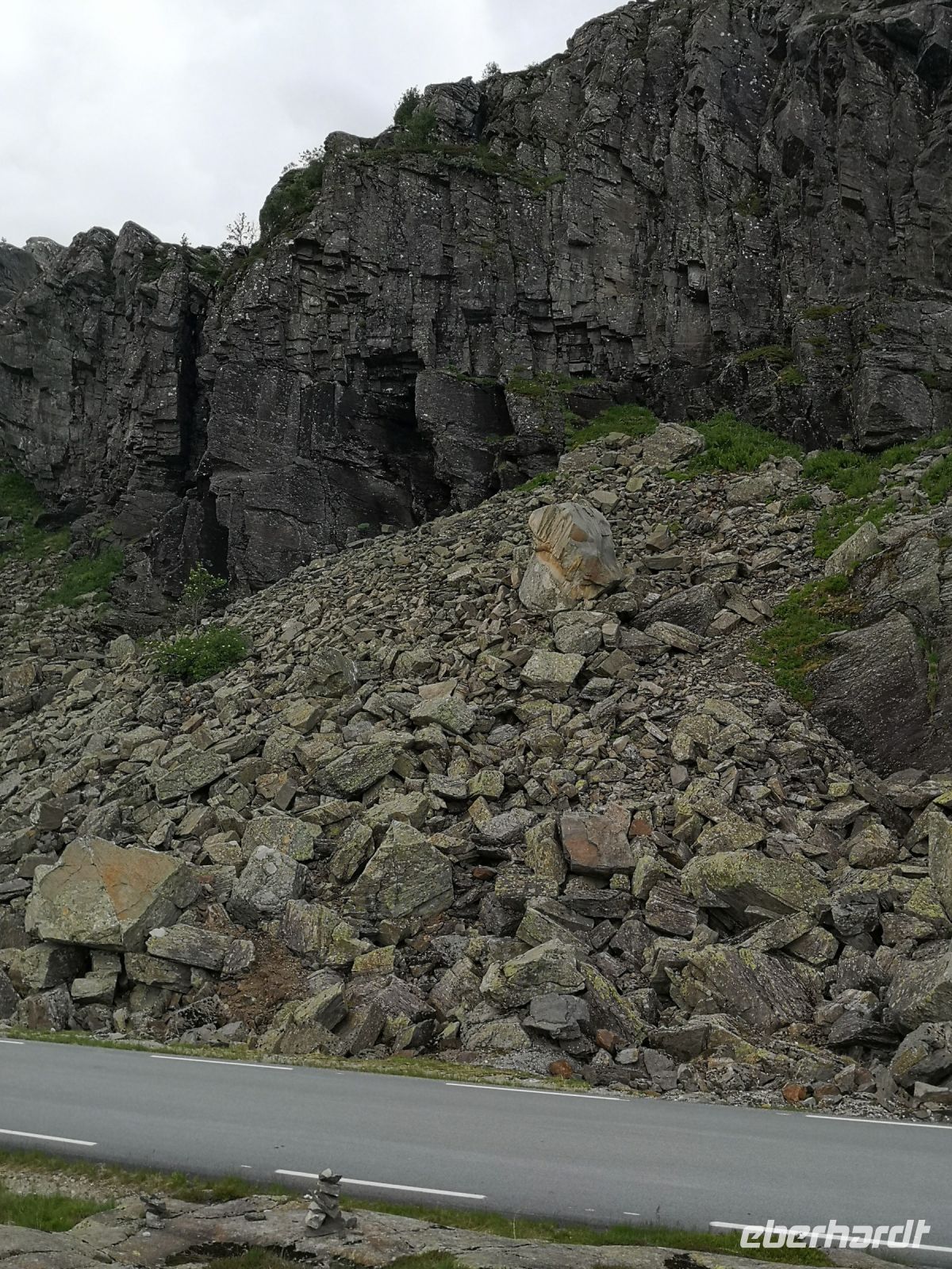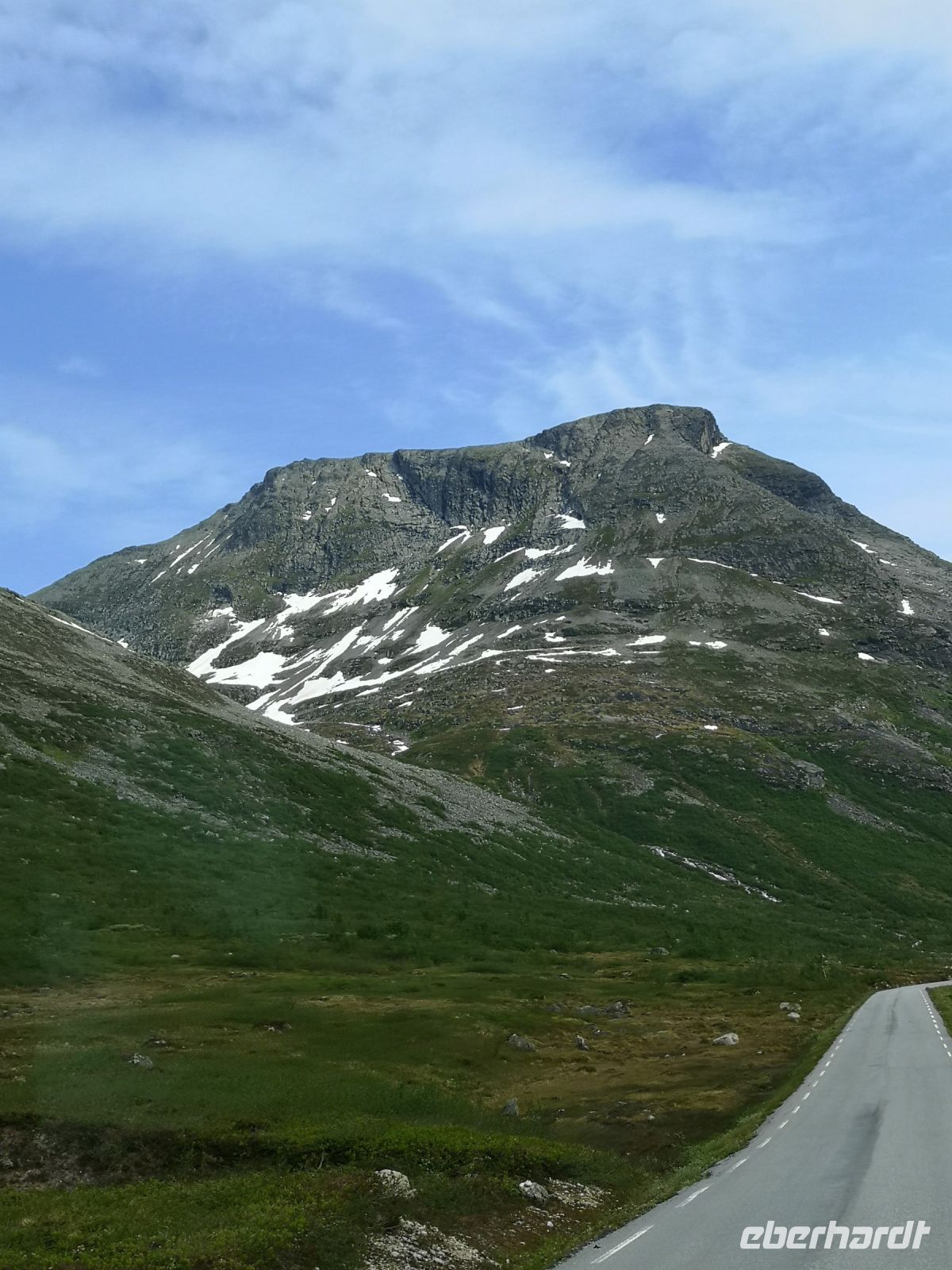 Wenn man schon gedacht hat, das wars mit dem Höhepunkt, der wurde doch eines Besseren belehrt: Sognefjellveien! Die höchstgelegene Passstraße Nordeuropas mit 1434 m Höchstpunkt und 110 km Länge, ist die älteste Verbindung zwischen Ost- und Westnorwegen. Aus einem alten Handelsweg, wo nicht nur Händler unterwegs waren, sondern auch die Räuber, bauten 1938 die arbeitslosen Jugendlichen den Weg in eine autofahrttaugliche Straße um. Für mich war dieser Abschnitt der Reise eine Reise in die Vergangenheit, zum Ursprung. Eine Geburtsstätte der Gletscher, Täler, Fjorde……. Von allem, was wir von der Natur bis jetzt auf dem Weg gesehen haben. Und noch mehr. Nicht umsonst nennt man Jotunheimen „das Land der Riesen“. In jeder Hinsicht: die größte Berge Norwegens befinden sind hier, majestätische Gletscher nehmen einem schlicht den Atem weg. Kein Wunder, dass die Menschen am Anfang der Geschichte geglaubt hatten, dies kann nur die Heimat der Riesen (und Dämonen) sein. Oder glaubt man das noch heute?