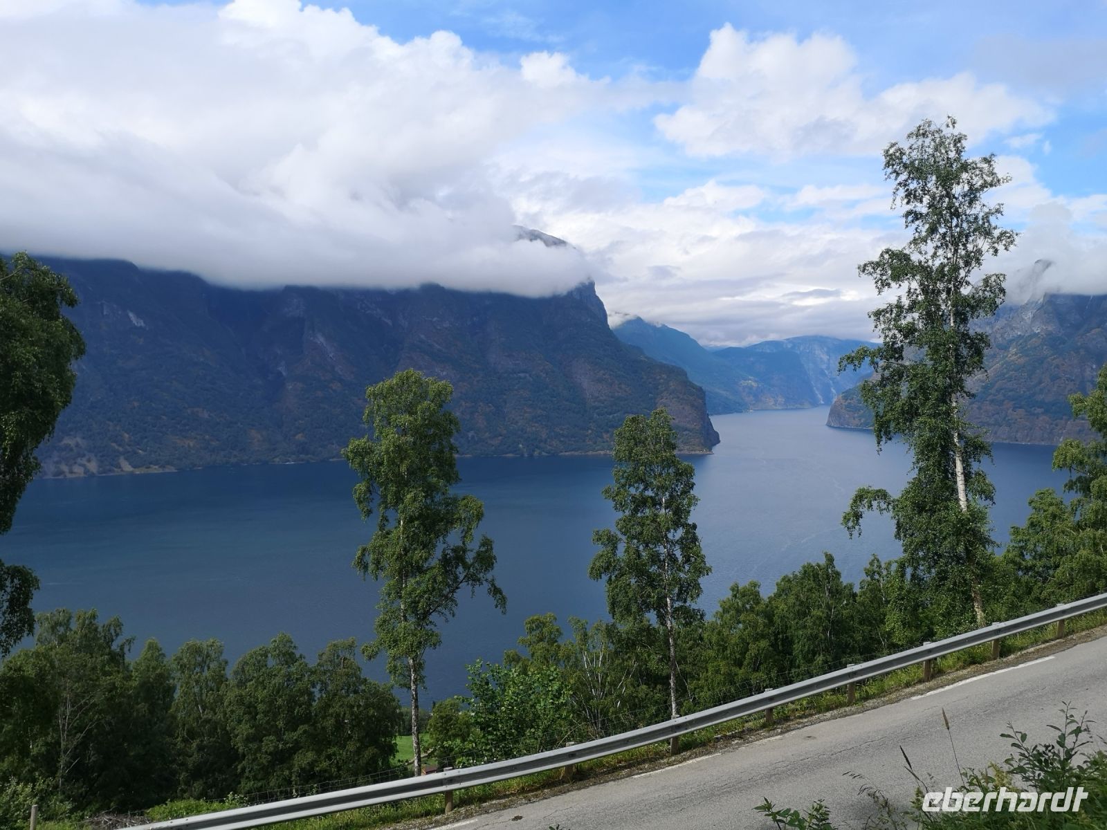 Von da ging es in Richtung Aurland – über das genauso spektakuläre Aurlandfjell -über 47 km atemberaubende Gebirgstrecke bis Laerdal, und der höchste Punk liegt bei ca. 1300 m. Natürlich, ein Muss ist die Aussichtsplattform Stegastein, 650m über den Aurlandsfjord ragend und selbstverständlich ein Motiv für Fotos und Selfies par exzellent.