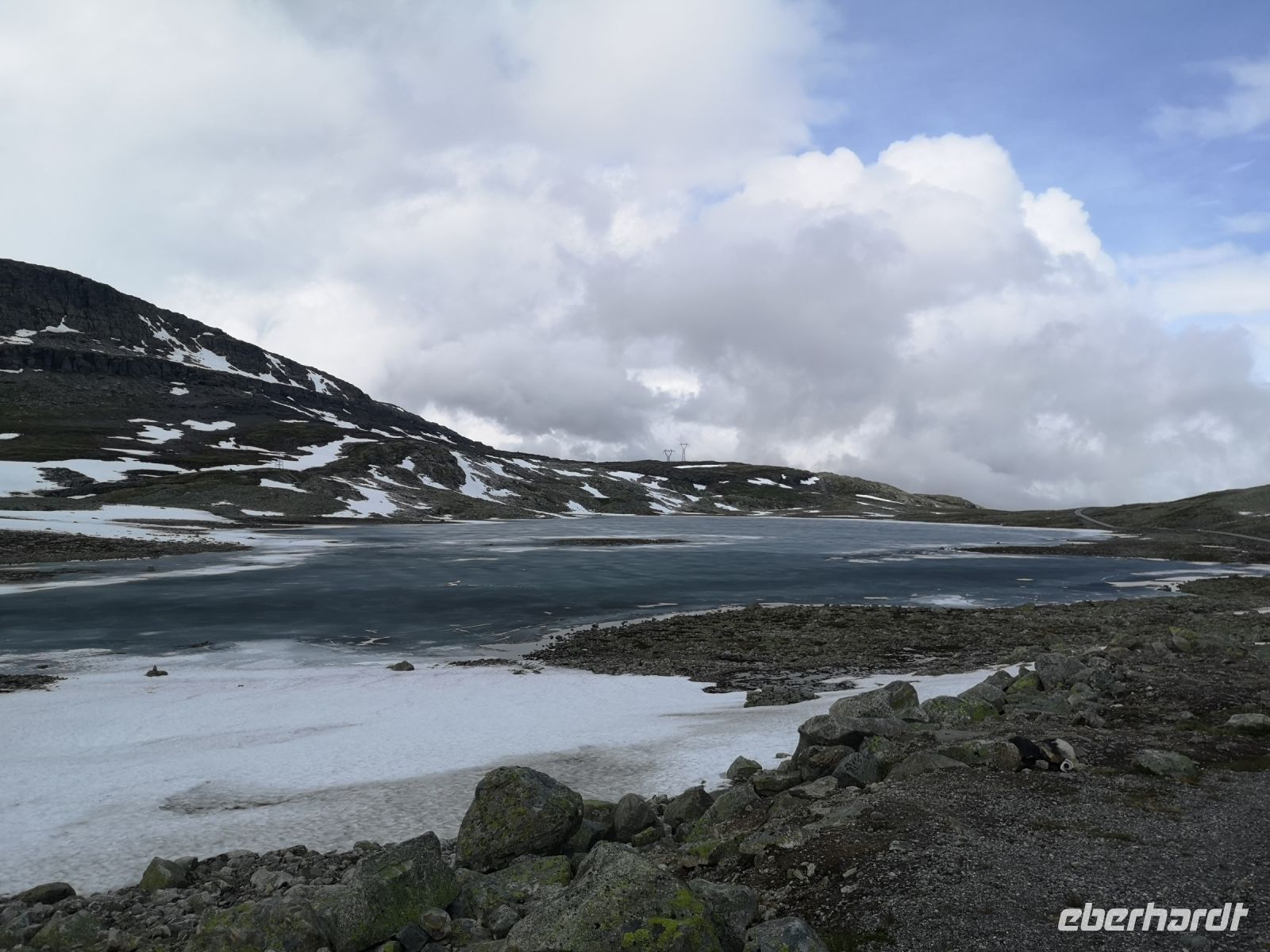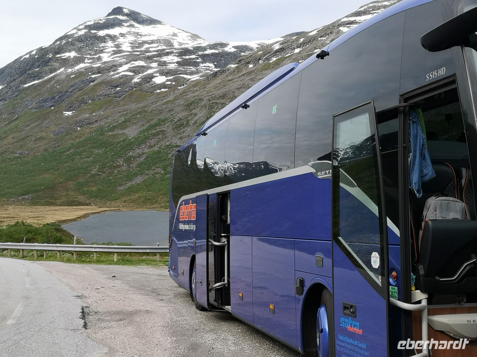 Die kurvige, schmale Sommerstrasse mit der Namen Schneestrasse war offen für den Verkehr (ist aber nicht immer so – je nach den Schneeverhältnissen) und man hörte immer wieder im Bus ein „Aaahhh“ und „Ohhhhhh“ und man konnte nicht genug Fotostopps machen um dieser Naturjuwel zu verewigen. Diesmal bekamen wir vor die Linse auch einen, auf dem Müll schlafenden Bären – Vedahaugane. Ein Denkmal für den „Naturschutz“ oder besser ein Denkzettel für unser Verhalten mit dem Müll.