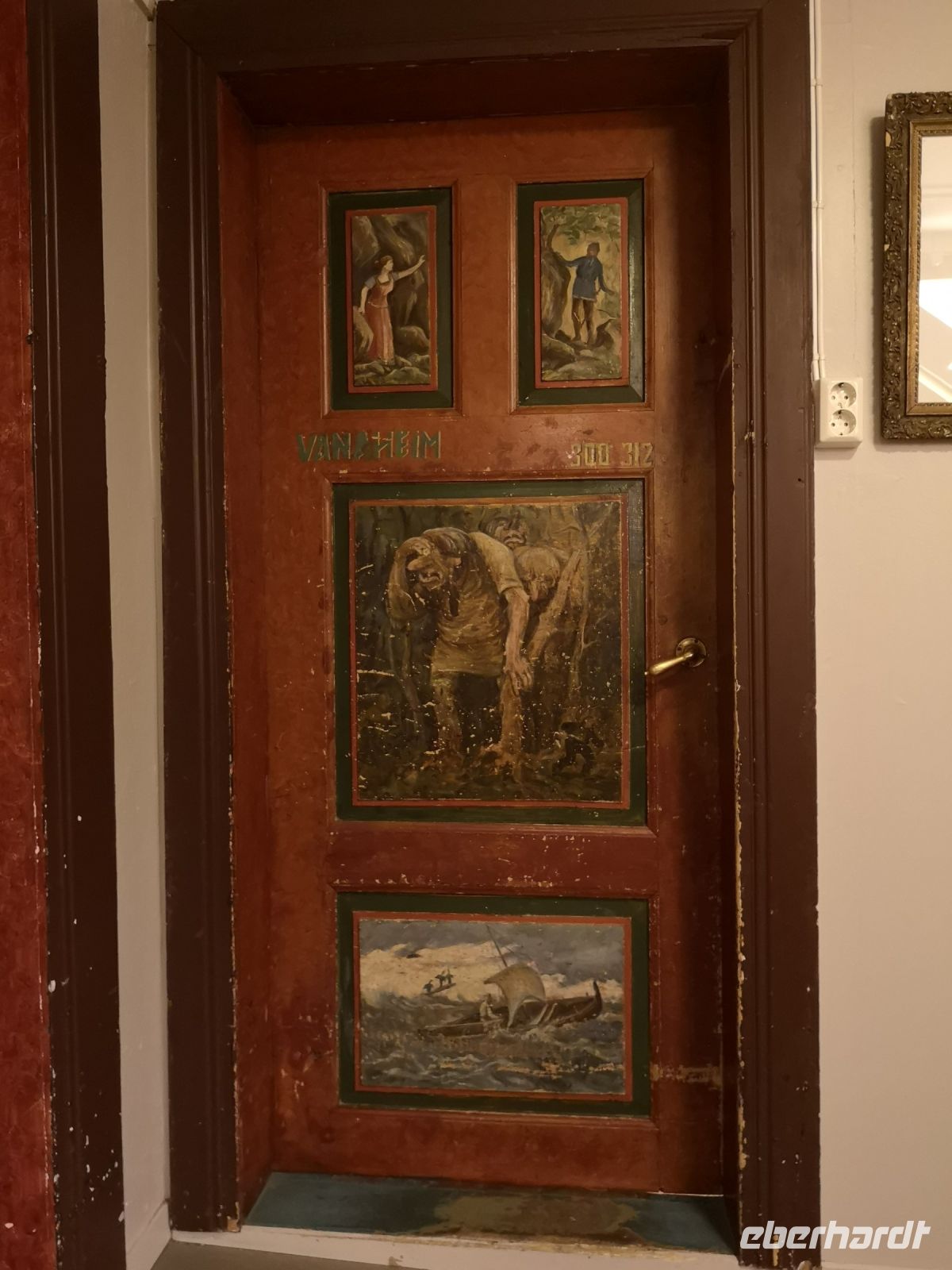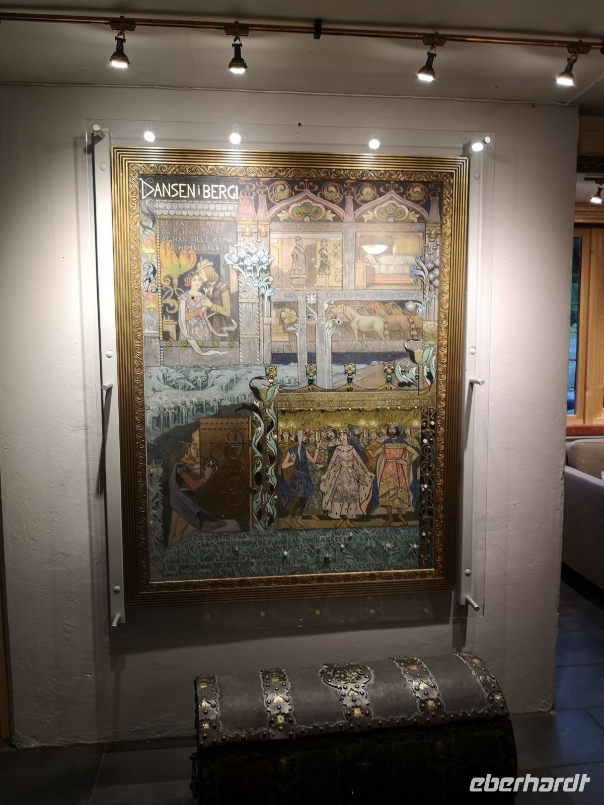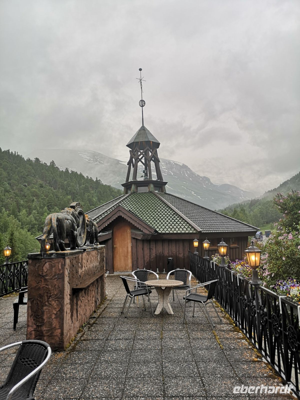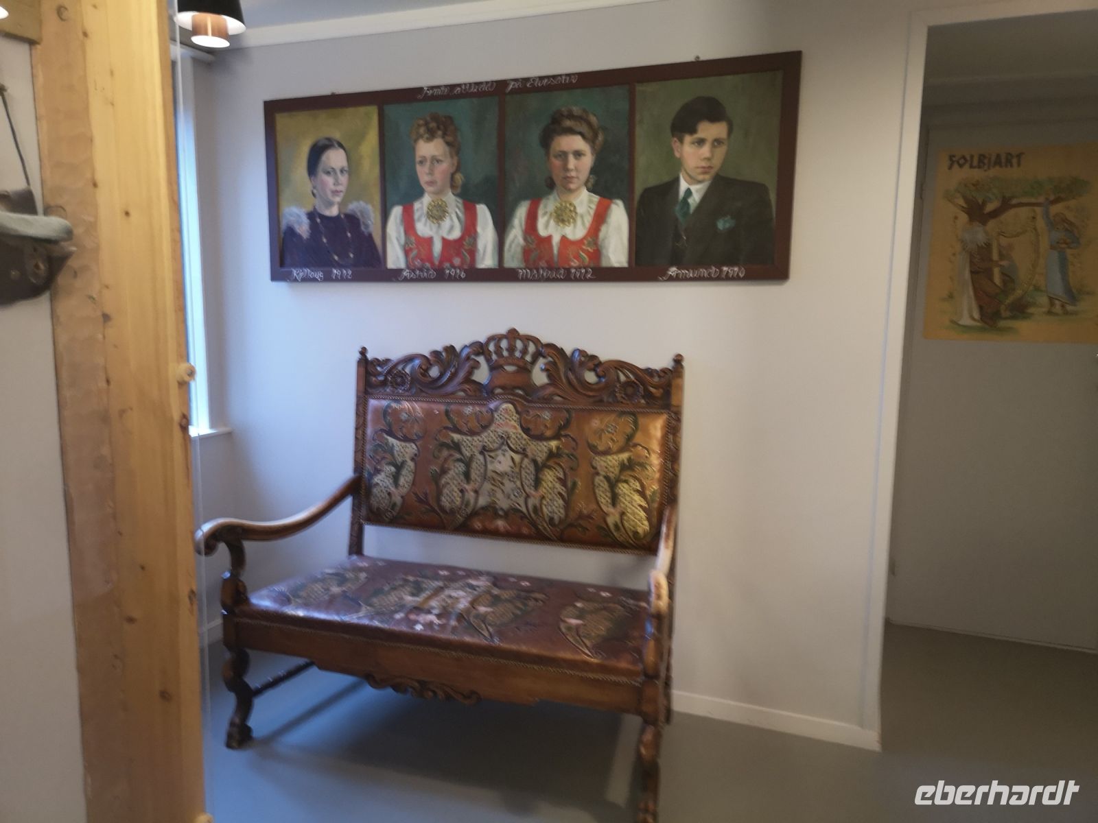 Unsere Bleibe an dem Tag war das Hotel Elvesaeter – ein Anwesen, ein Hof, seit vielen Generationen in Familienbesitz. Über die Jahrhunderte hindurch häuften sich in dem Hause viele Kunstschätze an. Im Grunde ist das ganze Anwesen selbst ein Kunstschatz. Nicht hier zu übernachten und das gute gutbürgerliche Essen zu kosten wäre wirklich schade gewesen.