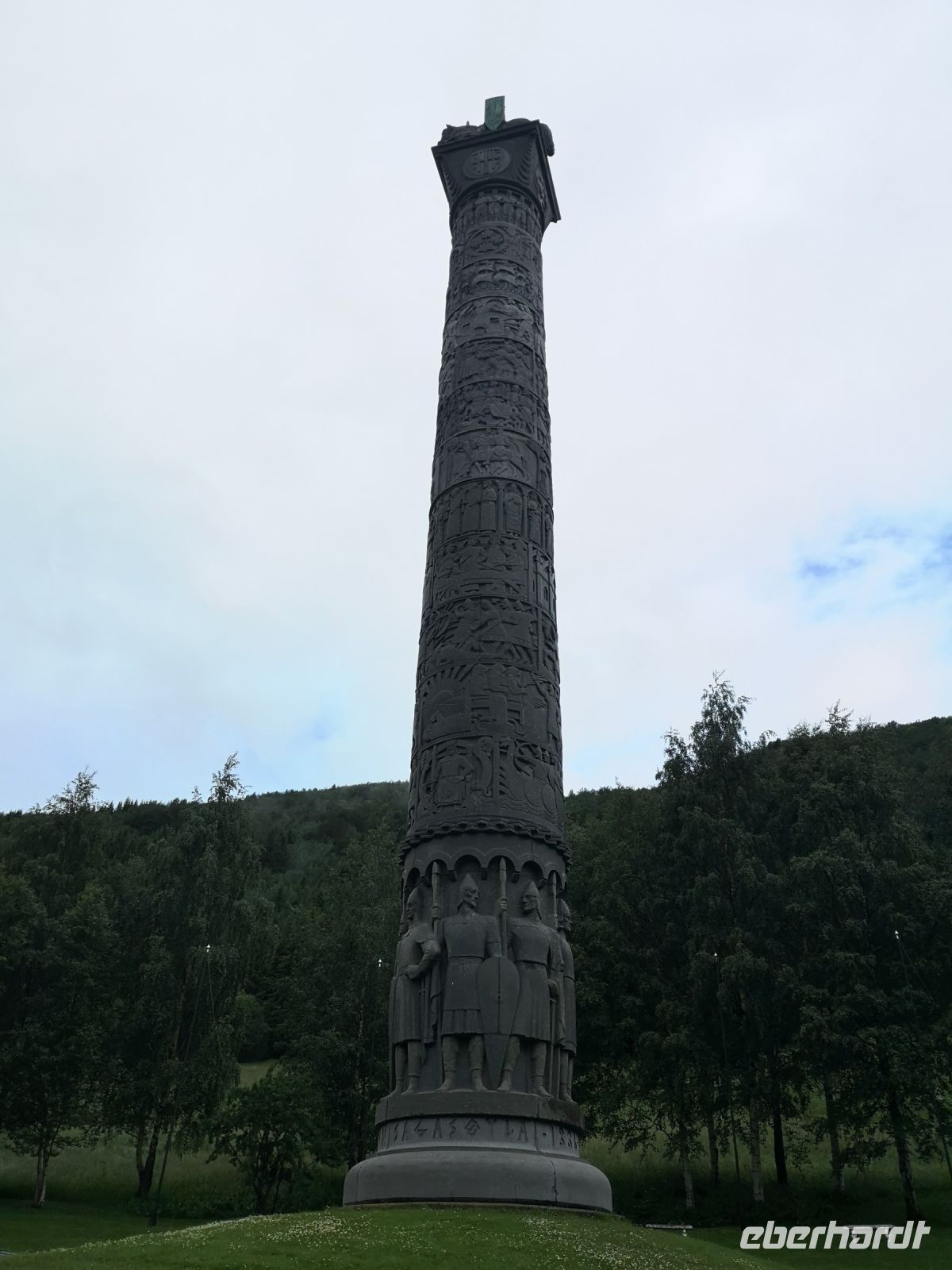 Neben dem Elvesaeter steht die Sagasäule. Auf 40m Höhe ist im wahrsten Sinne des Wortes Norwegens Werdegang in Stein gemeißelt: von 872, als Harald Schönhaar die Schlacht bei Stavanger gewonnen hatte, bis hin zur Reichversammlung um 1814. Allerdings wäre die Säule nicht da, wenn Amund Elvesaeter nicht das mehr als einhundertjährige Tauziehen um die Säule beendete und sie in eigener Regie vollendet und aufgestellt hätte.