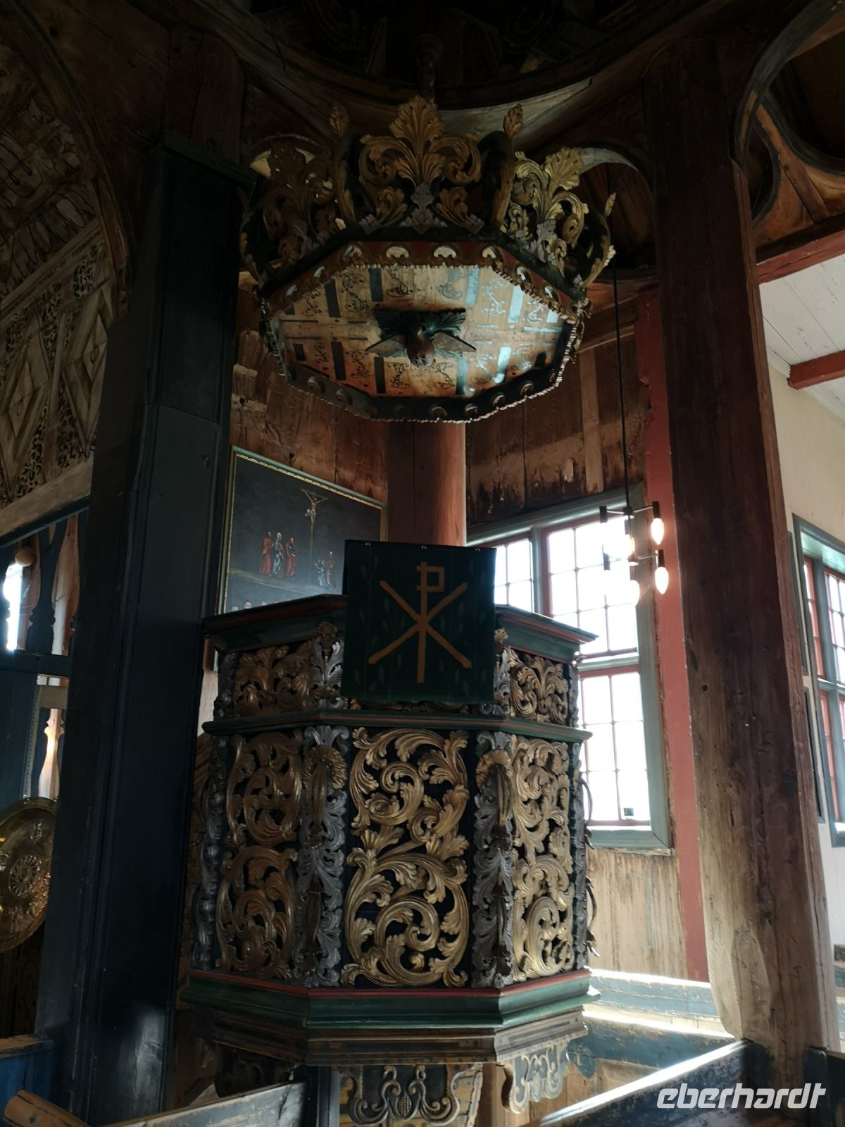 Unsere Führung durch die Geschichte der Stabkirchen allgemein und besonders der Lomer Stabkirche war ein schönes Erlebnis. Die Kirche selbst ist eine Augenweide und unser Erzähler führte uns durch die Zeit mit einer großen Portion Wissen, Enthusiasmus und mit einem Touch norwegischen Humors. Eine Stunde war wie im Nu vorbei – im Gegenzug zu den Predigten in Mittelalter ??