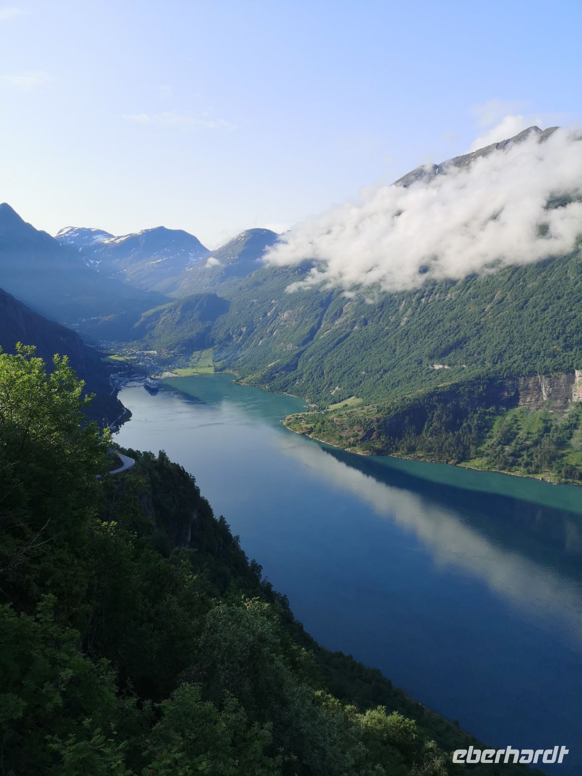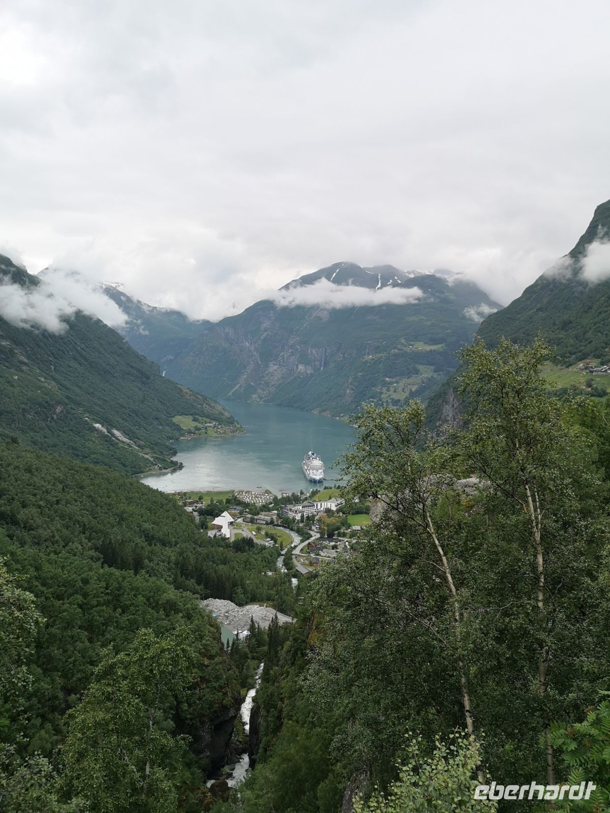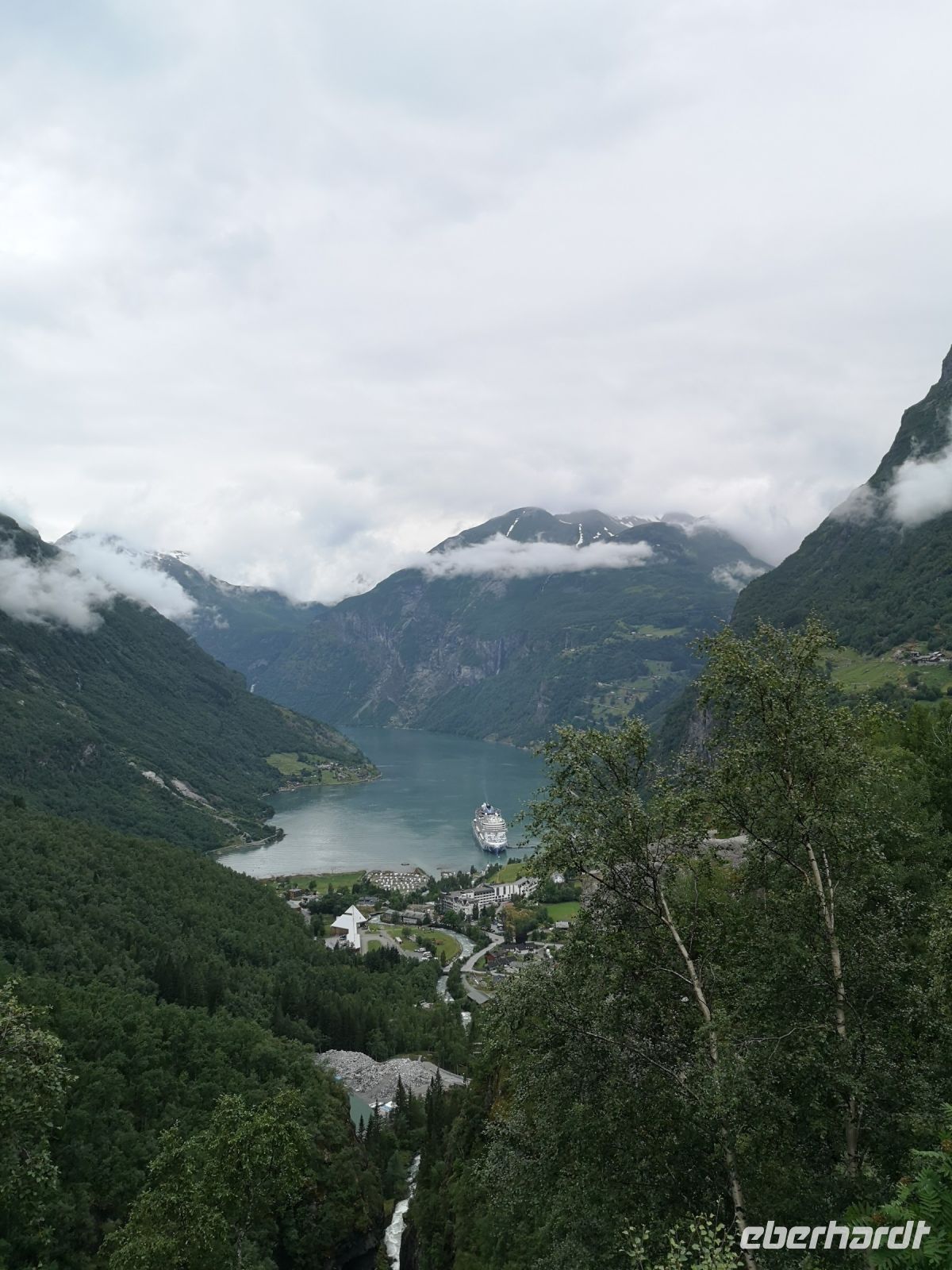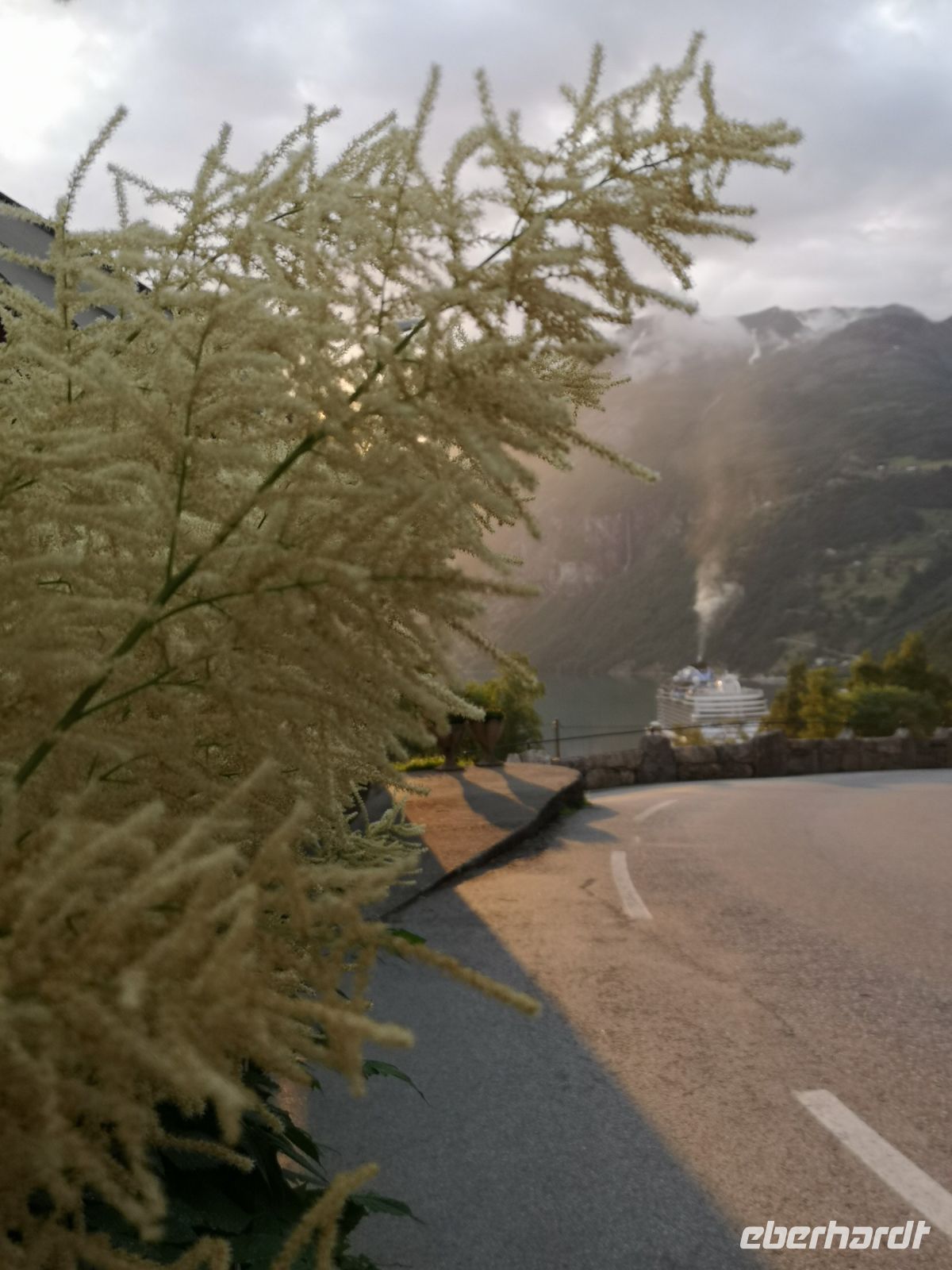 Über Grotli, einst ein Knotenpunkt und dem Berggasthof wo auch Björnstjerne Björnson übernachtet hatte, und mit einer weiteren kleinen Pause bei Donfoss, erreichten wir nach vielen Kurven den Ort Geiranger bzw. den Geirangerfjord. Es ist schon komisch, wenn so ein kleiner Ort mit kaum 300 „Seelen“, von unzähligen Touristen überflutet wird, die in der Saison jede kleine Fläche besetzen. Trotzdem ist das ein Ort „to be“, einmal Geiranger erleben!