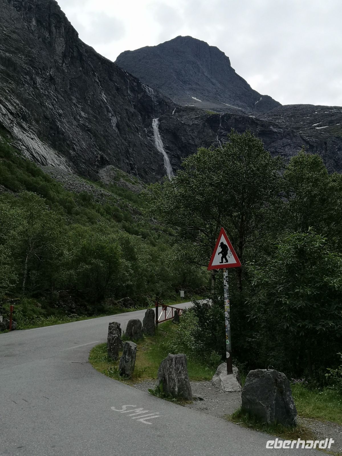 Romsdalen – die Wiege der norwegischen Bergkletterei – da ist ein Blick auf Trollveggen (Trollwand) ein Muss und lässt das Herz jedes Bergsteigers höher schlagen. Und ein Fotoshooting mit Trollen bei Gästegard dürfte auch nicht fehlen.
