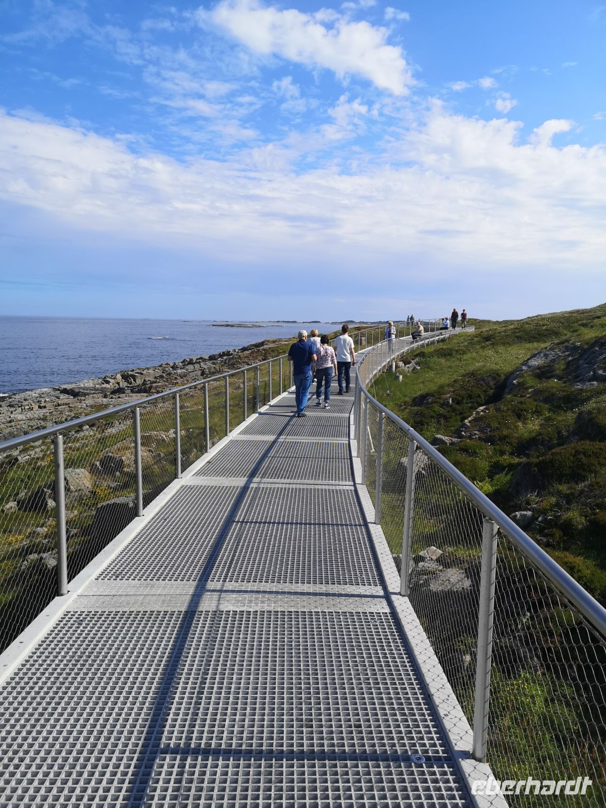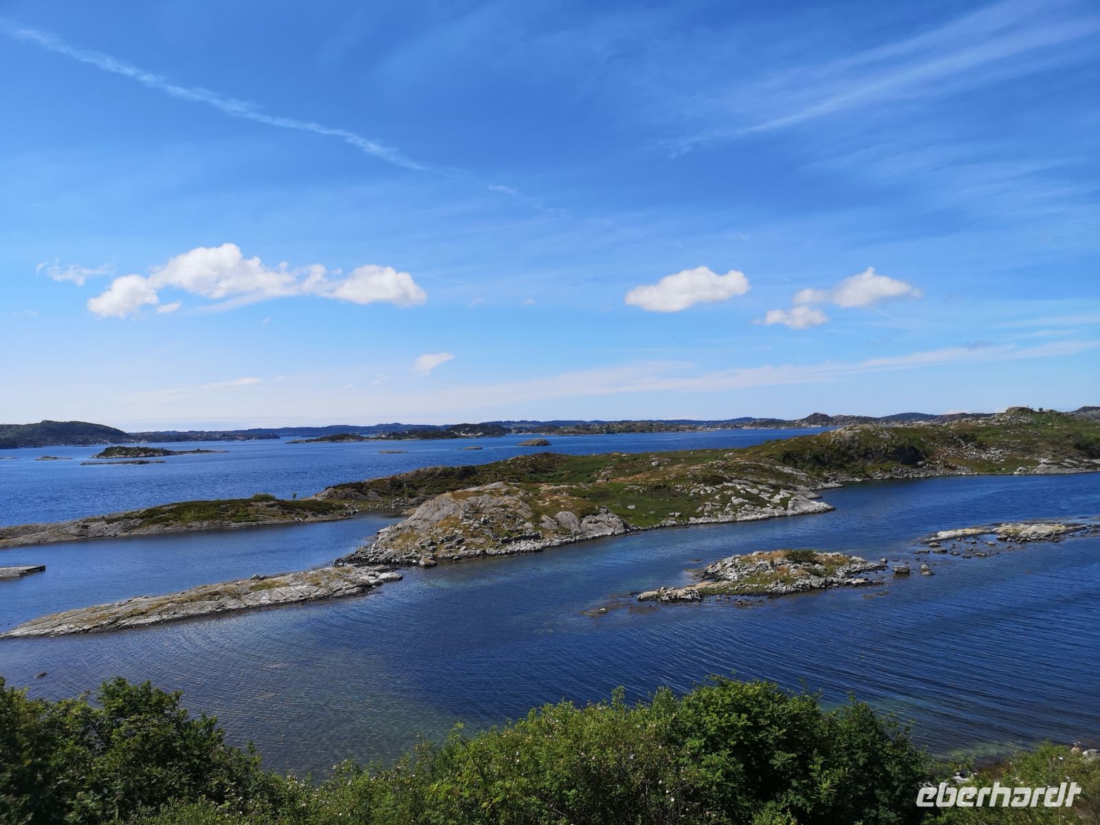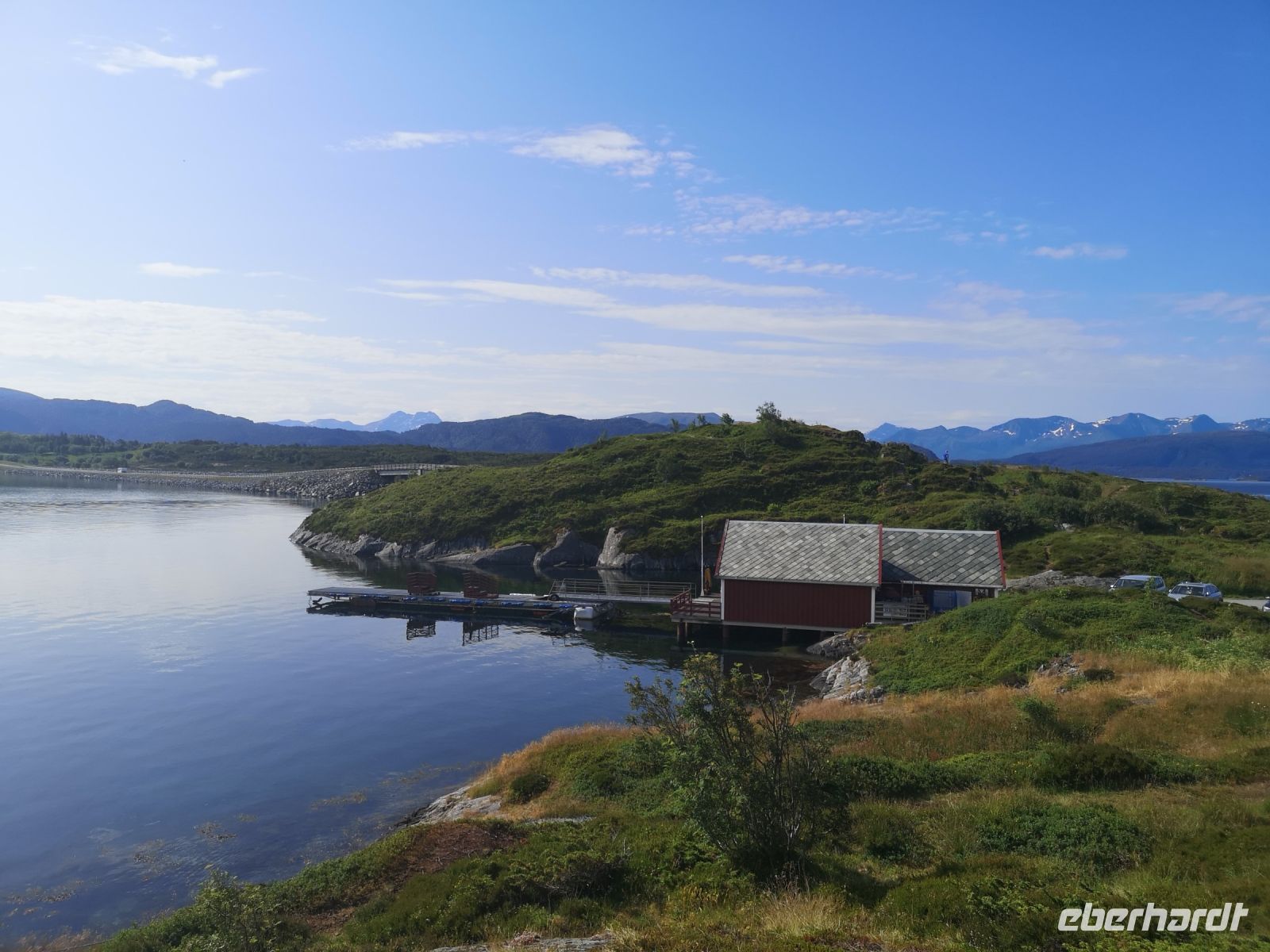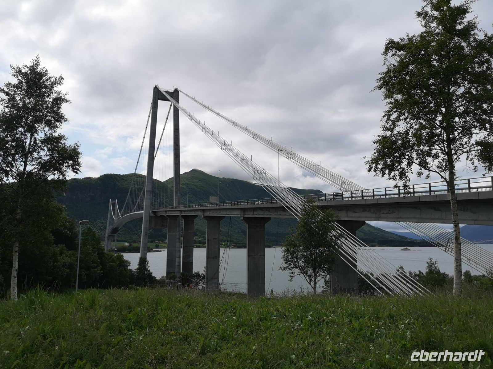 Atlantikstrasse: einst gebaut, um die Wirtschaft der Insel Averoya anzukurbeln, aber letztendlich von den Touristen zur Touristenattraktion gekürt. An dem Tag schlängelte sie sich in Sonne gebadet und bei ruhigem Wasser durch die Schären, hüpft bei Storseisund-Brücke auf 23 m Höhe hinauf und endete nach guten 8 km Fahrt. Man musste einfach paar Fotostopps mehr machen als geplant.