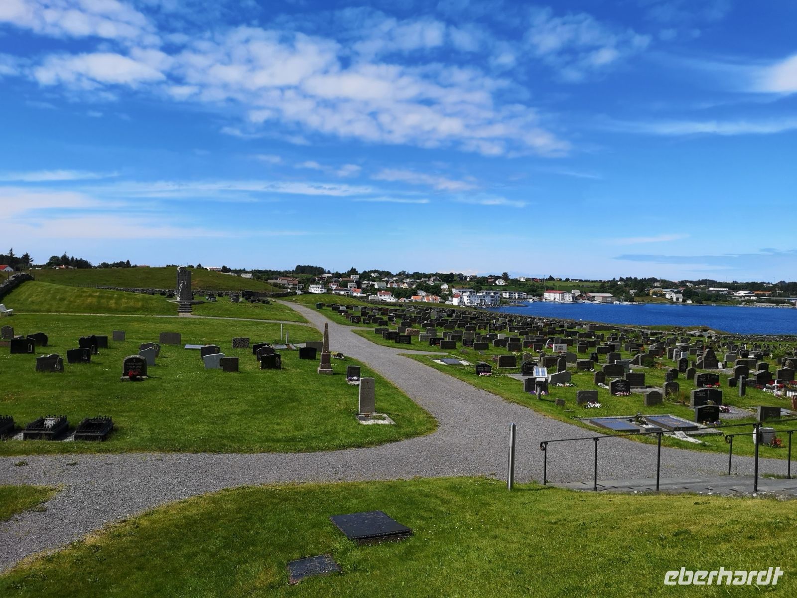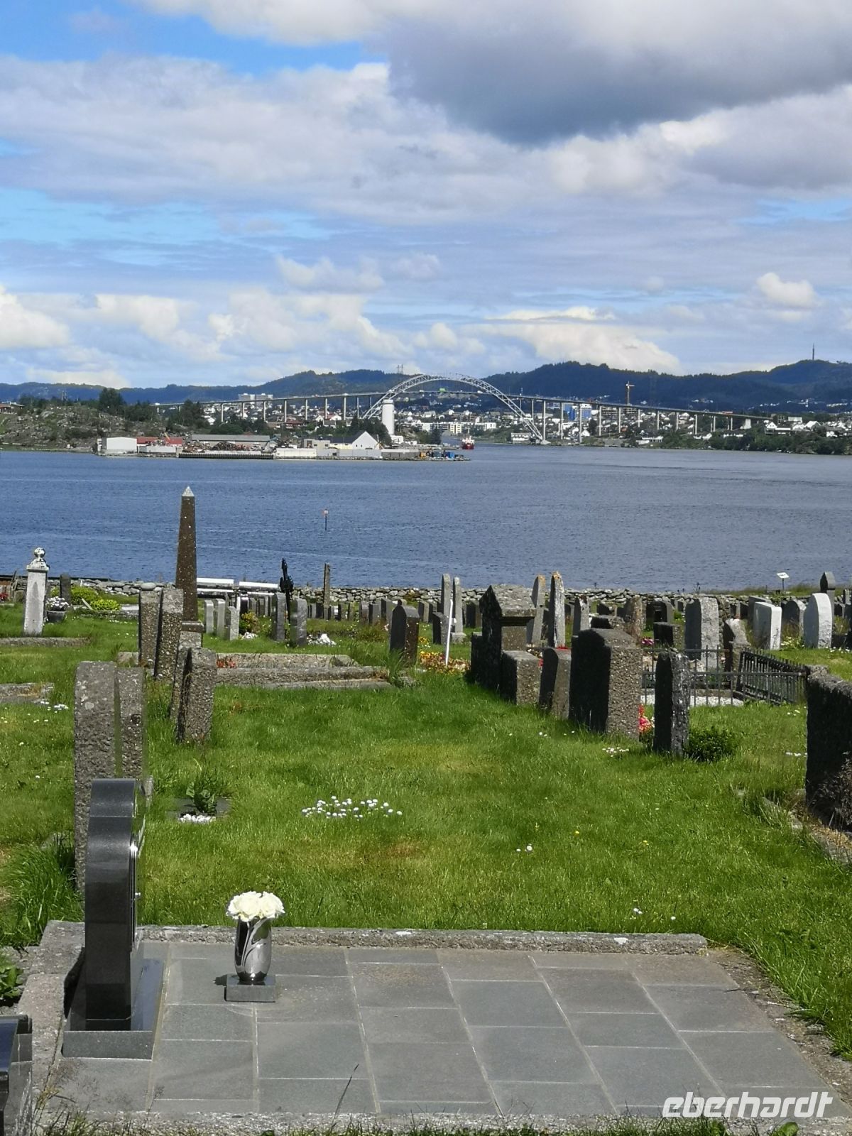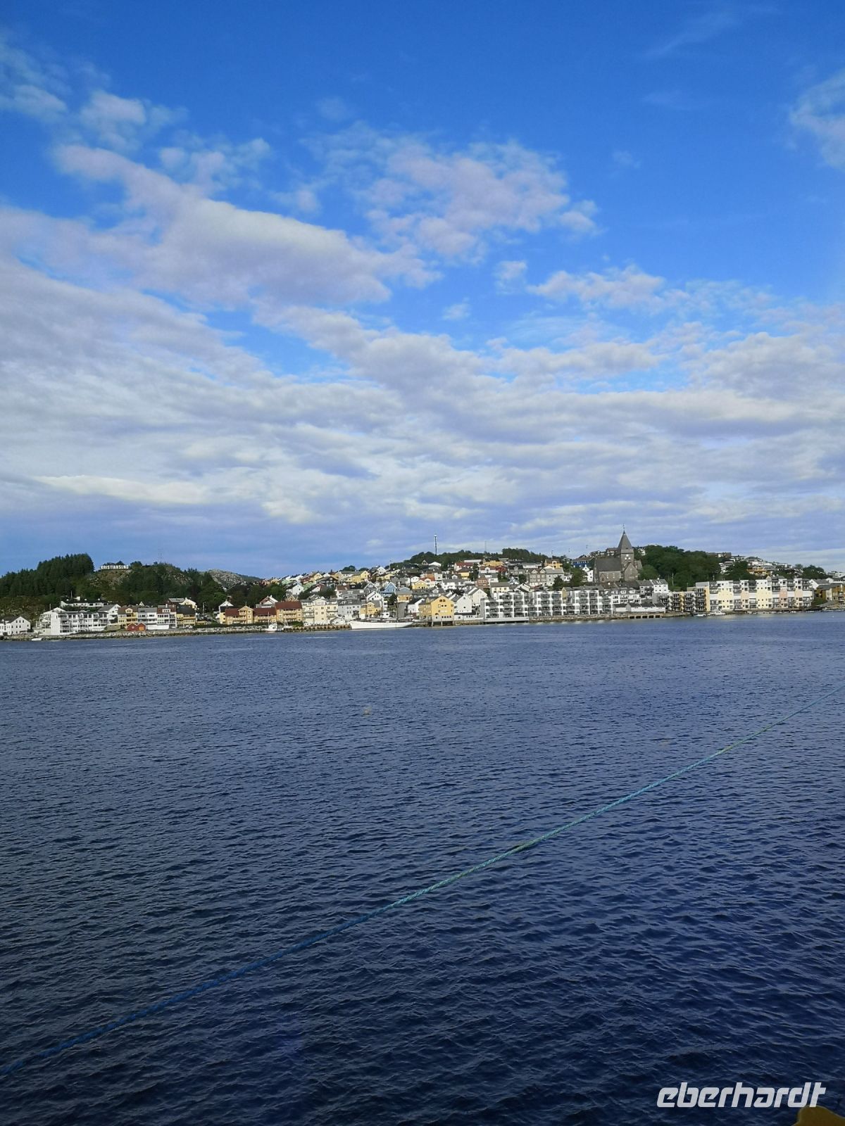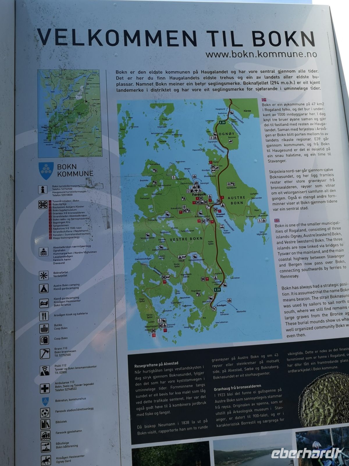 Der Gedanke, dass wir heute den norwegischen Boden verlassen werden, hatte ich nicht so wahrnehmen können. Was mir aber klar war, dass wir rechtzeitig in Stavanger zu unserer Fähre kommen mussten und wir mit dem Rest der verfügbaren Zeit rational umgehen sollten. Deswegen entschied ich mich für einen Abstecher zu Insel Karmoy. Unser Ziel war das Örtchen Avaldsnes, der älteste Ort auf der Insel. Aber auch ein ganz besonderer: das war der erste Königssitz Norwegens, ausgesucht und aufgebaut durch Harald Schönhaar nach seiner berühmten Schlacht und Sieg in Hafrsfjord bei Stavanger.
