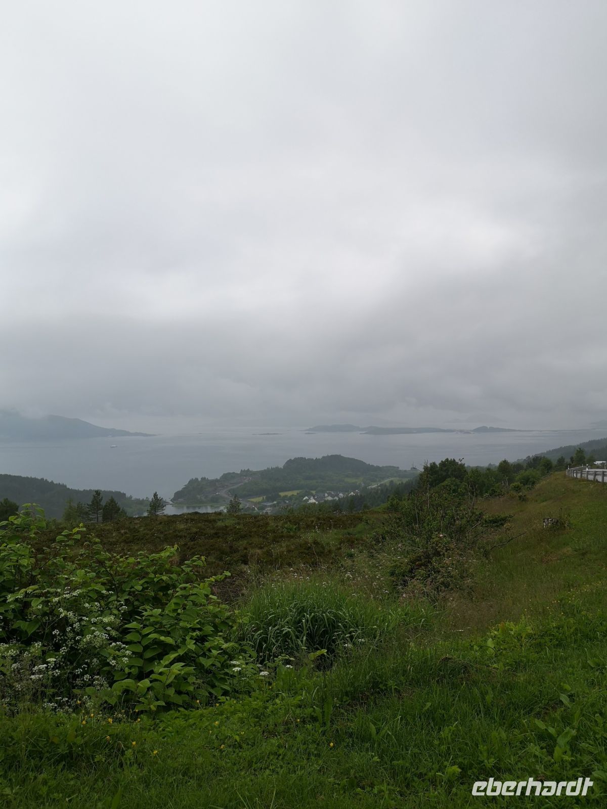 Als wir Alesund verlassen hatten war uns noch nicht so bewusst, dass wir an dem Tag über 400 km mit dem Bus hinter uns lassen werden. Die 3 Überfahrten mit der Fähre nicht inbegriffen. Und zwar meistens im Regen. Näher wir unserem Tagesziel kamen, stärker regnete es. Schon in Selje konnte man nicht mehr trockenes Fußes durch die Ortschaft laufen. Wenn wir uns dem Westkap näherten, hat sich zum Regen noch hartnäckiger Nebel gesellt und letztendlich mussten auch die Hartgesottensten unter uns den Gedanken auf ein atemberaubendes Westkap aufgeben. Ein Blick in die Hütte und schon waren wir weg – wieder in der Obhut unseres Buses, wo es schön warm und trocken war. Draußen war es nämlich ganz das Gegenteil: nass und windig. Na ja, man hätte zumindest ein Ziel und einen Grund wieder nach Norwegen zu kommen.