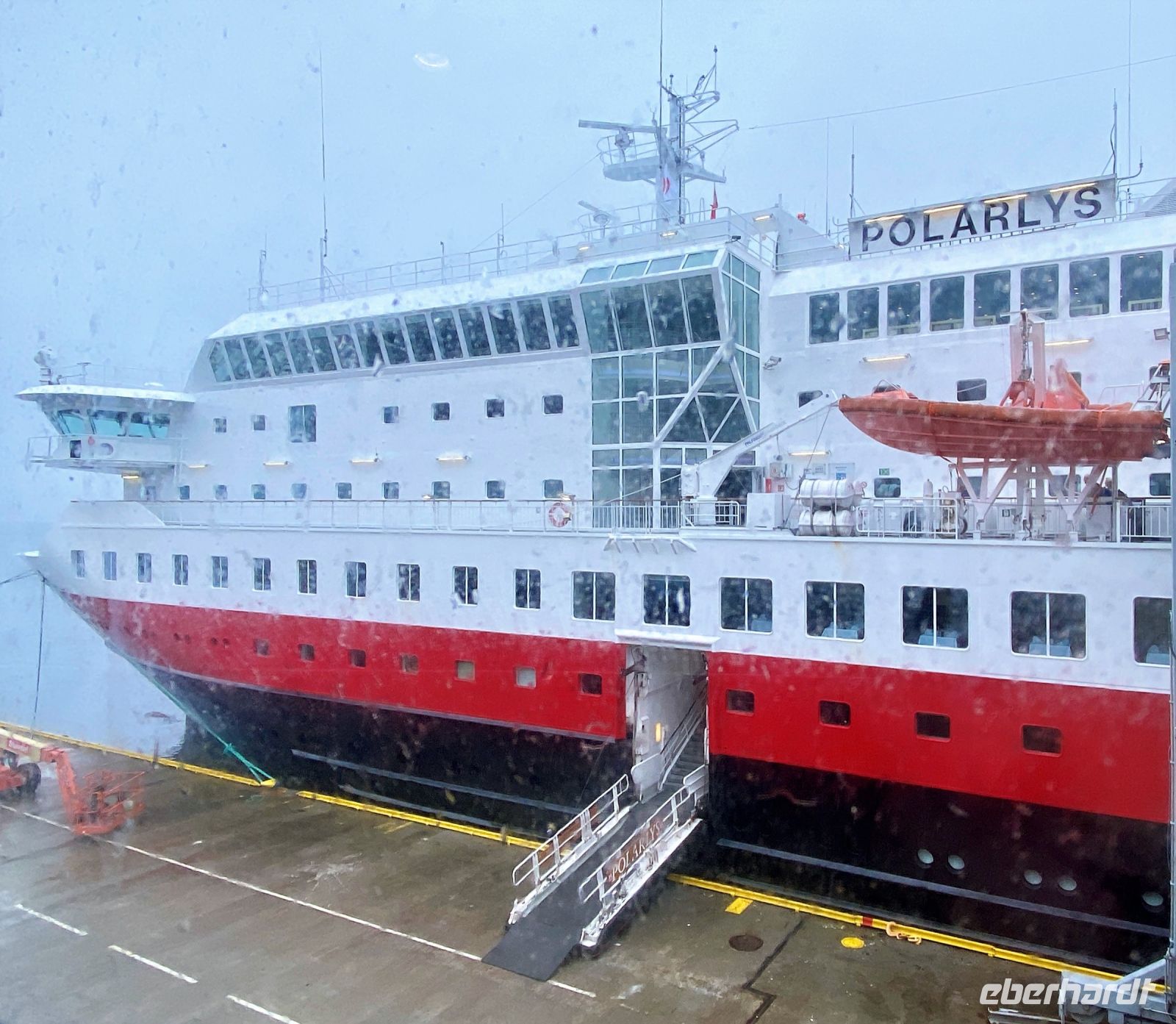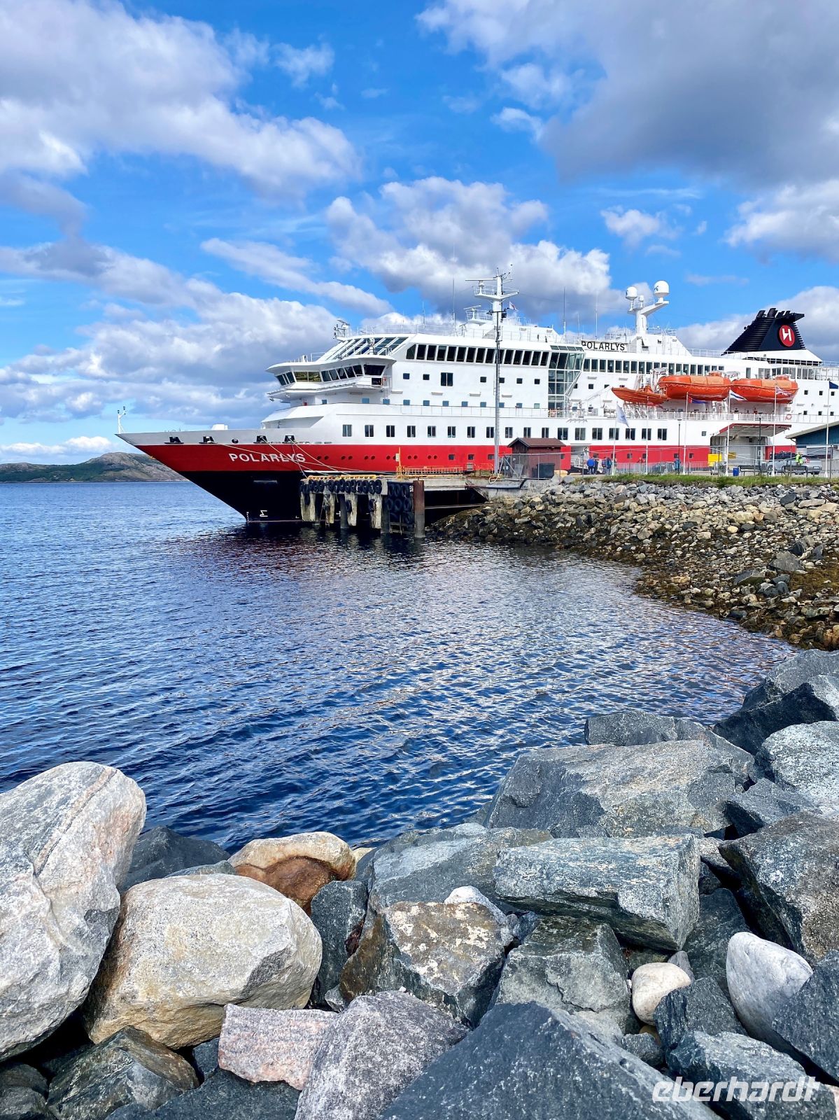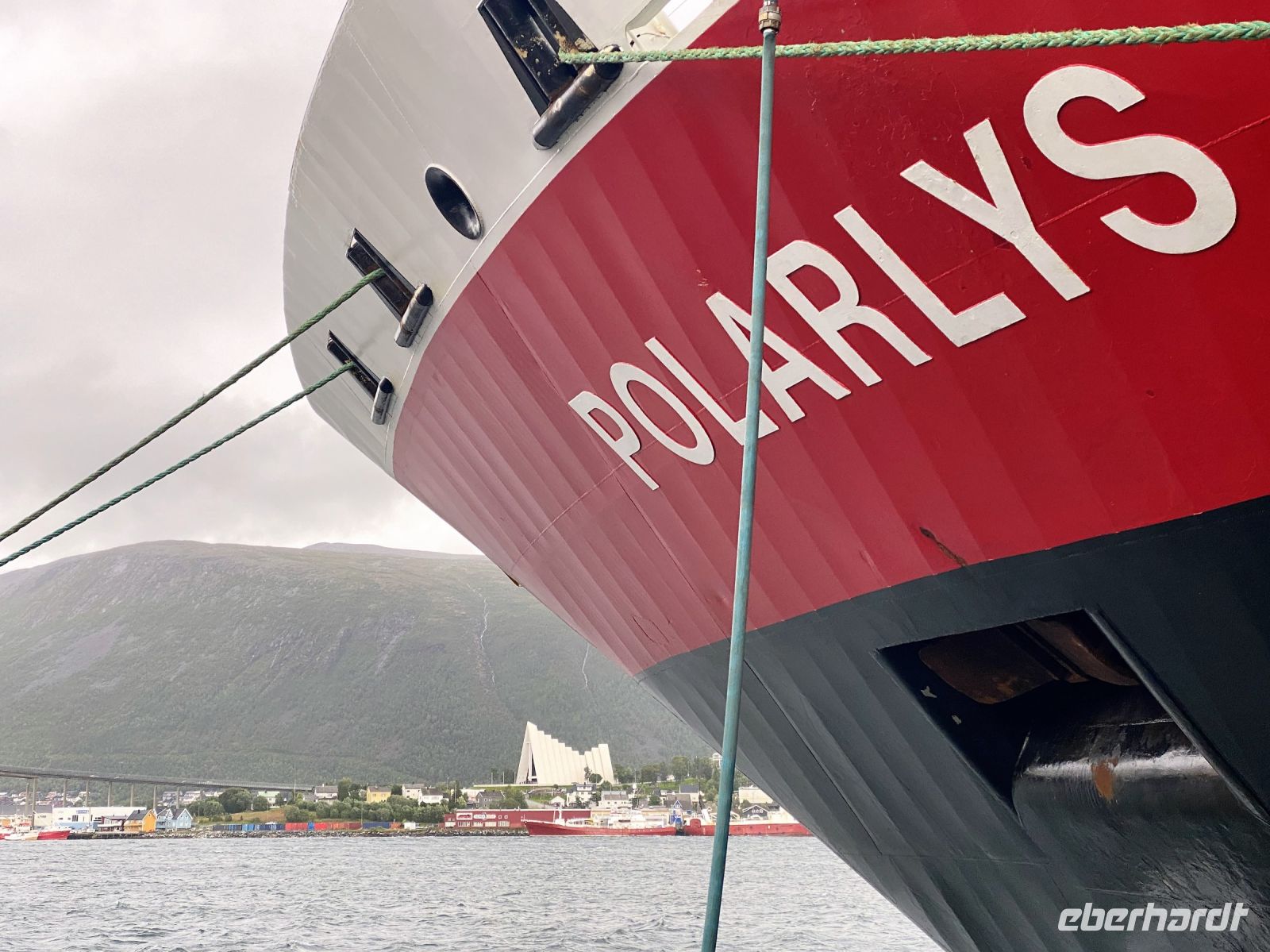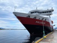 Die Zeit vergeht wie im Flug – nun sind wir schon den 5 Tag auf dem Schiff. In 2 Tagen erreichen wir bereits den Wendepunkt unserer Reise und bei diesem Gedanken wird man bereits heute schon etwas wehmütig. Da wir am gestrigen Tag den Polarkreis überquert haben, erwartet uns heute am Vormittag die typische Polarkreistaufe – hierbei wird mit einer großen Kelle tonnenweise Eis in deinen Nacken gekippt. Klingt kalt, ist es auch, aber den Spaß wirklich wert. Und als Entschädigung gibt es ja auch einen typisch norwegischen Moltebeeren-Likör. Mhh lecker. Die Besatzung amüsiert sich bei diesem Ritual jedenfalls köstlich. Unser Ziel am Nachmittag ist Tromsø, das Tor zum Eismeer und eine Stadt, die für ihr reichhaltiges Kulturangebot bekannt ist. Der Weg dorthin führt uns am Morgen über Harstad, Finnsnes und durch die Rystraumen-Enge. Hier liegt auch die 2,1 km lange und rund 900 Meter breite Insel Ryøy, die eine interessante Geschichte bereithält – wurde sie viele Jahre doch durch die Universität Tromsø genutzt, um Moschusochsen auf der Insel anzusiedeln und deren Verhalten zu erforschen. Pünktlich legt die MS Polarlys dann am Nachmittag in Tromsø an. Im Hafen wechseln wir vom Schiff auf den Bus, um uns unter Führung unseres Guides Kira die Stadt zeigen zu lassen. Natürlich durfte hierbei ein Besuch der berühmten Eismeerkathedrale und des Polar-Museums nicht fehlen. Gegen 18:15 Uhr setzt unser Schiff seine nordgehende Fahrt fort. Auch wenn das Wetter heute wieder nicht ganz so mitspielte, genossen wir auch den 5. Tag in vollen Zügen. Abgerundet wurde er dann noch mit einem wie immer sehr leckeren Abendessen und der Begegnung mit dem Schwesternschiff MS Nordlys am Abend.