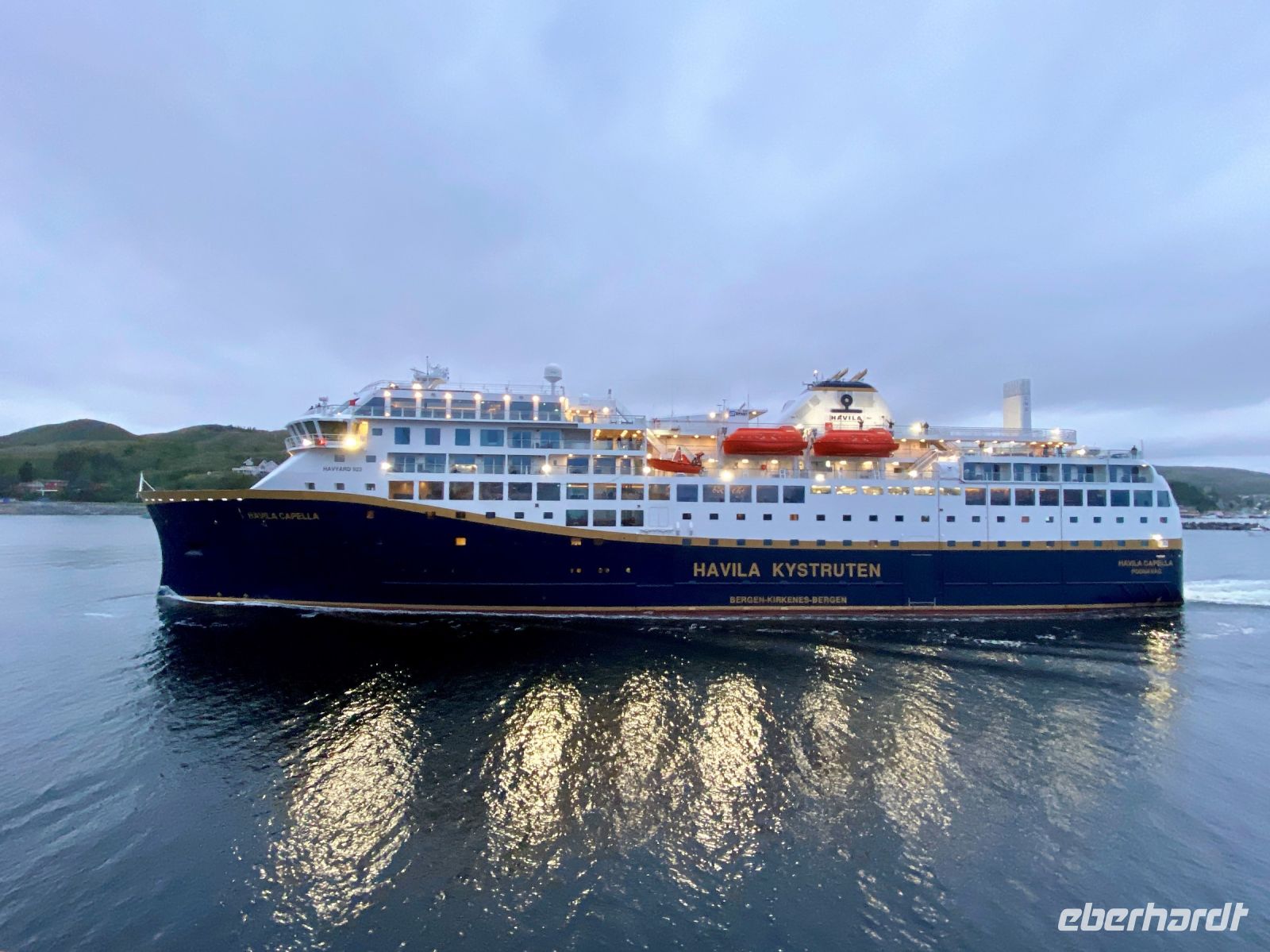 Nach einer ruhigen Nacht und einem ausgiebigen Frühstück erreichen wir am Morgen Trondheim, die über 1000 Jahre alte Stadt in der Mündung des Flusses Nid. Bei milden Temperaturen erwartet uns am Kai schon unser Stadtführer Vincent, mit dem wir die Stadt in den nächsten Stunden zu Fuß erkunden werden. Natürlich dürfen hier Sehenswürdigkeiten wie die Speicherstadt, die alte Stadtbrücke, die königliche Residenz und der Nidaros-Dom mit seiner beeindruckenden Fassade nicht fehlen. Nach einem ausgiebigen Stadtspaziergang kehren wir mit vielen Impressionen und Bildern zurück aufs Schiff und müssen uns erst einmal beim leckeren Mittagessen stärken. Unser Schiff verlässt den Hafen von Trondheim und passiert kurze Zeit später Munkholmen – die kleine Insel im Trondheimsfjord. Das Schiff lässt den Trondheimsfjord hinter sich und nimmt wieder Kurs auf. Unser nächster Stopp an diesem Tag wird erst gegen späten Abend in Rørvik sein und so entspannen wir am Nachmittag auf unserem Schiff und genießen die norwegische Küstenlandschaft. Dabei hält die Strecke am Nachmittag noch ein kleines Highlight für uns bereit. Kurz nach 15 Uhr passieren wir Kjeungskjær Fyr, einen 21 Meter hohen Leuchtturm der vor der norwegischen Küste auf einer Schäre liegt und aufgrund seiner achteckigen Form einzigartig in Norwegen ist. Am Abend erreichen wir den letzten Hafen an diesem Tag – Rørvik – in dem uns die MS Havila Capella begegnet. Und so neigt sich auch der 3 Tag mit vielen Highlights dem Ende zu.