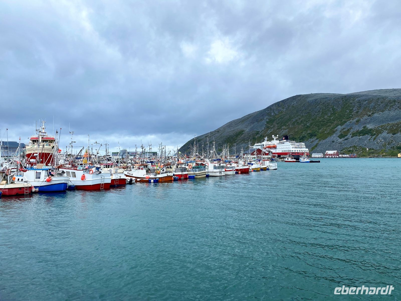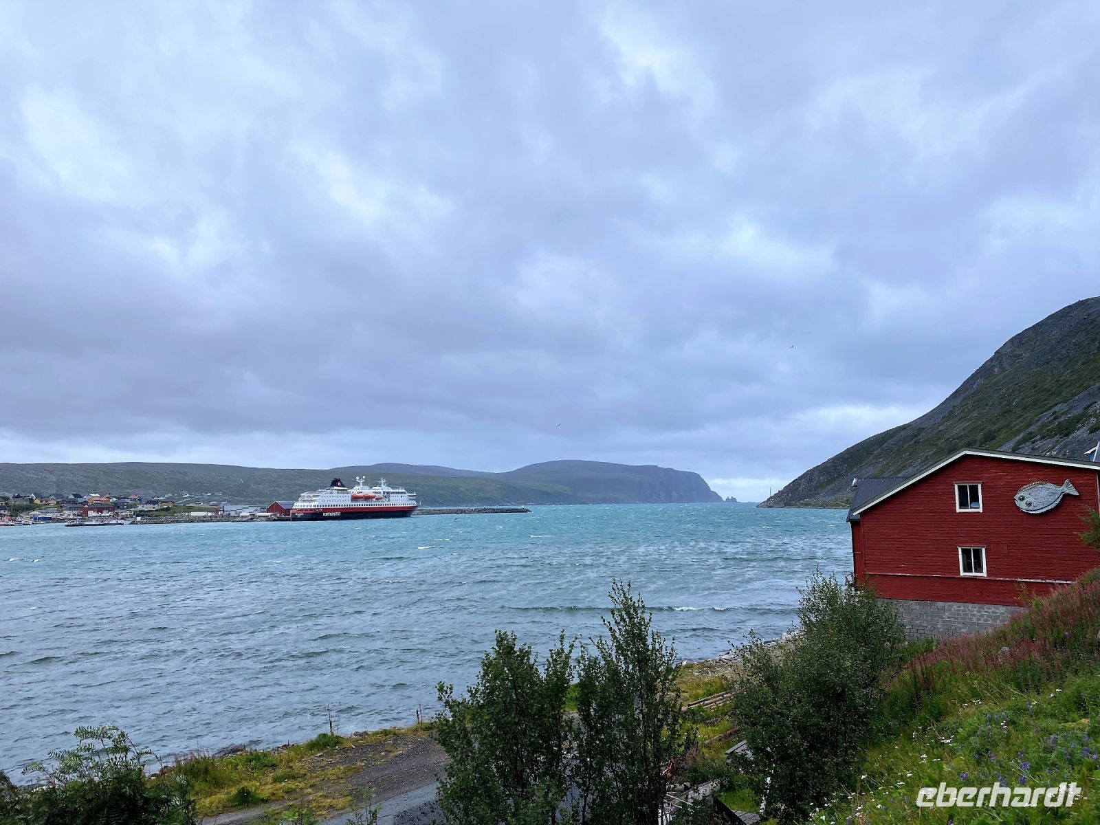 Der Tag läuft für uns alle ganz anders als geplant. Er beginnt mit Wellengang und einer Menge Wind und lässt uns leider schon am Morgen ahnen, dass unser Ausflug zum Nordkap nicht so schön werden wird wie wir alle gehofft haben. Dass es noch schlimmer werden kann konnten wir nicht ahnen. Für alle von uns war der Ausflug zum nördlichsten Punkt Europas das Highlight unserer Nordlandfahrt und für viele von uns ein langersehntes Sehnsuchtsziel. Der Weg dorthin, sollte uns durch die äußerst reizvolle karge Landschaft Norwegens bringen. Doch als wir den Hafen von Honningsvåg ansteuern bläst der Wind so stark, dass unser Kapitän aus Sicherheitsgründen entschließt den Vorgang abzubrechen und zum nächsten Hafen nach Kjøllefjord zu fahren. Das war es dann mit unserem Traum vom Nordkap – zumindest für heute. Einige von uns wollen es bei einem geplanten Ausflug vom Schiff am achten Tag noch einmal versuchen. Wir drücken die Daumen. Und so geht es für uns mit enttäuschten Gesichtern weiter. In Kjøllefjord angekommen haben wir ein bisschen Zeit dieses verschlafene Nest zu erkunden und uns ein wenig die Beine zu vertreten, bevor es am späten Nachmittag in Richtung offenes Meer weitergeht, was spätestens mit dem immer stärker werdenden Wellengang wahrzunehmen ist. Und so geht der Tag langsam zu Ende.