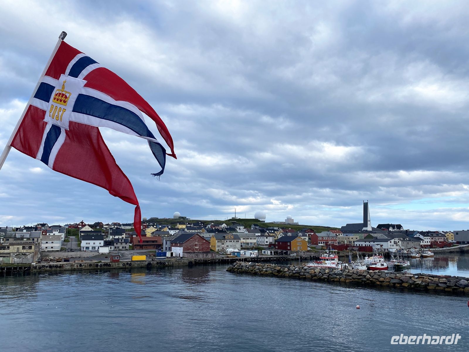 Ein Teil unserer Gruppe nutzt die frühen Morgenstunden und holt den ausgefallenen Ausflug zum Nordkap am heutigen Tag nach. Wir anderen bleiben auf dem Schiff und beginnen den Tag, nach einer wellenreichen Nacht, mit einem ausgiebigen Frühstück. Bereits am Vormittag legen wir in Hammerfest, der nördlichsten Stadt der Welt, an. Leider ist es aufgrund von Baumaßnahmen aktuell nicht möglich den Hafen im Zentrum direkt anzufahren, und so legt unser Schiff gut 2,5 km davon entfernt an. Unserer Stimmung tut das keinen Abbruch, haben wir von der anderen Seite einen guten Blick auf die sehr moderne Architektur der Stadt. Da heute auch noch Sonntag ist und die Stadt vermutlich leer, entscheiden wir uns in der Nähe unseres Schiffes zu bleiben und einen kleinen Spaziergang zum nahegelegenen Freilichtmuseum und zur Struve-Meridiansäule zu unternehmen. Von hier genießen wir einen tollen Blick auf die Küstenlinie bevor wir zurück zum Schiff gehen. Und auch der heutige Tag bringt uns typisch norwegisches Wetter – Regen, Wind und Kälte. Aber auch das müssen wir auf einer Reise mit dem Schiff um diese Jahreszeit in Norwegen wohl einmal miterleben, sonst würde zu Hause wohl niemand glauben, wo wir die letzten Tage waren. Und so verbringen wir den Rest des Tages bei gutem Essen und interessanten Gesprächen gemütlich auf dem Schiff, bevor wir am Abend kurz vor Mitternacht Tromsø erreichen.