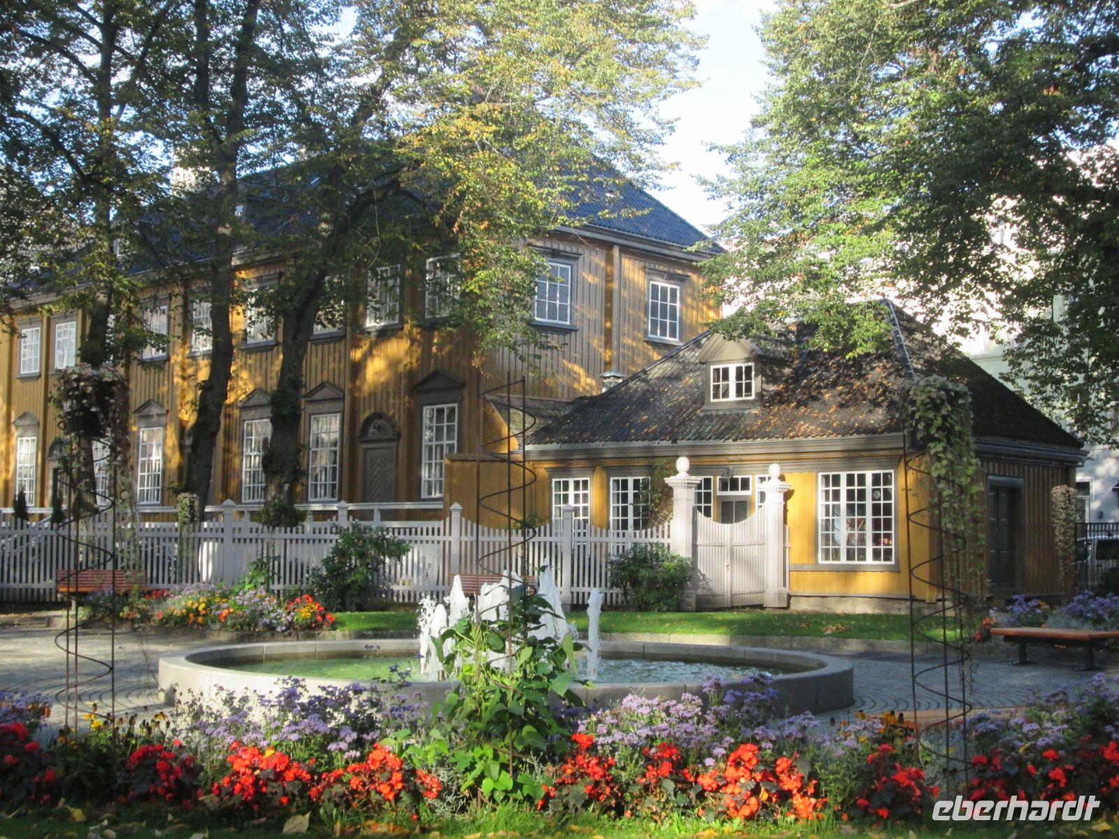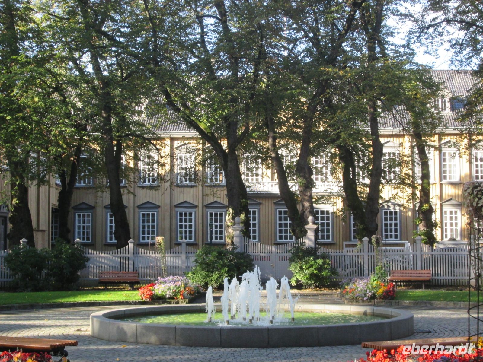 Mit Stiftsgåden bezeichnet man das ehemalige Wohnhaus der reichen Witwe Cecilie Christine Schøller. Heute ist es mit seinen 140 Zimmern das größte Palais aus Holz ganz Skandinaviens und Residenz der Königlichen Familie, vorbehaltlich ihres Daseins. Wir konnten einen Blick vom blumengeschmückten Palaisgarten über die ehemalige Orangerie auf den Palast genießen.