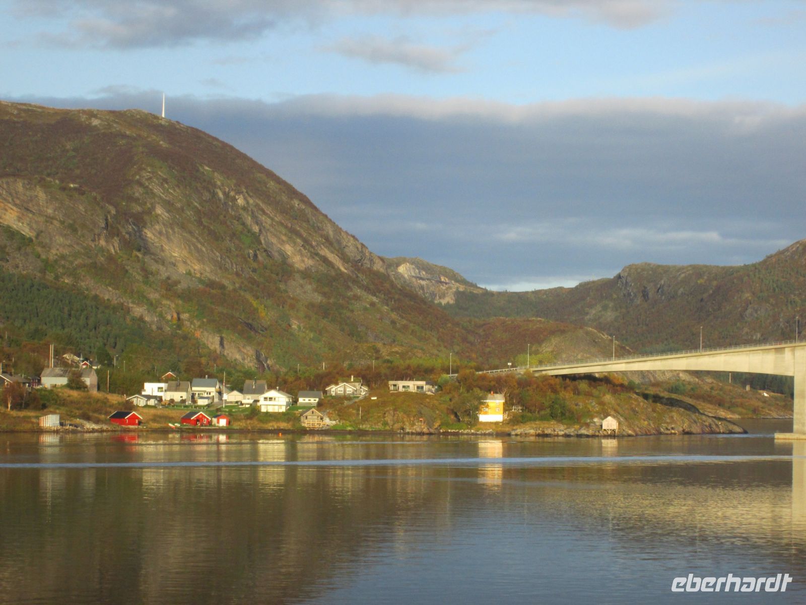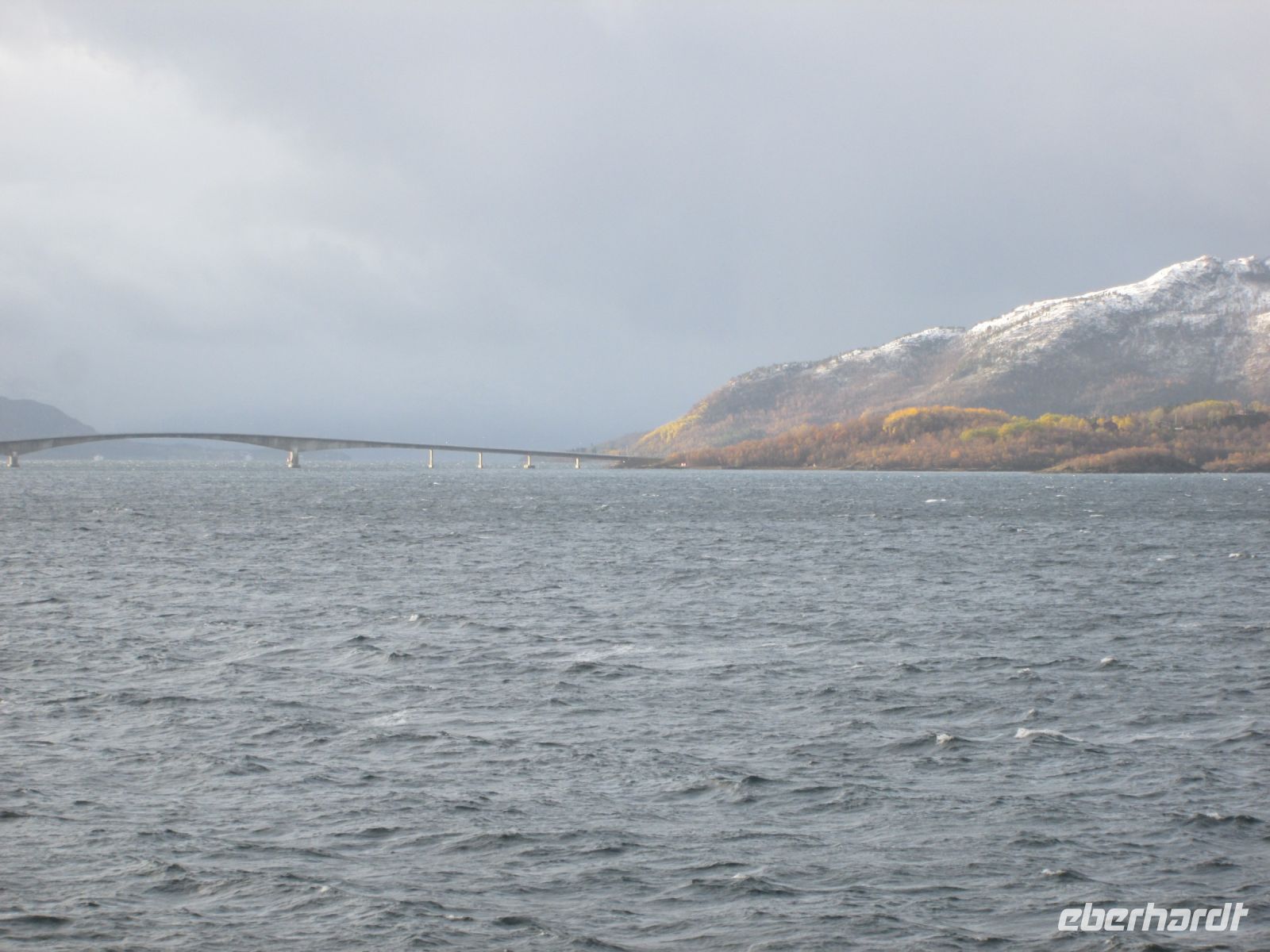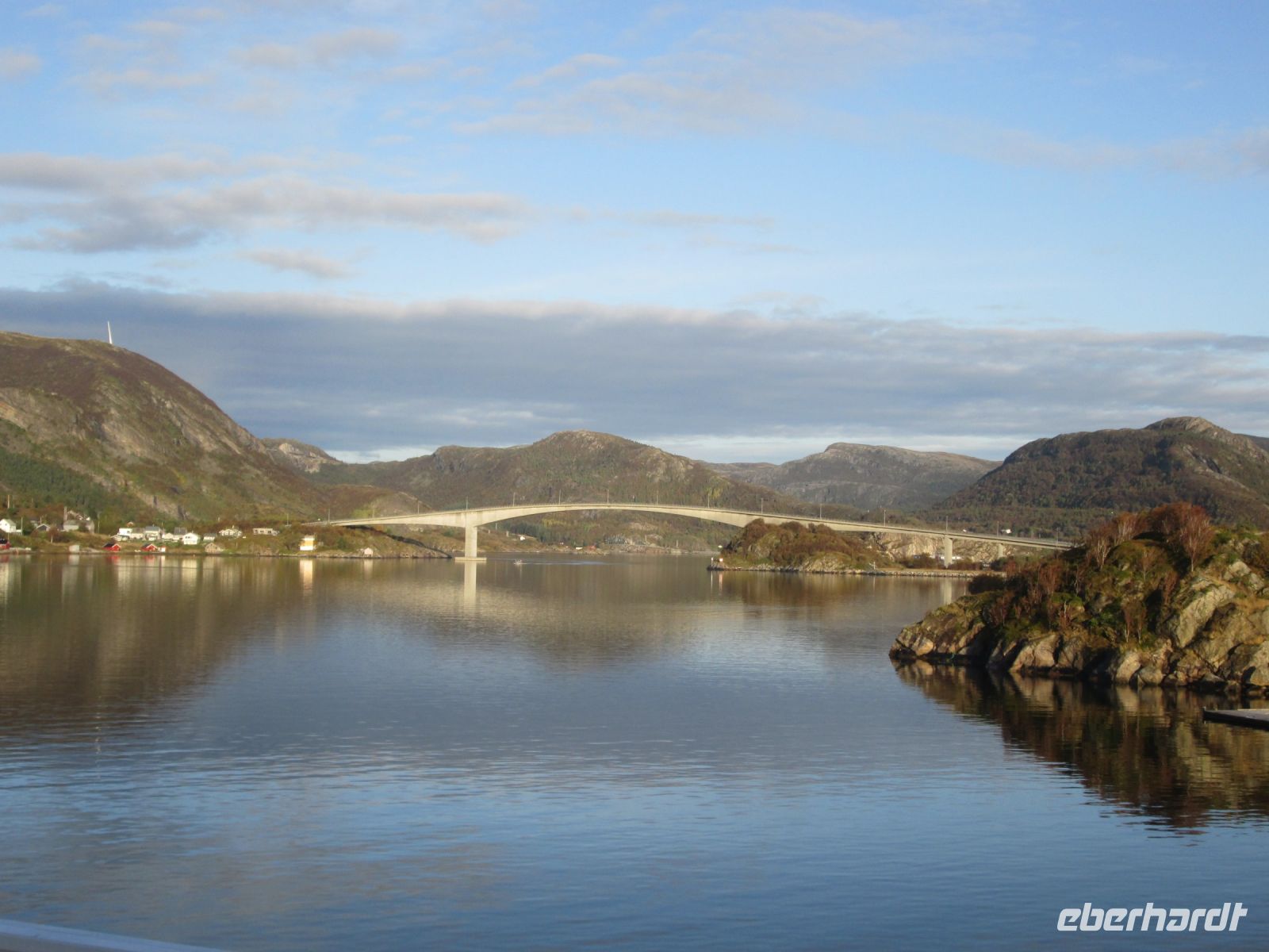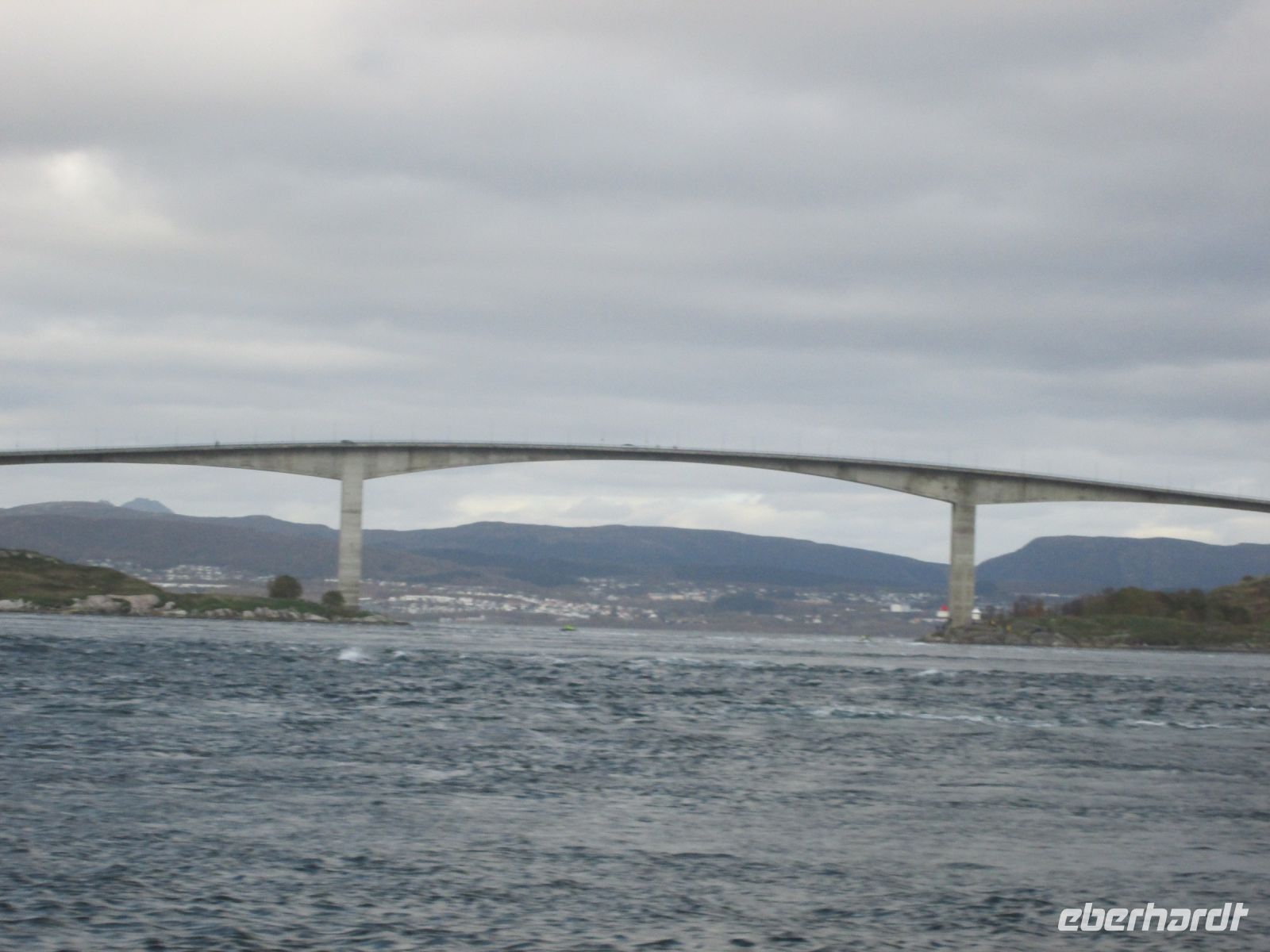 Am frühen Nachmittag war Sandnessjøen erreicht. Schon von weitem konnte man die Helgelandbrücke sehen, deren Mittelteil fast 400 m misst. Sie führt über den Leirfjord, der in den Vefsnfjord übergeht und ca. 70 km von Mosjøen im Landesinneren entfernt ist.