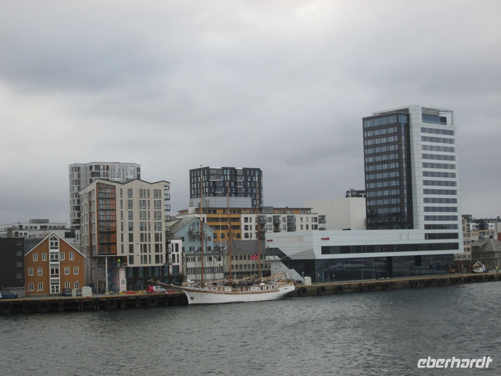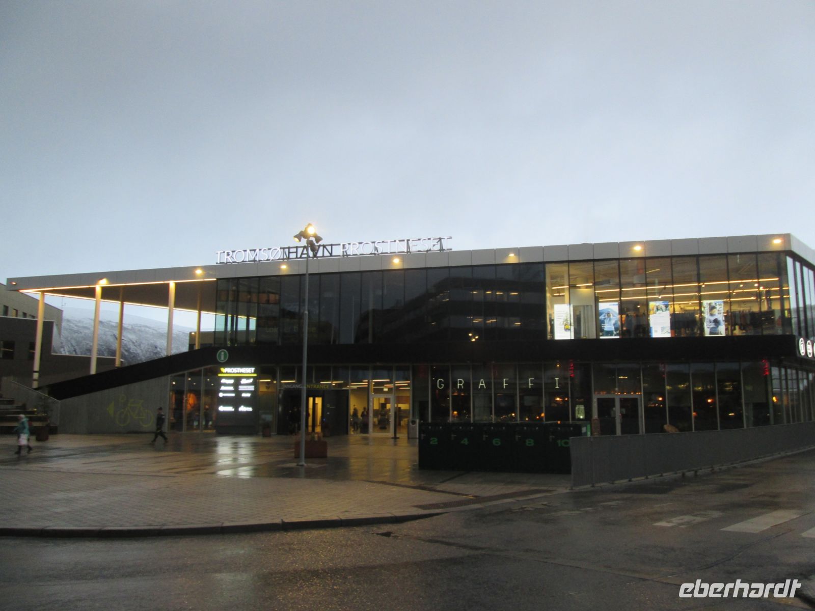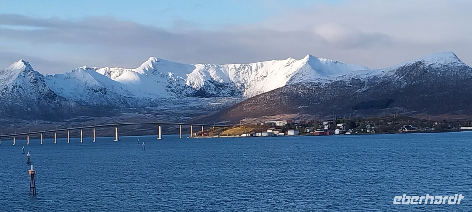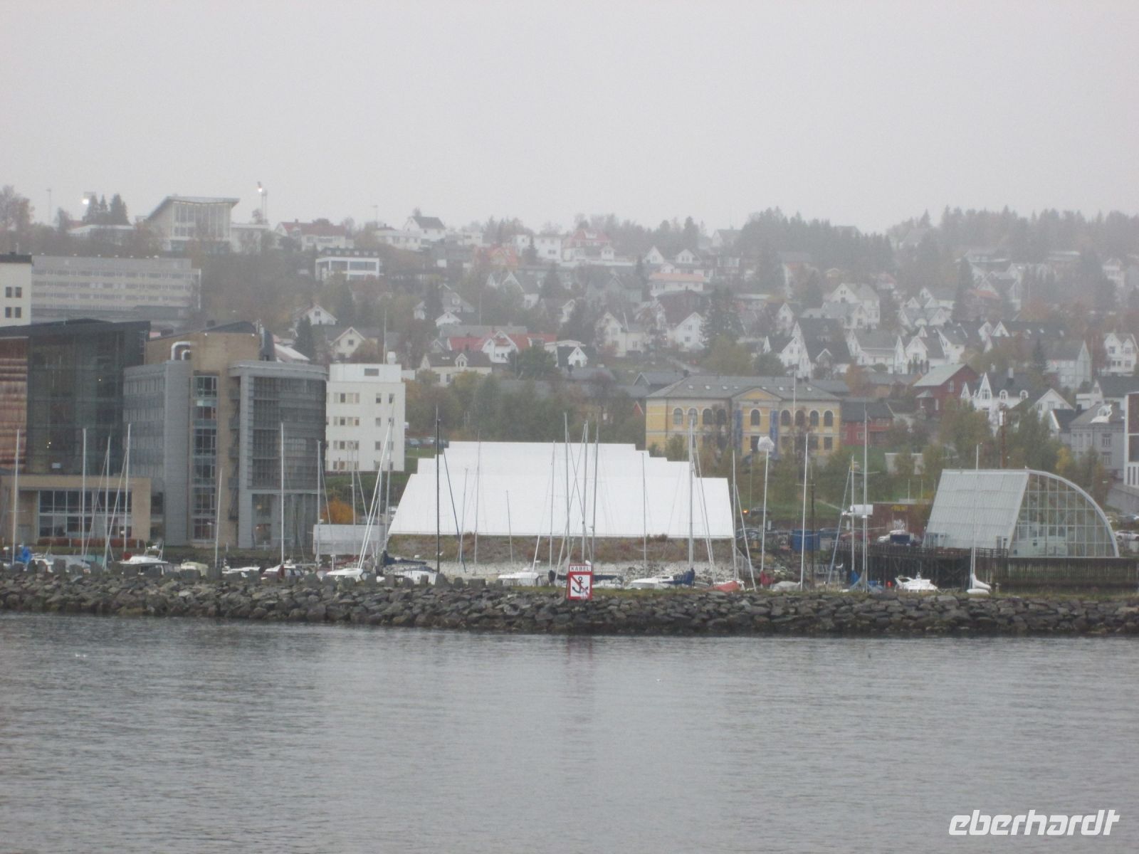 Pünktlich 14.15 Uhr wurde Tromsø erreicht. Das "Tor zur Arktis" machte ihrer Bezeichnung alle Ehren, es schneite etwas. Am Anleger begrüßte uns Fabian, mit ihm und der Chaufferin des Reisebusses Maja, konnten wir im Eberhardt-Sonderausflug die Sehenswürdigkeiten der Stadt kennenlernen.