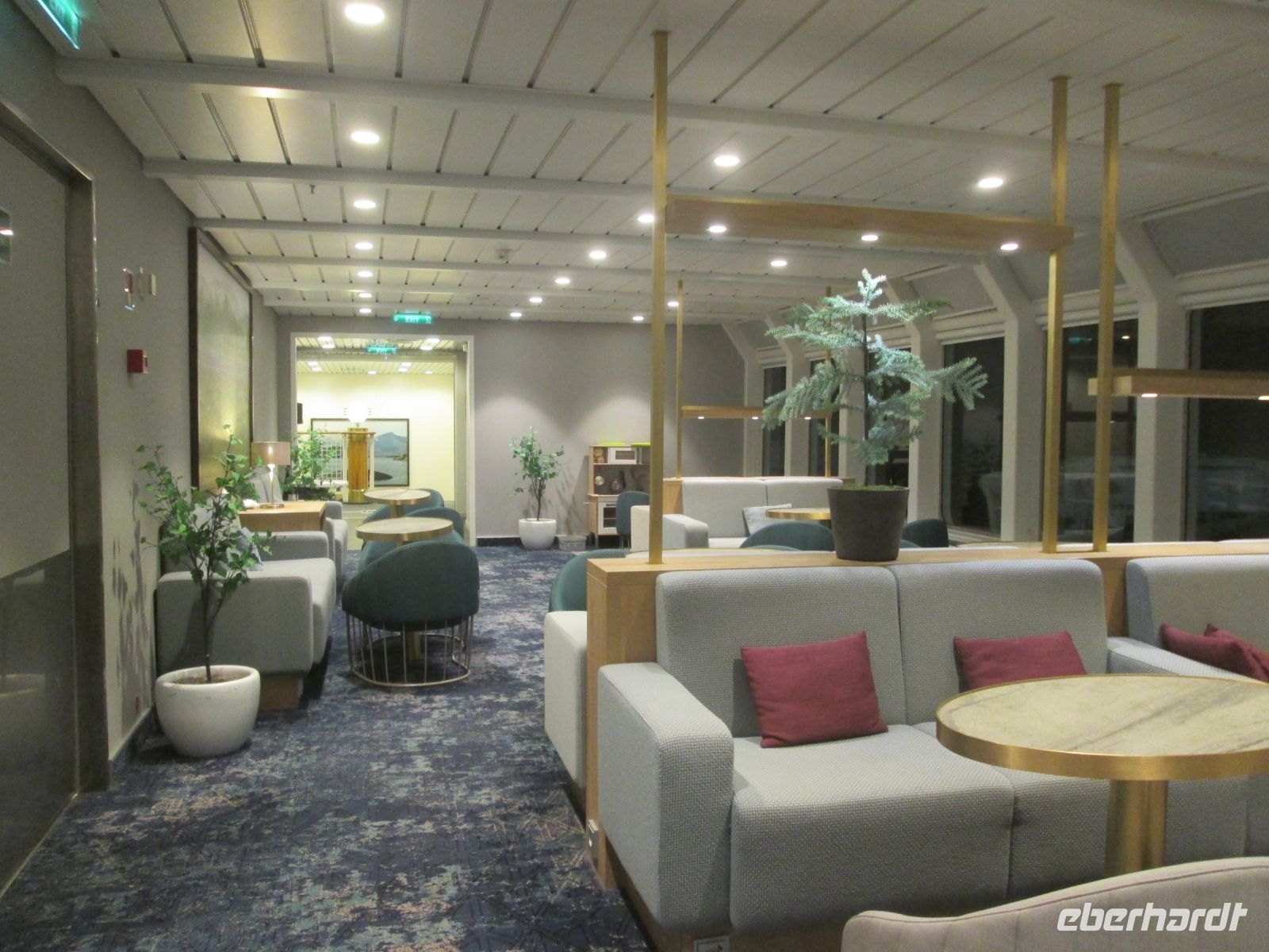 Die "kulinarische Verwöhnung" durch Lufthansa auf dem 2stündigen Flug bestand aus einer kleinen Flasche Mineralwasser, so dass das tolle Angebot von Hurtigruten am Terminal in Bergen dankbar angenommen wurde. Man verwöhnte uns mit Bergener Fischsuppe und vielen süßen Köstlichkeiten, wobei die typische Zimtschnecke natürlich nicht fehlen durfte. Auch an Getränken aller Art konnte man sich bedienen.