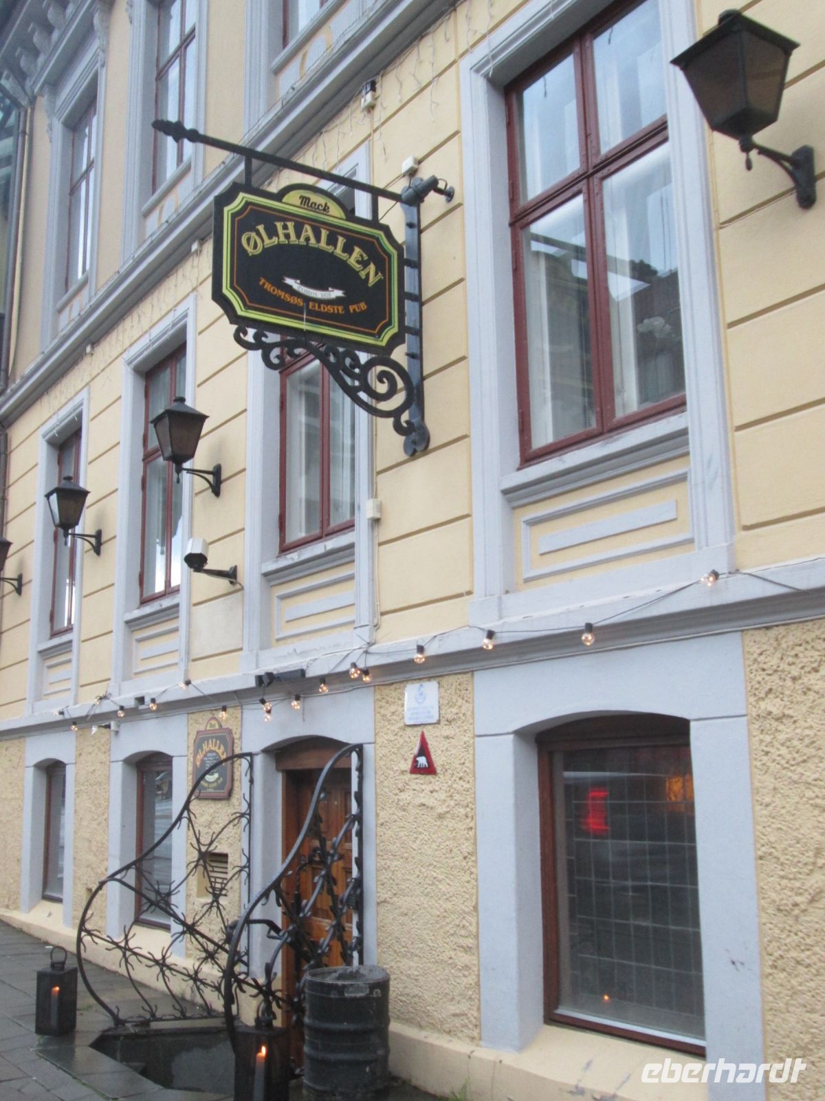 Den zweiten Besichtigungspunkt widmeten wir dem Polarmuseum. Eröffnet 1978, vermittelt es einen äußerst interessanten Überblick über die Expeditionen um Roald Amundsen und Fridtjof Nansen. Auch bilden in diesem Museum Rentier-, Robben-, Walross- und Eisbärjagd und -fang ein wichtiges Thema. Henry Rudi ging als "Eisbärenkönig" in die Geschichte ein, was für uns heute unvorstellbar ist. Er kam aus Tromsø . 1908 überwinterte er zum ersten Mal im Eis und hatte eine für ihn "erfolgreiche Ausbeute" von 90 Eisbären. Bis 1948 soll er insgesamt 713 Eisbären erlegt haben. Über sein abenteuerliches Leben gab er in Ølhallen, der heutigen Mack-Bierbrauerei viele Episoden zum Besten. An seinem einstigen Stammplatz findet man heute mehrere persönliche Gegenstände. Mack klingt deutsch, sehr richtig, Herr Ludwig Mack, aus einer deutschen Familie stammend, aber selbst in Tromsø geboren, gründete 1877 eine Bierbrauerei, welche bis heute als die nördlichste der Welt gilt. Zwar gibt es noch eine kleine Brauerei auf Spitzbergen. Da diese aber auch "Mack" gehört, kann man das Superlativ für Tromsø beibehalten.