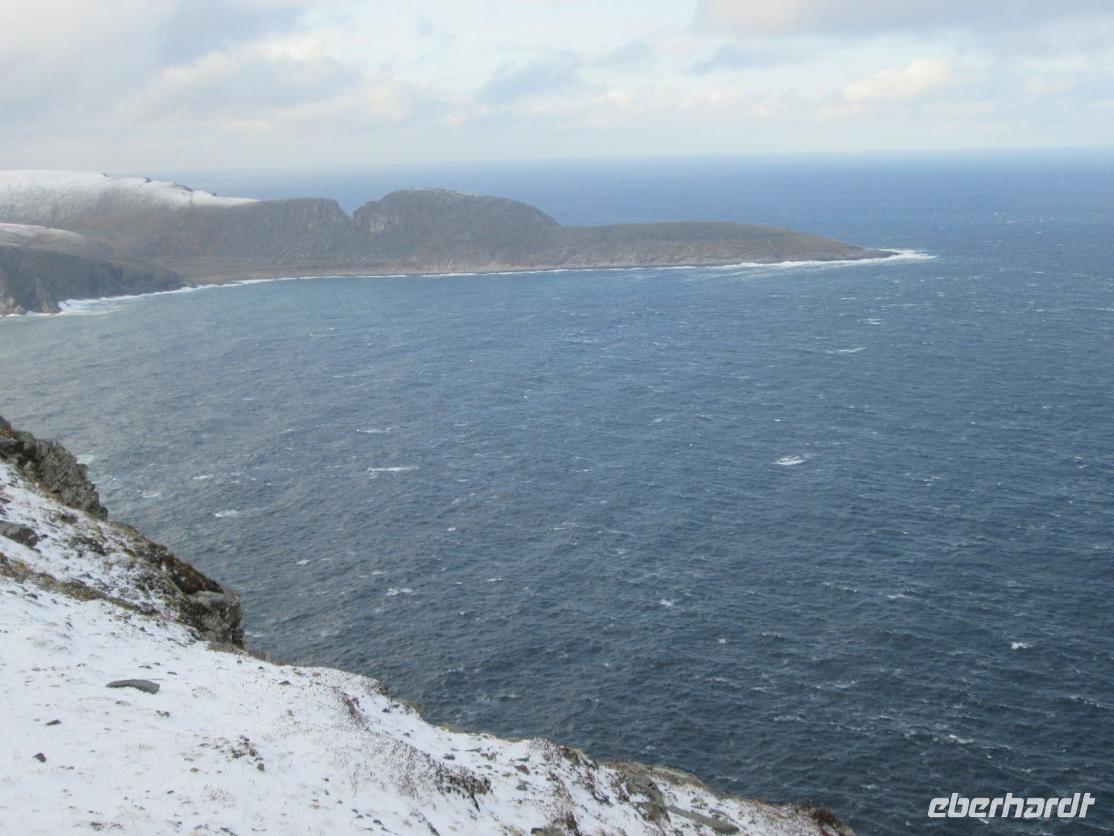 Aufgrund starken Windes, wir hatten eine Windgeschwindigkeit der Stärke 7, was etwa 60 km/h entspricht, und bis zu 4 m hohen Wellen hatte die "Richard With" ihre Reisegeschwindigkeit über Nacht und am Vormittag etwas gedrosselt, so dass eine Verspätung in Havøysund, wo wir zudem der auch verspäteten "Polarlys" den Ladevortritt lassen mussten, und Honningsvåg die Folge war. Aber Hurtigruten tut alles, um seine Gäste zufrieden zu stellen, so dass wir auch mit einer Verspätung wieder abfuhren. Somit konnte man voll und ganz den Nordkap-Ausflug genießen, und das zwar bei 2 Grad, aber Sonnenschein.