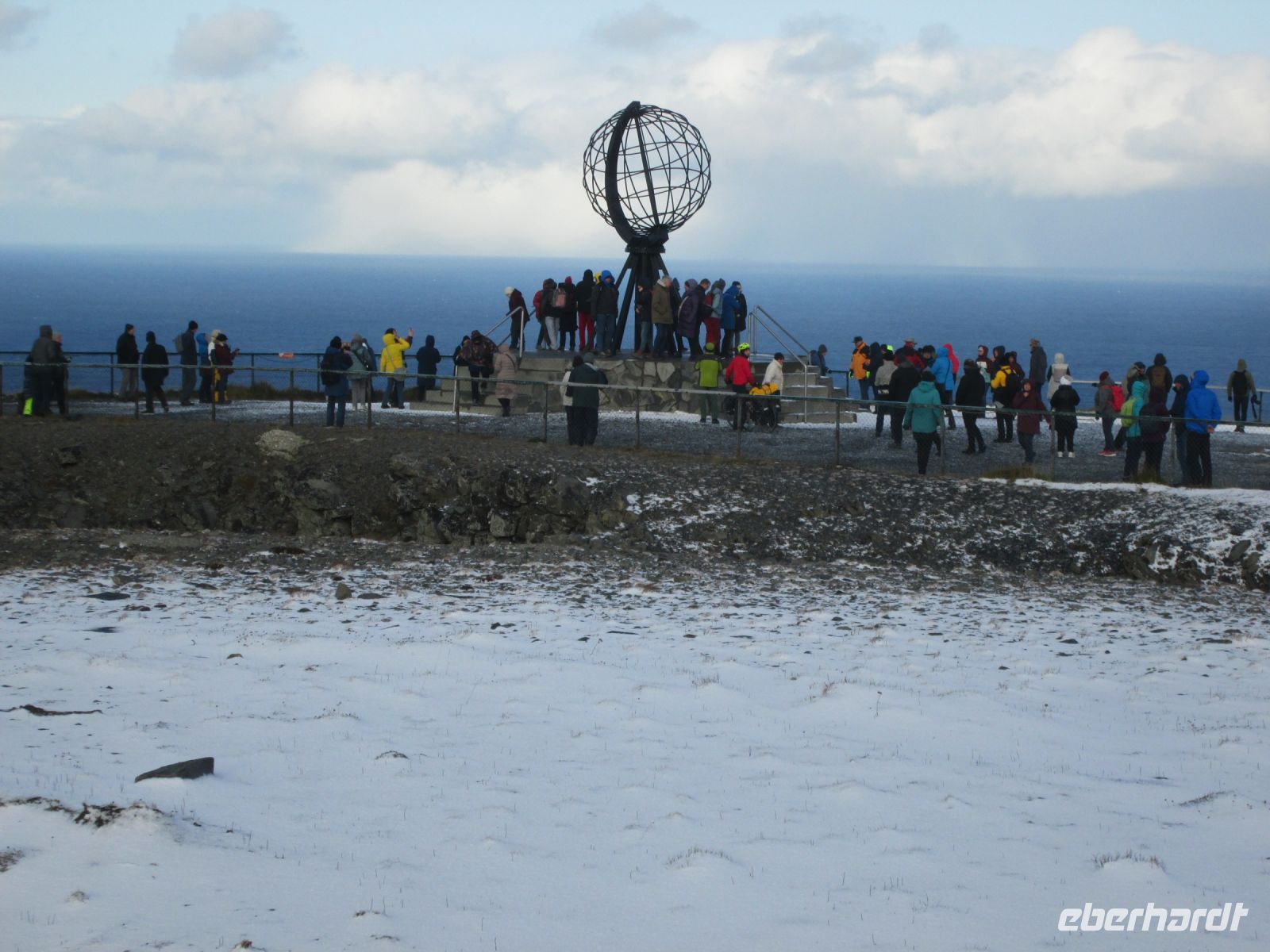 Arved, unser Buschauffeur sagte schon bei der Begrüßung am Kai, wir sollten Vorsicht walten lassen, es wäre aufgrund des Neuschnees überall glatt, vor allem "oben bei der Nordkaphalle". Dem wollten wir natürlich nachkommen.