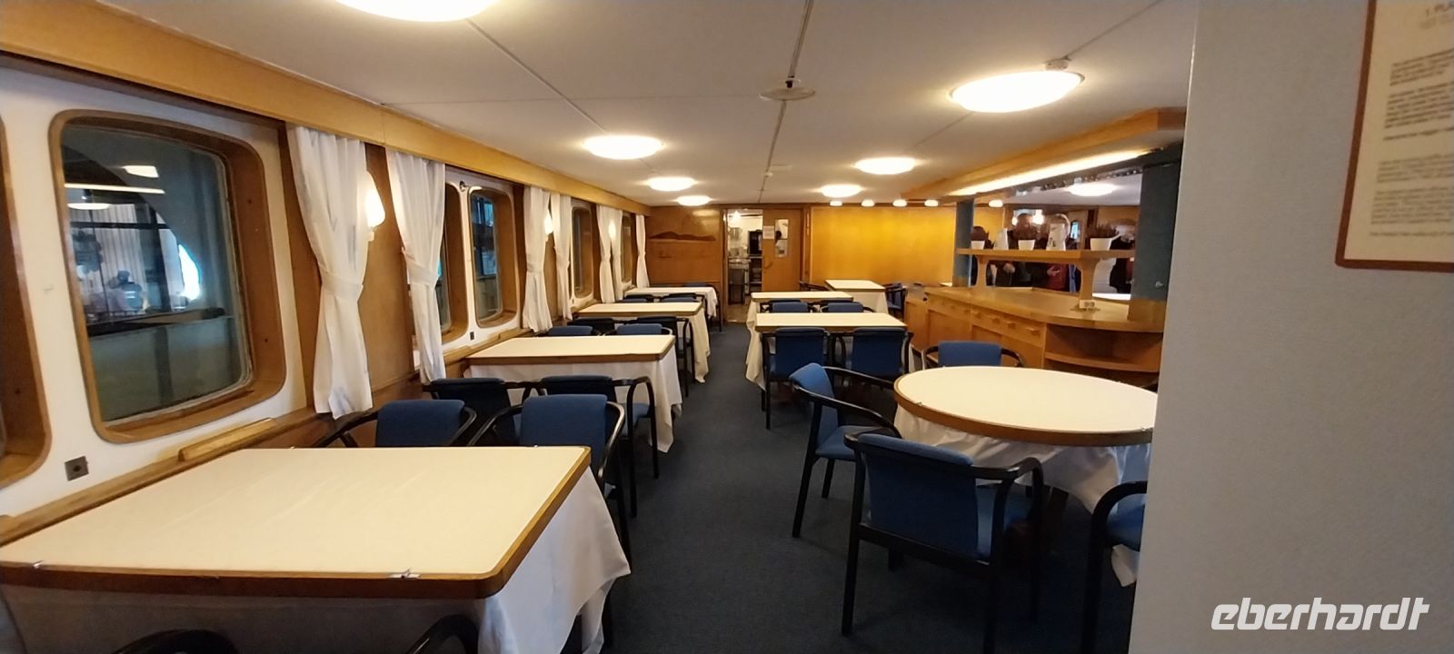 Hurtigruten ist bekannt durch seine rundum verwöhnende Vollpension, wo man Gefahr läuft, am Ende der Schiffsreise die Gürtel verändern zu müssen, und zwar im Umfang zu vergrößern. Das Abendessen, noch einmal als Buffet, ließ keine Wünsche offen.