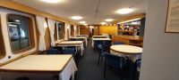 Bis zum Abendessen konnte ein Jeder das Schiff etwas kennen lernen. Es wurde 1993 auf der Volkswerft Stralsund erbaut, 2018 restauriert, hat eine Länge von 122 Metern und eine Geschwindigkeit von maximal 18 Knoten, was ca. 33 Km/h entspricht.