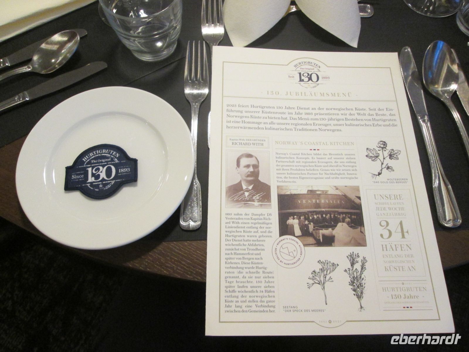 Da Hurtigruten in diesem Jahr 130igstes Jubiläum feiert, wurden wir mit einem 5-Gang-Abendmenü verwöhnt.