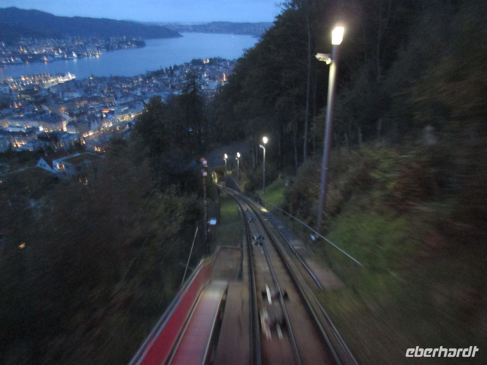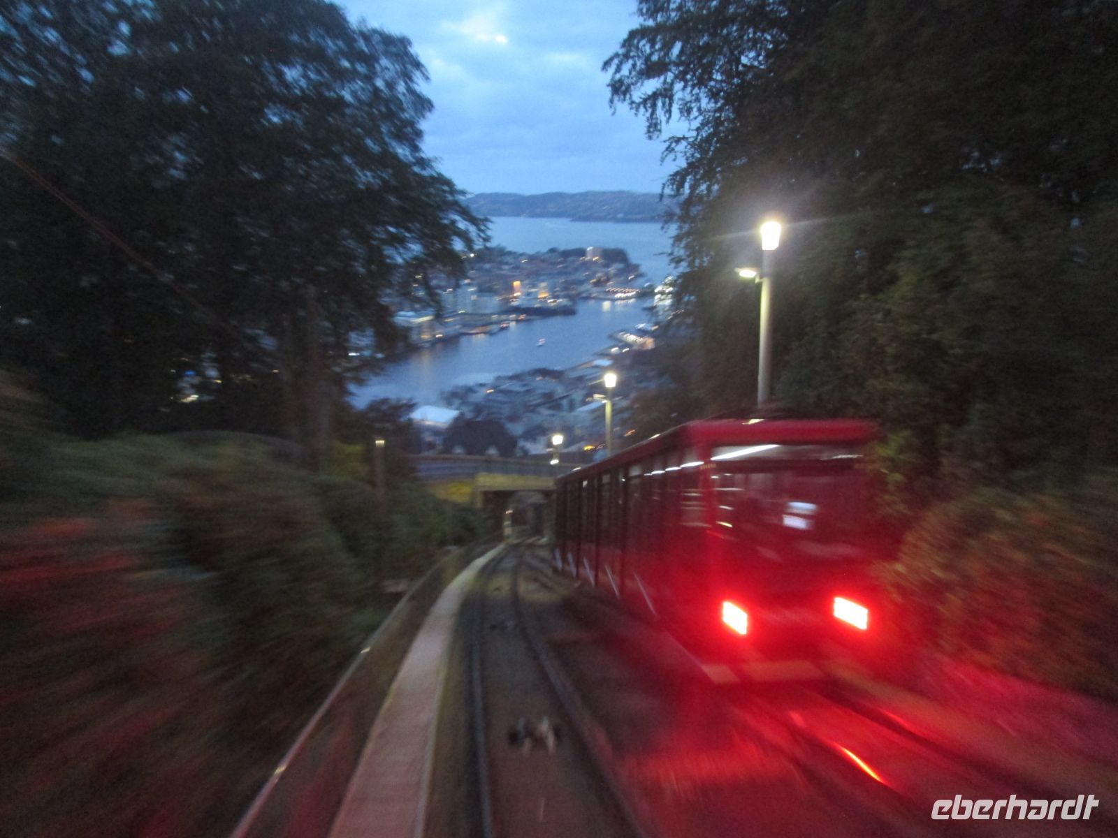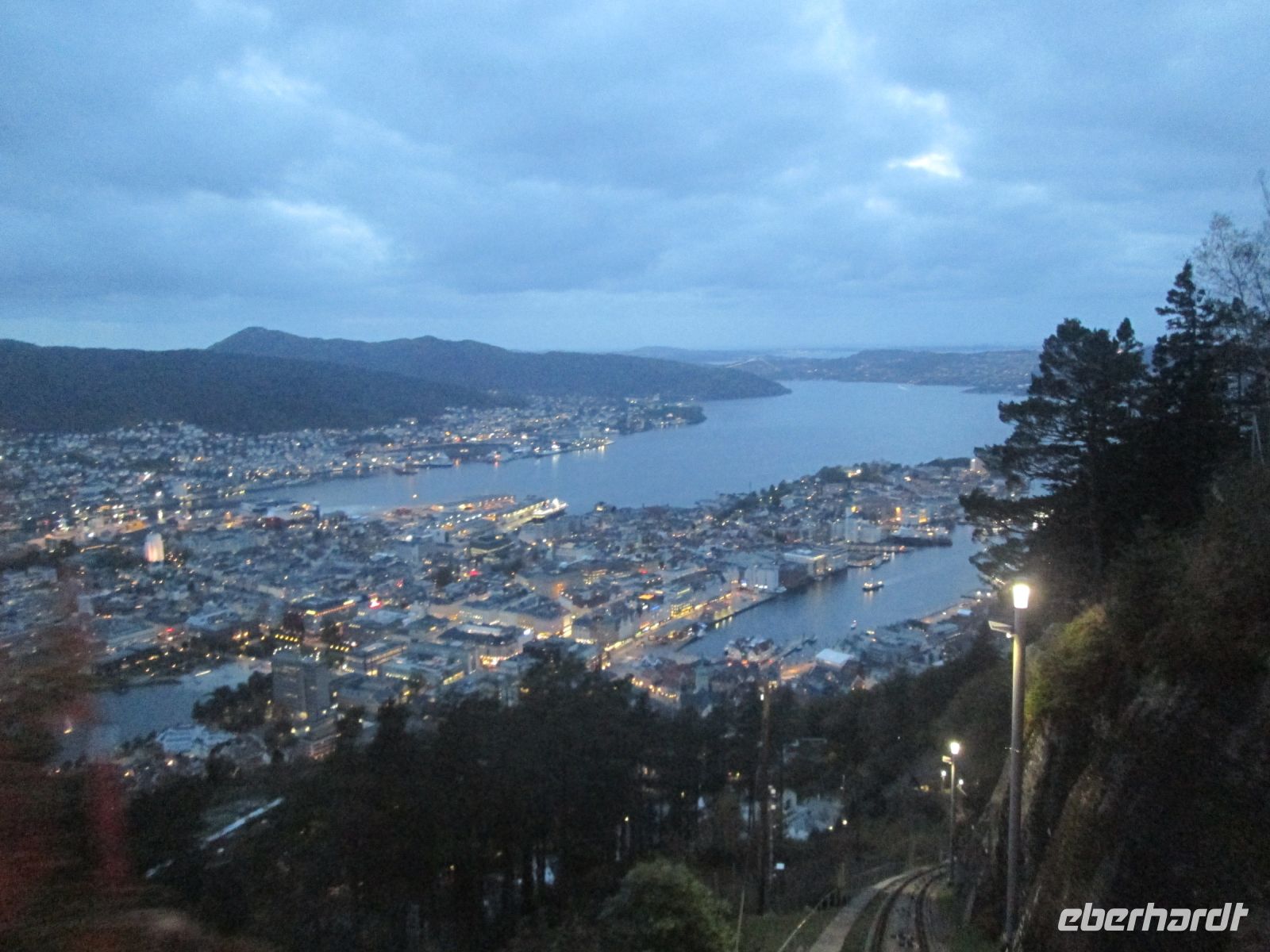 20.40 Uhr hieß es "Leinen los", die "Richard With" fuhr gemächlich dem abendlichen Lichtermeer der Stadt Bergen davon. Ganz in der Ferne grüßte noch die stark beleuchtete Trasse der Zahnradbahn auf einen der 7 Berge der Stadt, den Fløyen.