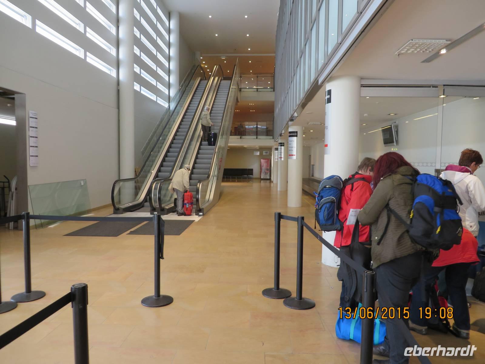 Die letzten Gäste steigen mit mir am Flughafen in Dresden aus. Außerdem habe ich noch den Koffer mit dem roten Anhänger dabei, den ich am nächsten Tag mit Hermes verschicken werde.