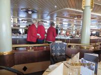 Wieder kann ich erst einmal nur von meinem Teil der Reise berichten. Früh um drei verabschiede ich mich von Frau A. in Molde. Eine zweistündige Taxifahrt führt mich nach Kristiansund, wo ich um 4.25 Uhr ankomme. Eine Stunde später sitze ich im Linienbus nach Trondheim. Weitere fünf Stunden später habe ich endlich unser Schiff eingeholt. Gegen halb zwölf halte ich mich auf Deck 3 auf, um die Gäste, die vom Ausflug zurückkommen zu begrüßen und zu zeigen, dass ich wieder da bin. Die Freude ist auf beiden Seiten groß.