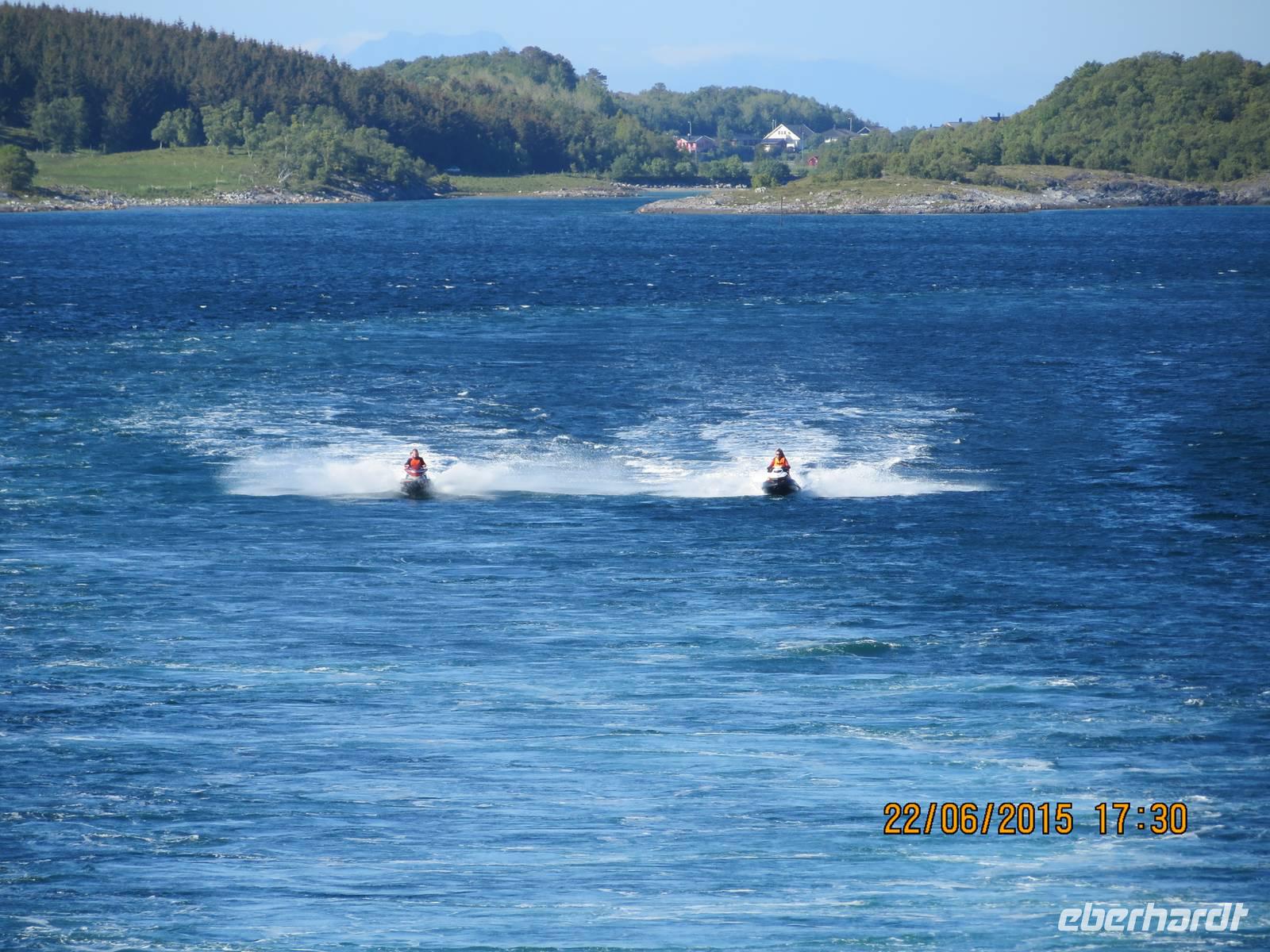 Gegen 7.15 Uhr passieren wir den Polarkreis 66 Grad und 33 Minuten nördlicher Breite. Der erste Ausflug heute führt (diejenigen, die den Ausflug zusätzlich gebucht haben) zum zweitgrößten Gletscher Norwegens. 08.45 Uhr holt ein kleines Schnellboot die Teilnehmer ab. Durch den Holandsfjord geht es zum Gletscher „Svartisen". Der Name bedeutet „schwarzes Eis" und beschreibt die unterschiedlichen Farbtöne des Gletschers. Ist es Ihnen gelungen, im Reich des Seeadlers selbige zu sehen und zu fotografieren? Ich freue mich auf Ihre Bilder! An Bord gibt es im Souvenirshop Polarkreisbriefmarken mit entsprechendem Poststempel zu kaufen. Wir haben heute einen Erholungstag und keinen gemeinsamen Ausflug. In Bodo, wo wir am frühen Nachmittag einen Stopp einlegen, gehen einige Gäste individuell an Land oder haben sich einem organisierten Ausflug angeschlossen. Bodo ist die Hauptstadt im Bezirk Nordland mit ca. 40.000 Einwohnern. Bis zum Stadtzentrum sind es zehn Minuten zu Fuß. Ein anderer Ausflug ist der Besuch des Saltstraumen, entweder mit dem Schlauchboot oder mit dem Bus. Der Saltstraumen ist der stärkste Gezeitenstrom der Welt. 370 Millionen Kubikmeter Wasser fließen durch ein hundertfünfzig Meter breites und 31 Meter tiefes Flussbett, wobei ein mächtiger Strudel entsteht.
