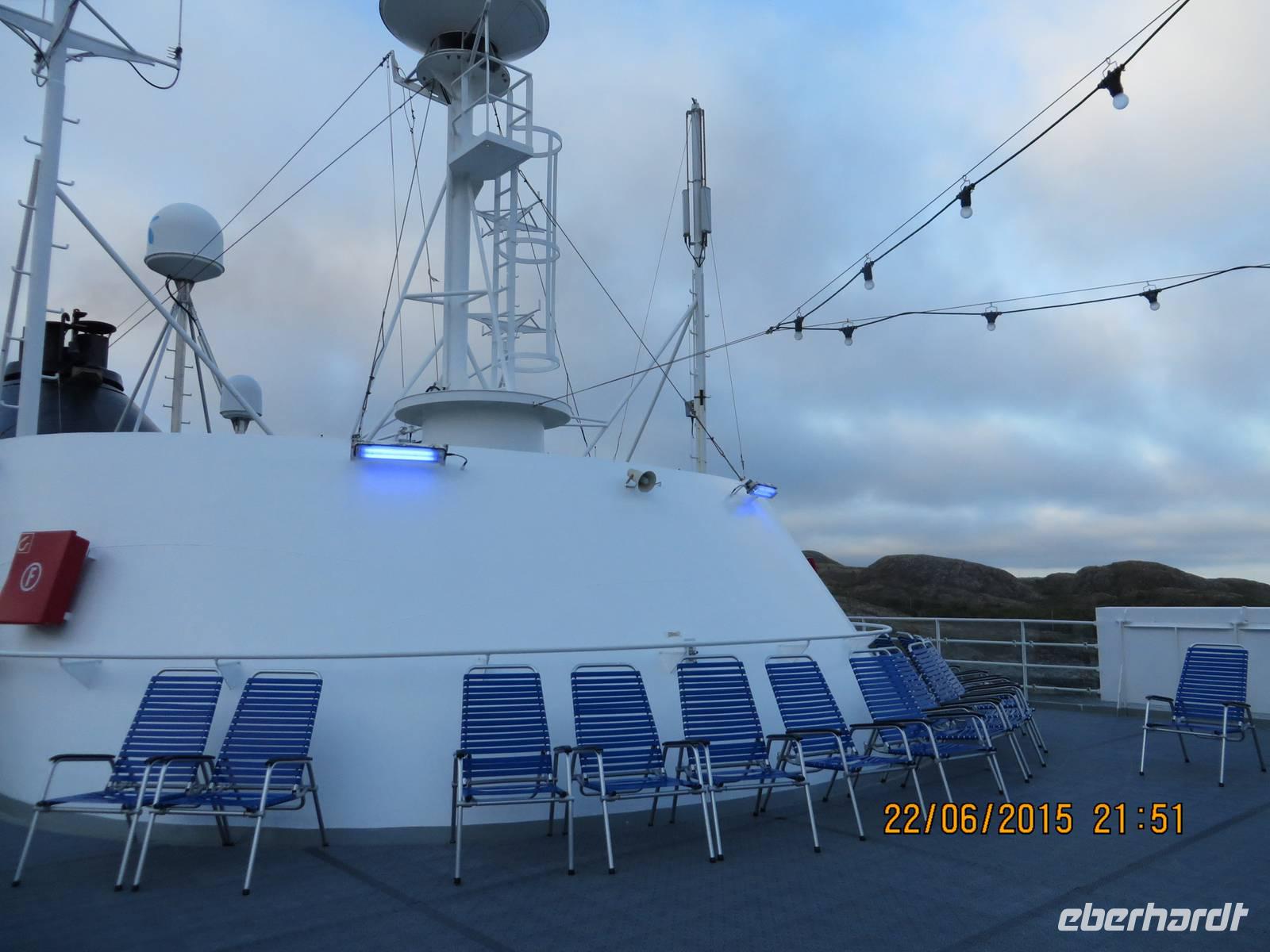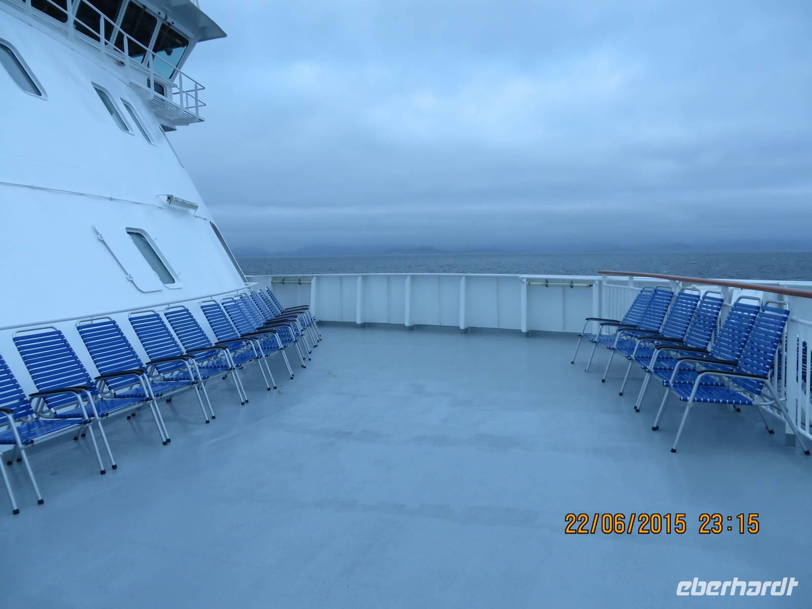 Als ich zwischen 22 und 23 Uhr auf unserem Schiff die letzten Mittsommernachtsfotos aufnehme, ist das Deck wie leergefegt. Alle sind schon in den Betten und träumen süß.
