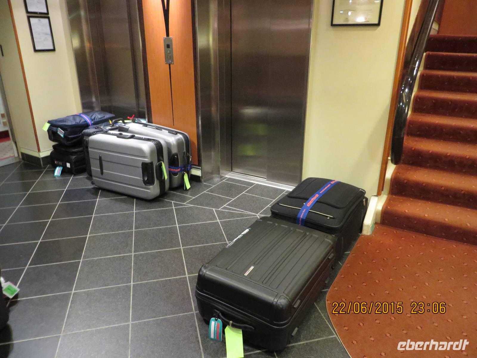 Unser Hotel in Oslo befindet sich in unmittelbarer Nähe vom Hauptbahnhof. Die meisten Zimmer sind bereit und wer das Glück hat, ein Zimmer zugewiesen zu bekommen, kann auf eigene Faust Oslos Innenstadt erobern. Ein paar andere müssen etwas warten. Der Koffer mit dem roten Anhänger findet sich an. Ich beschließe, diesen mit nach Deutschland zu nehmen, um ihn unkompliziert dem Besitzer zukommen zu lassen. Das Abendessen im Hotel ist nicht so vornehm wie auf dem Schiff, aber Nudeln Bolognese oder Lachs und Kartoffeln mit Vorspeisen und leckerem Nachtisch sättigen dennoch.