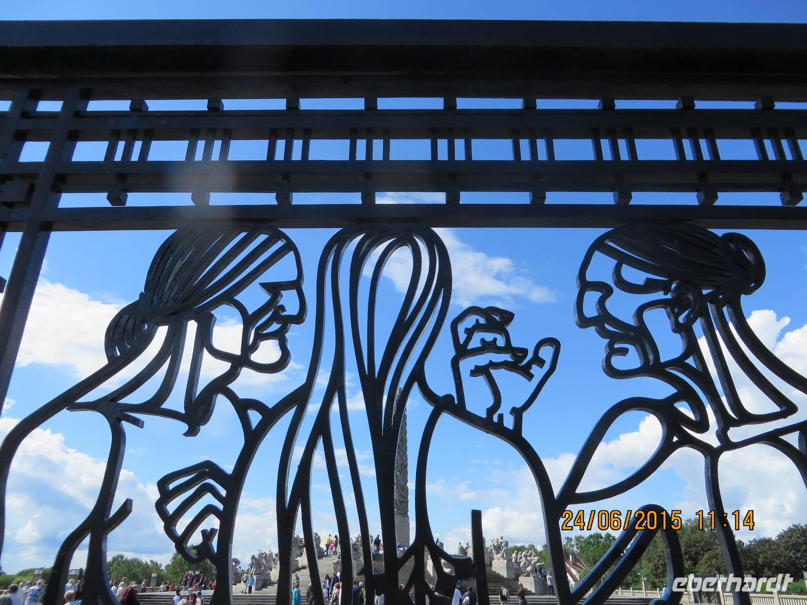 Da der Himmel gerade seine Schleusen öffnet und uns mit einem gewaltigen Schauer beehrt, fahren wir anstatt zum Vigeland Park zunächst zum Holmenkollen. Dort haben wir Glück, denn nach zehn Minuten ist der Himmel wieder blau und wir können die berühmte Skisprungschanze besichtigen. Auch beim anschließenden Besuch des Vigelandskulpturenparks bleibt uns das schöne Wetter treu. Mehr als 200 Skulpturen gibt es hier zu sehen. Der Weg führt vorbei am Obelisk zum Springbrunnen und dem bekannten Trotzköpfchen. Die Zeit reicht dennoch nur für einen kurzen Eindruck, denn uns erwartet die Color Line, unsere Fähre in die Heimat.
