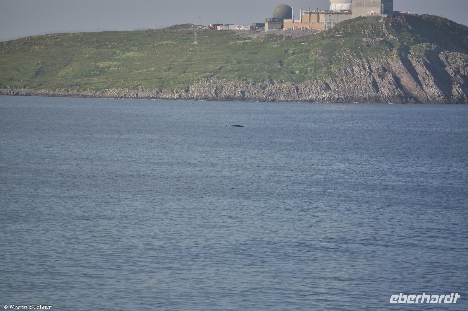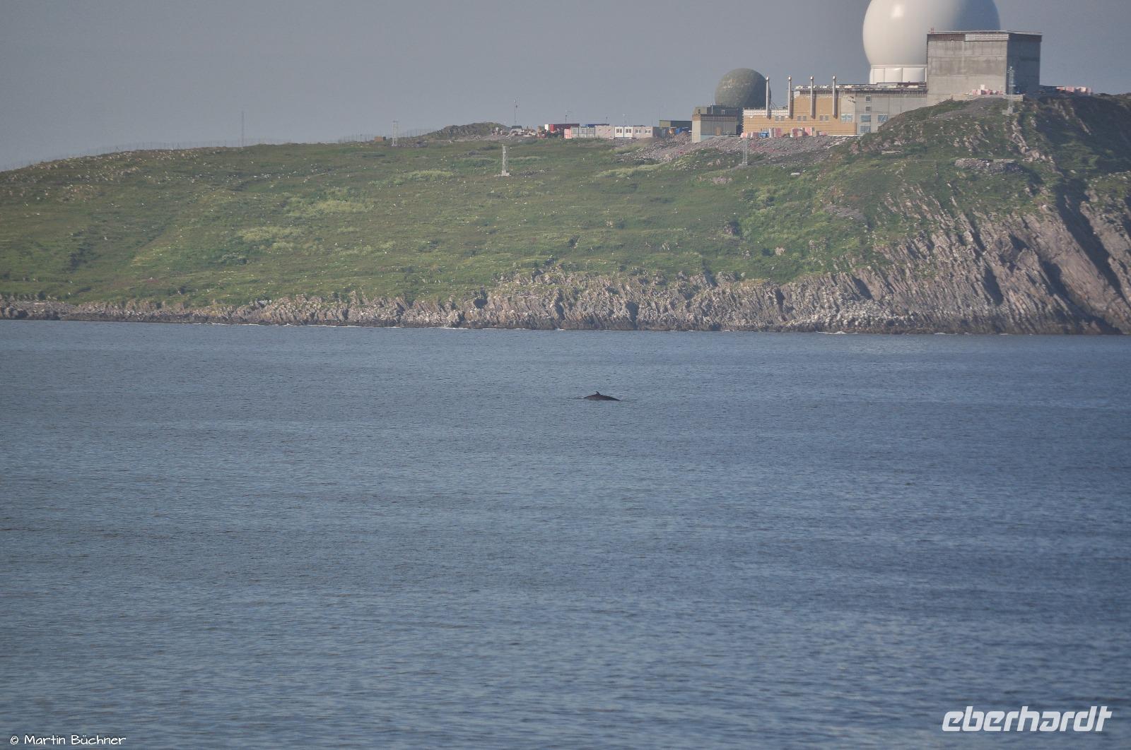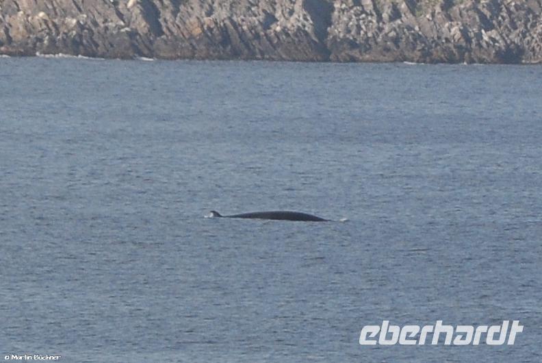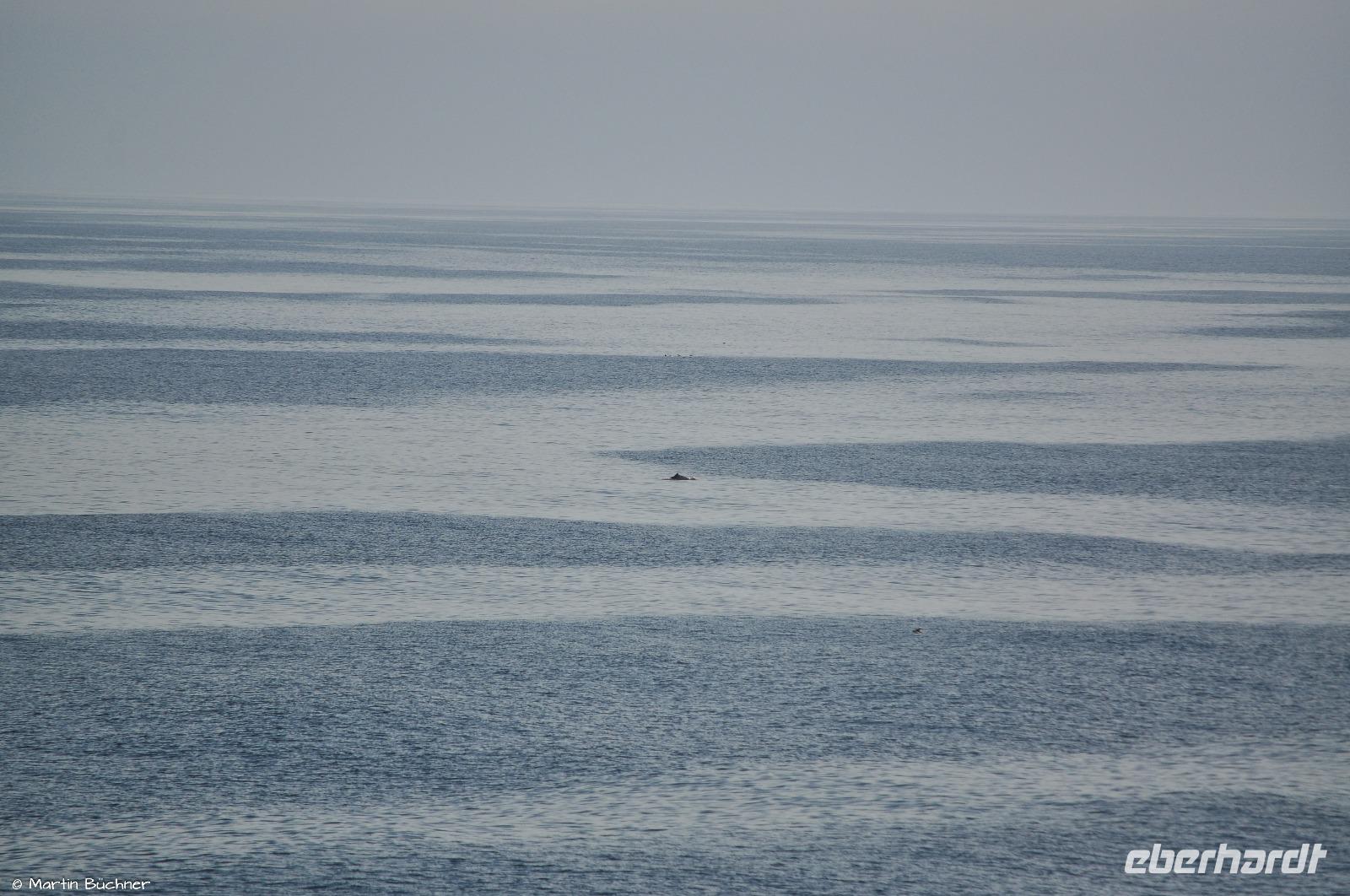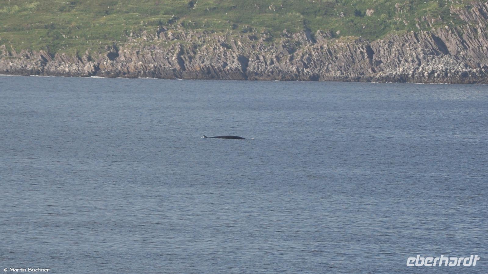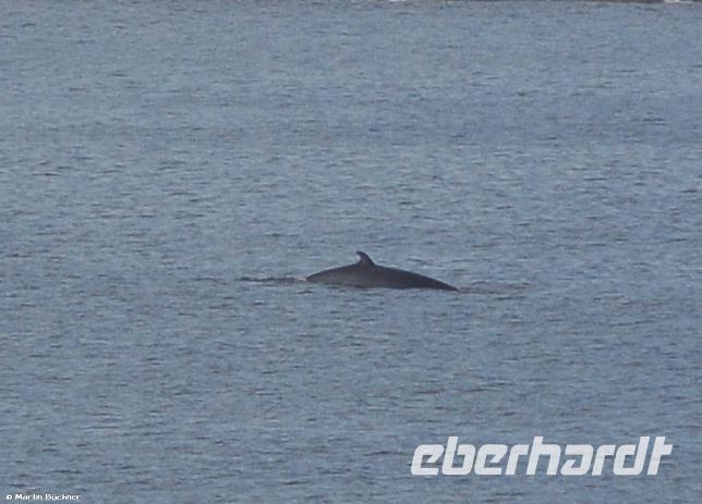 Auf dem Weg dorthin sind bei bestem Wetter viele Wale zu sehen. Eine Vielzahl von Schweinswale und sogar Minkwale (Zwergwal) und dann die große Überraschung einem mutmaßlichen Finnwal.