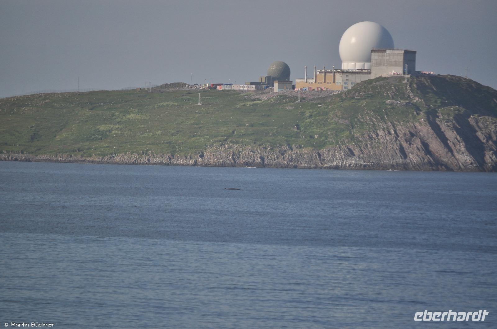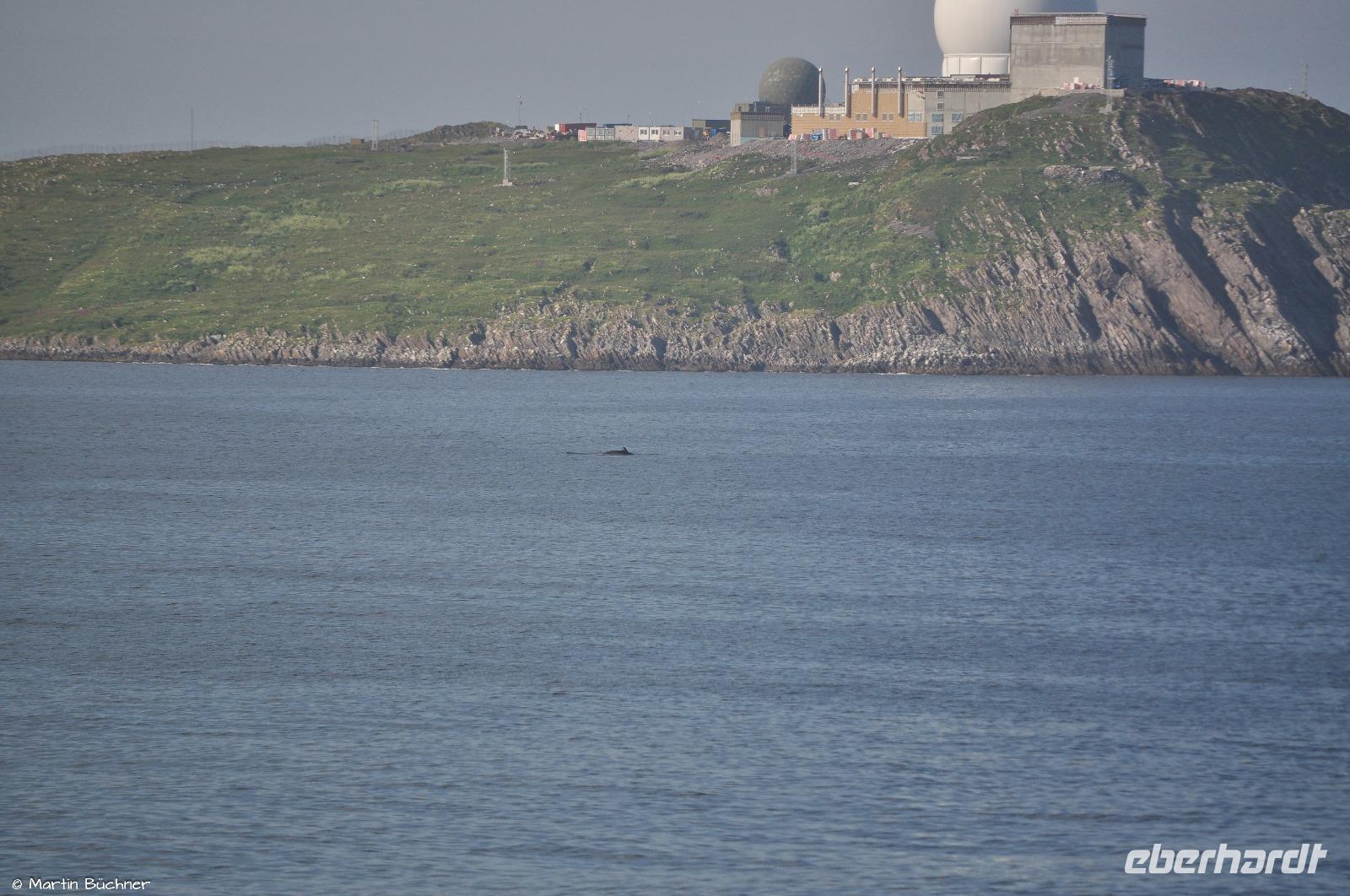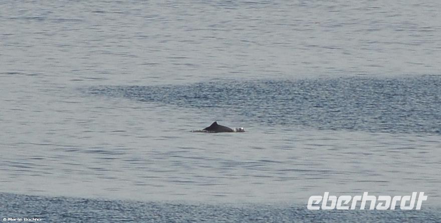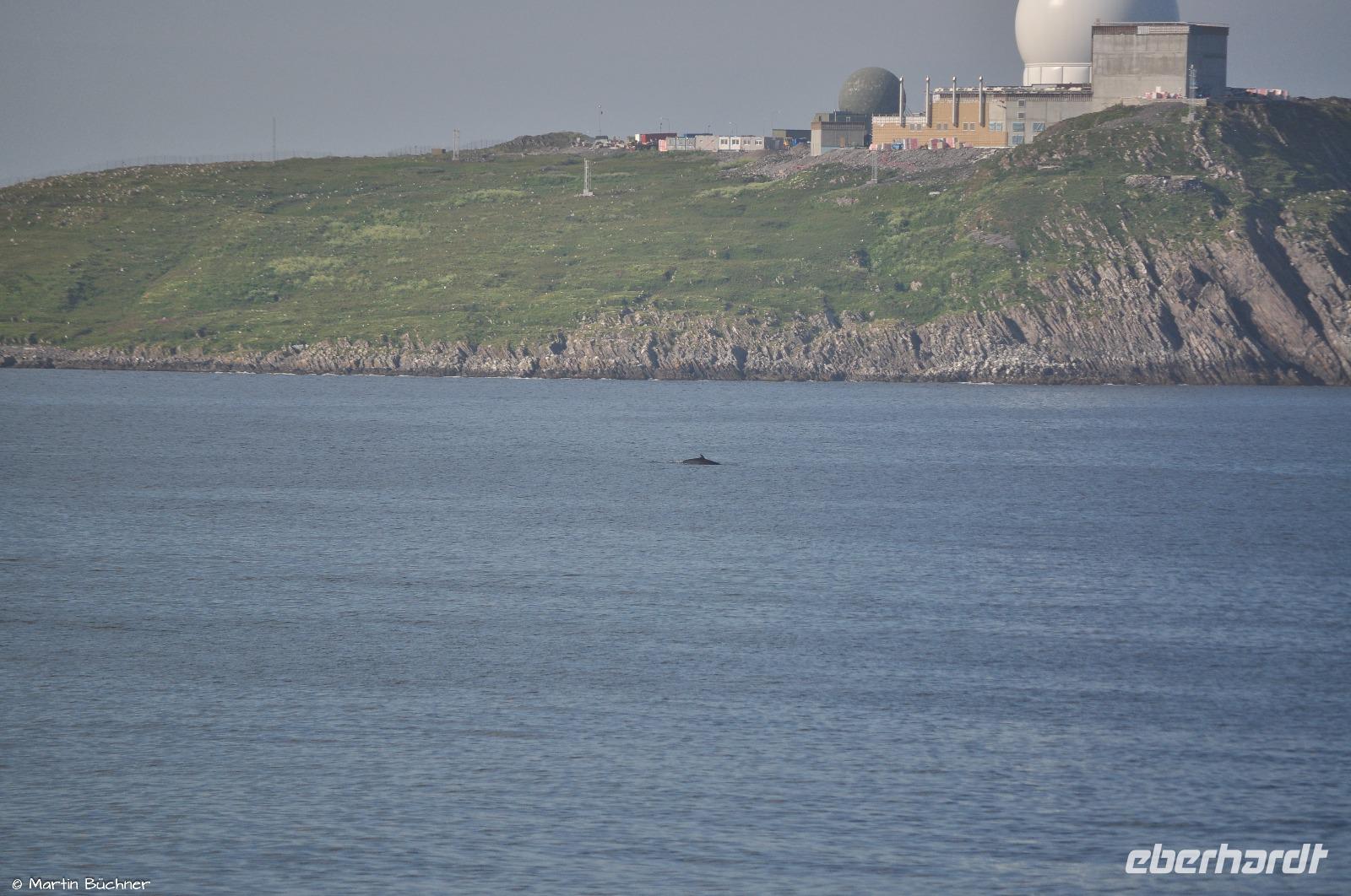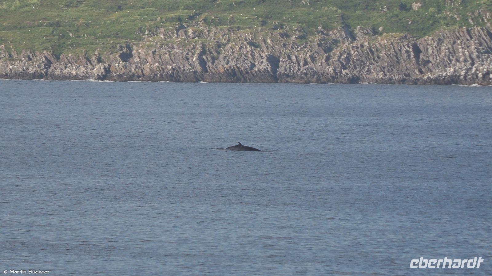 Auf dem Weg dorthin sind bei bestem Wetter viele Wale zu sehen. Eine Vielzahl von Schweinswale und sogar Minkwale (Zwergwal) und dann die große Überraschung einem mutmaßlichen Finnwal.