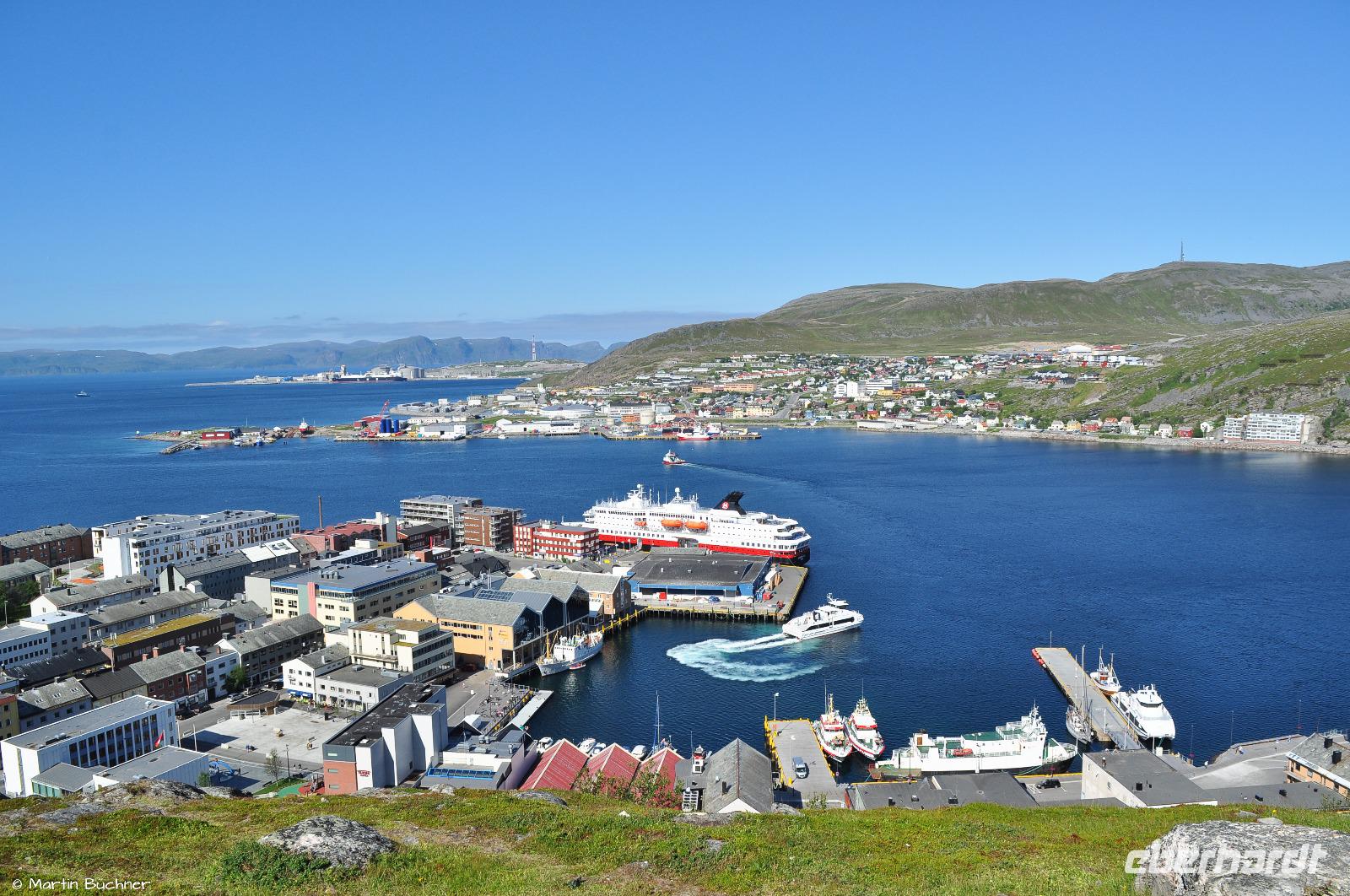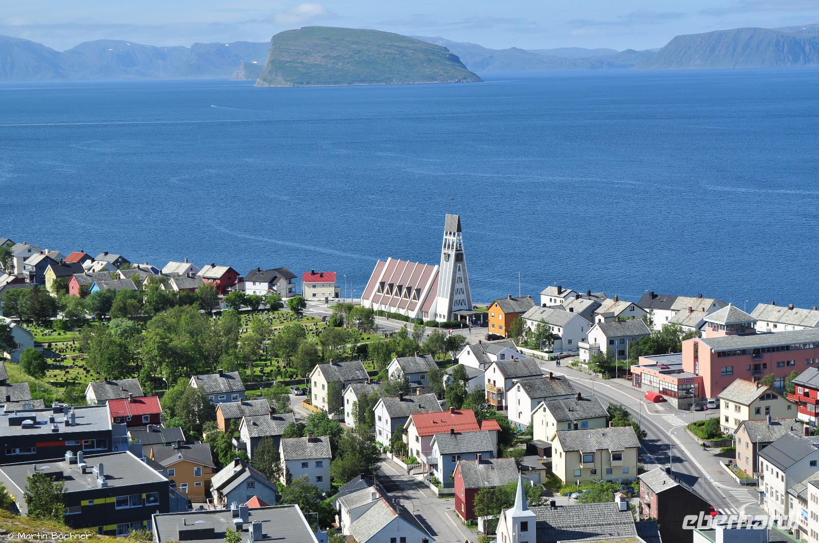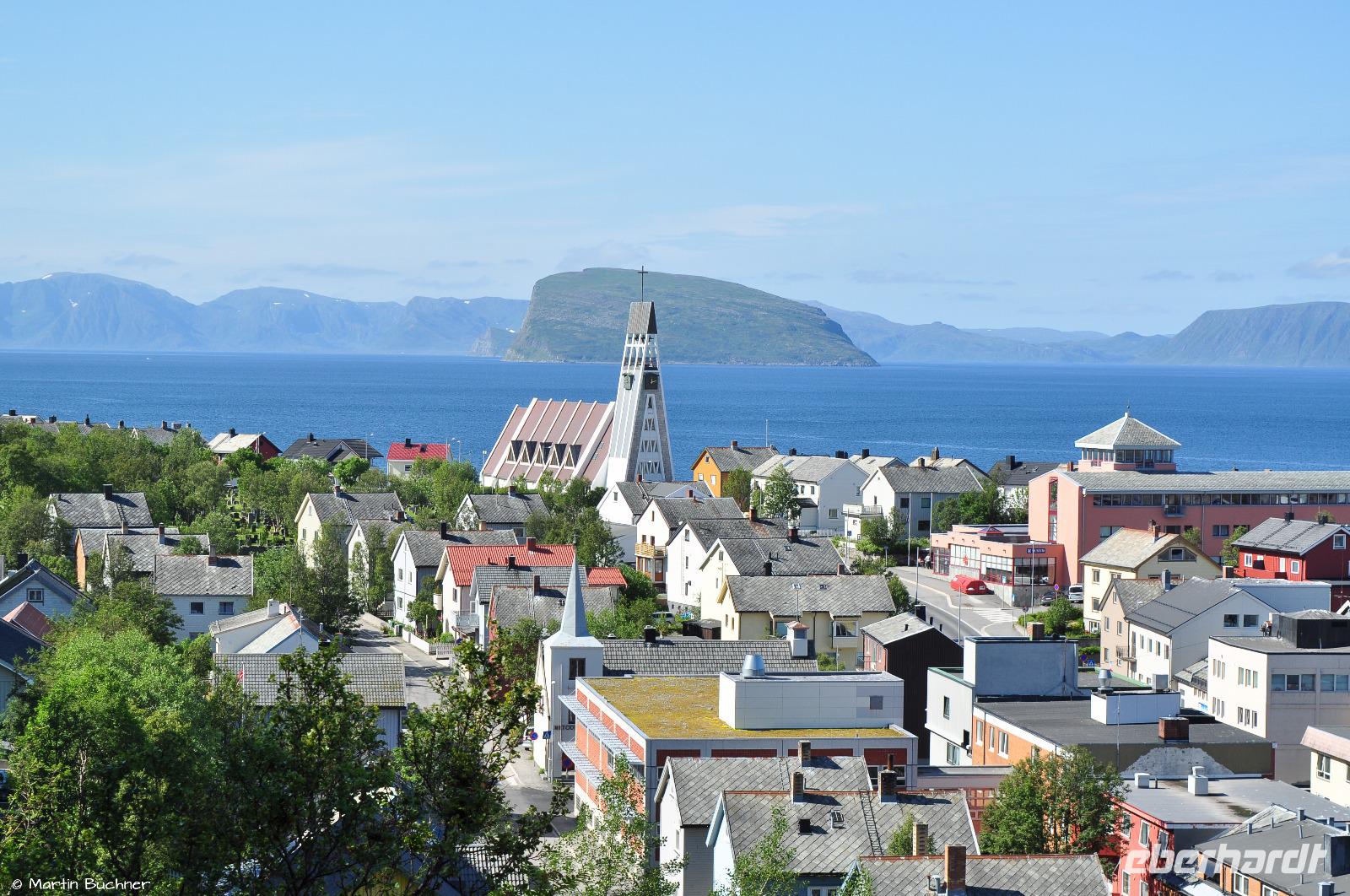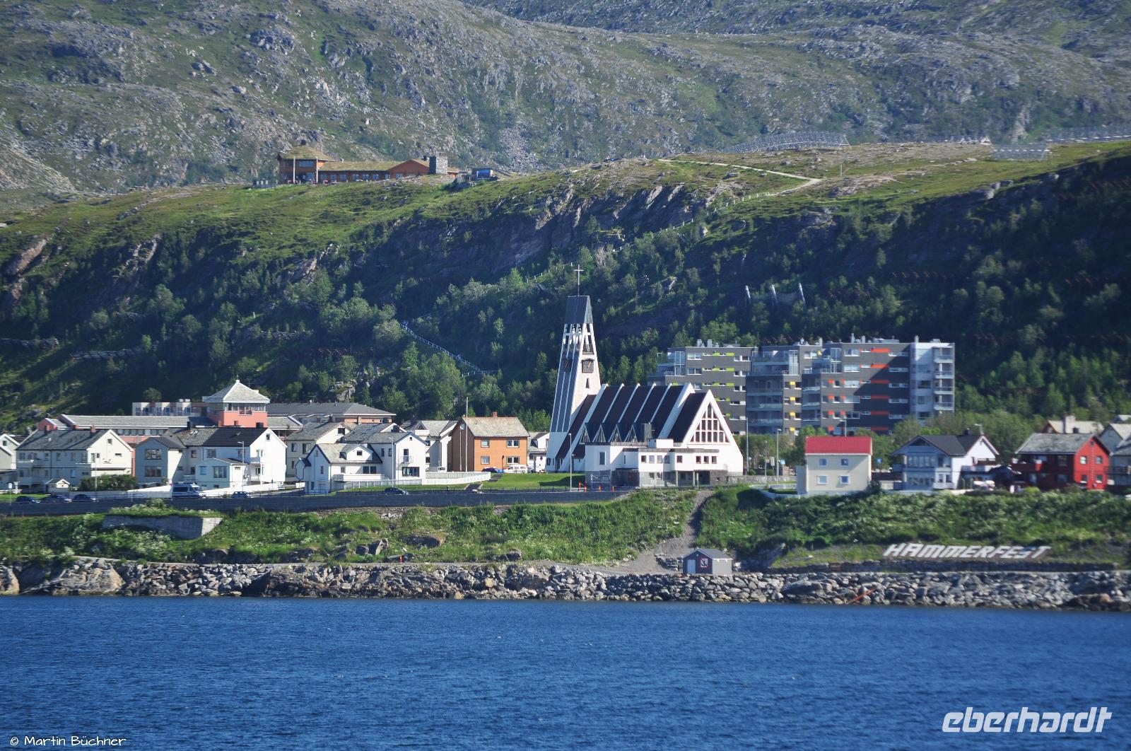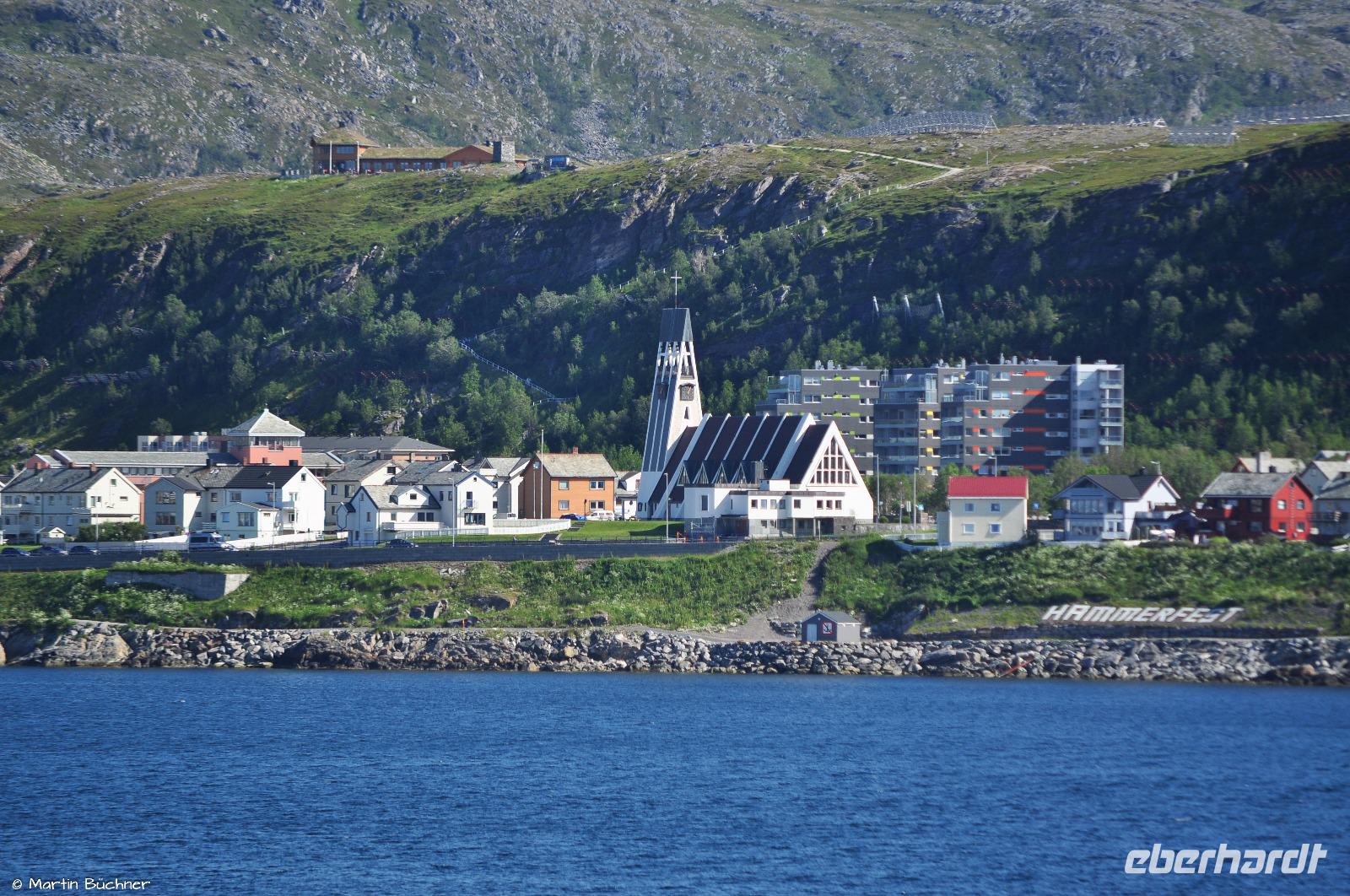 Wir erreichen die „nördlichste Stadt der Welt". Hammerfest darf diesen Titel weitertragen, da Honningsvaag, dass vor wenigen Jahren zur Stadt erklärt wurde, auf diesen Titel verzichtet hat.