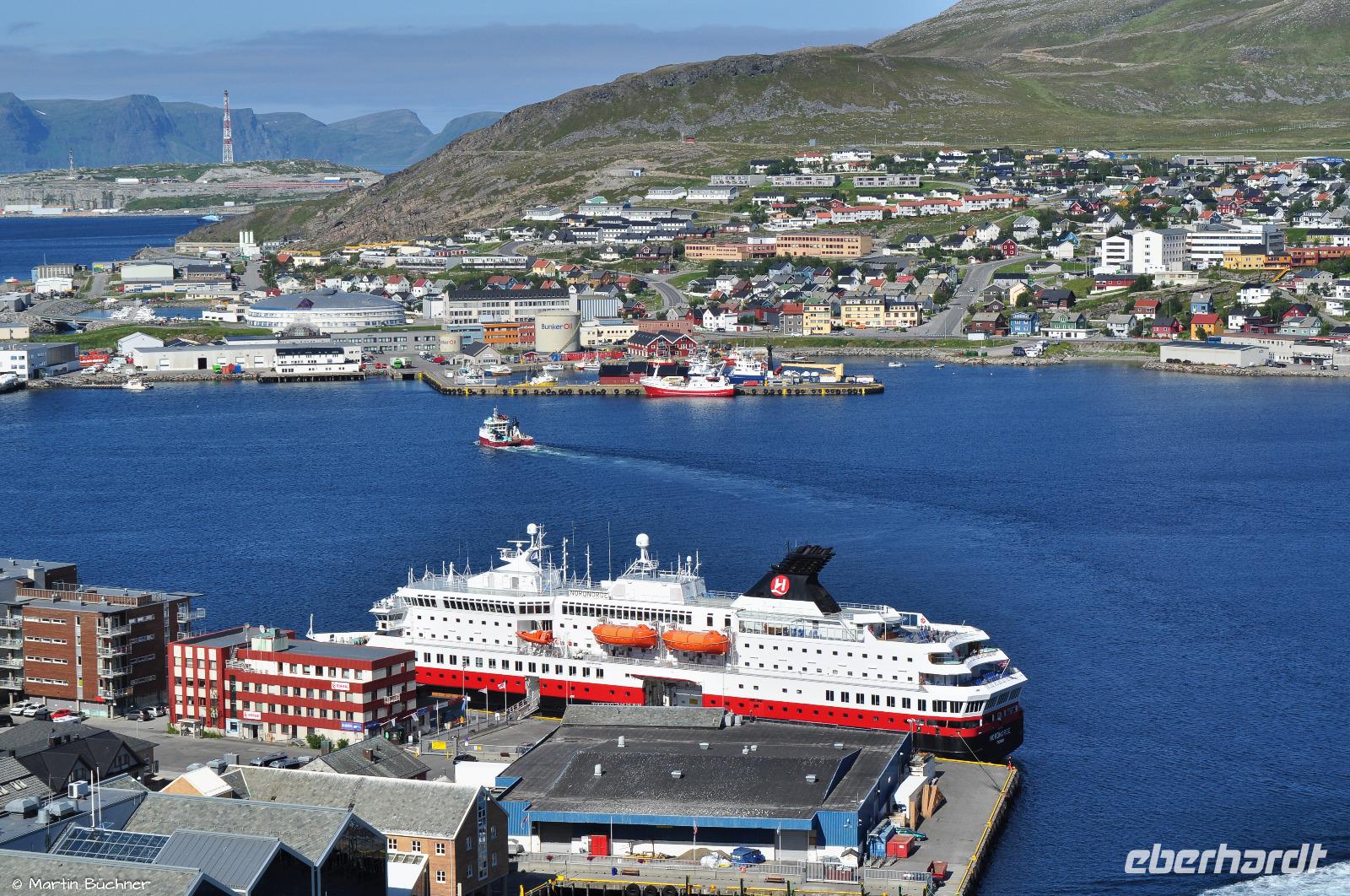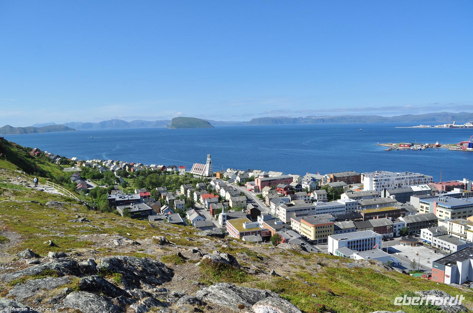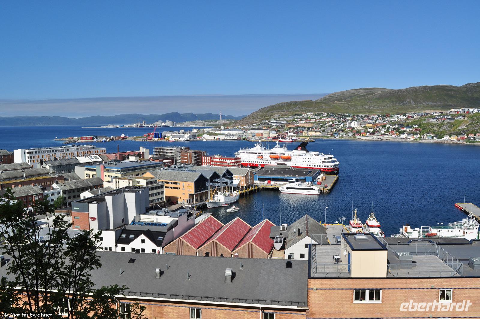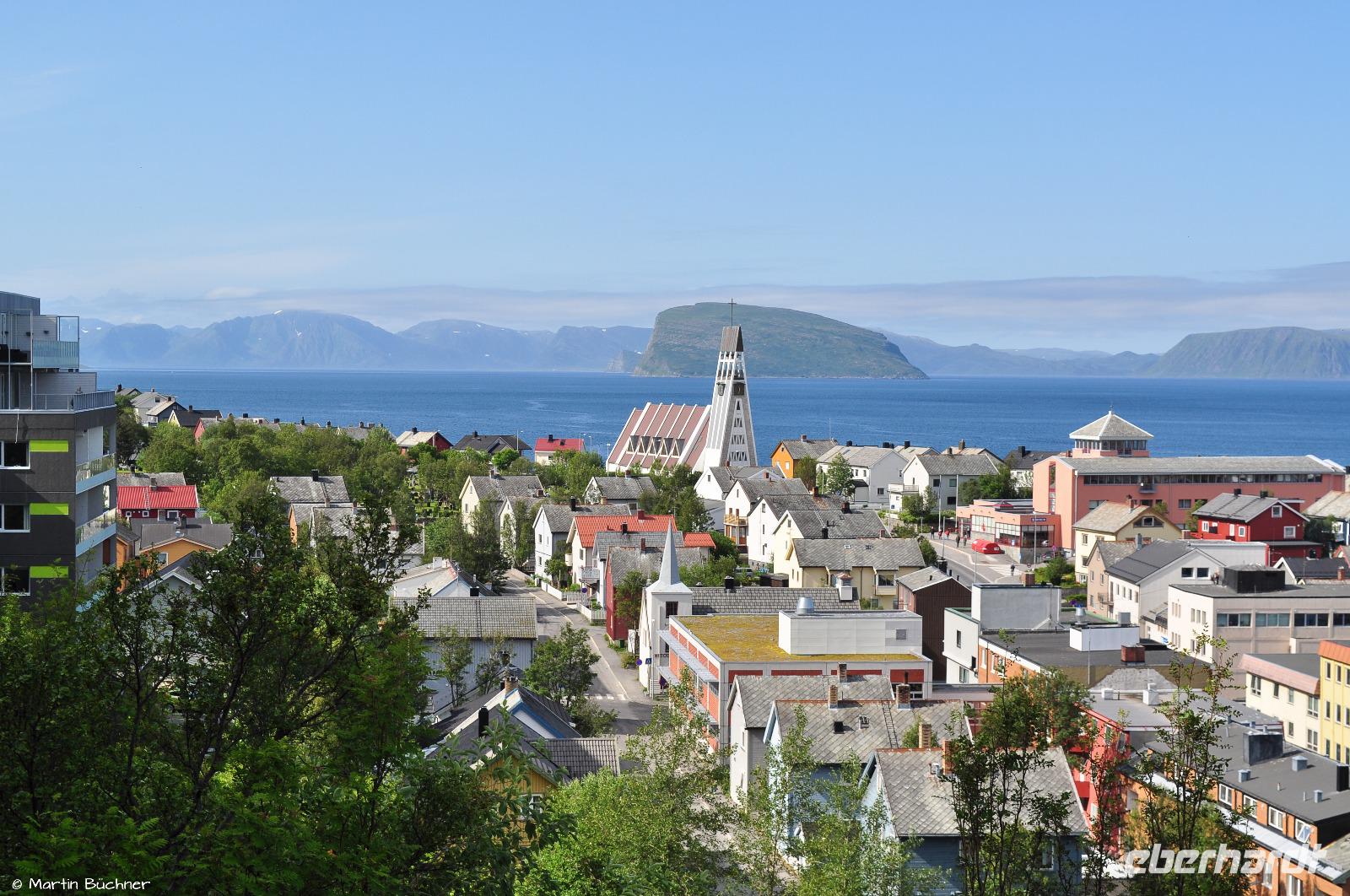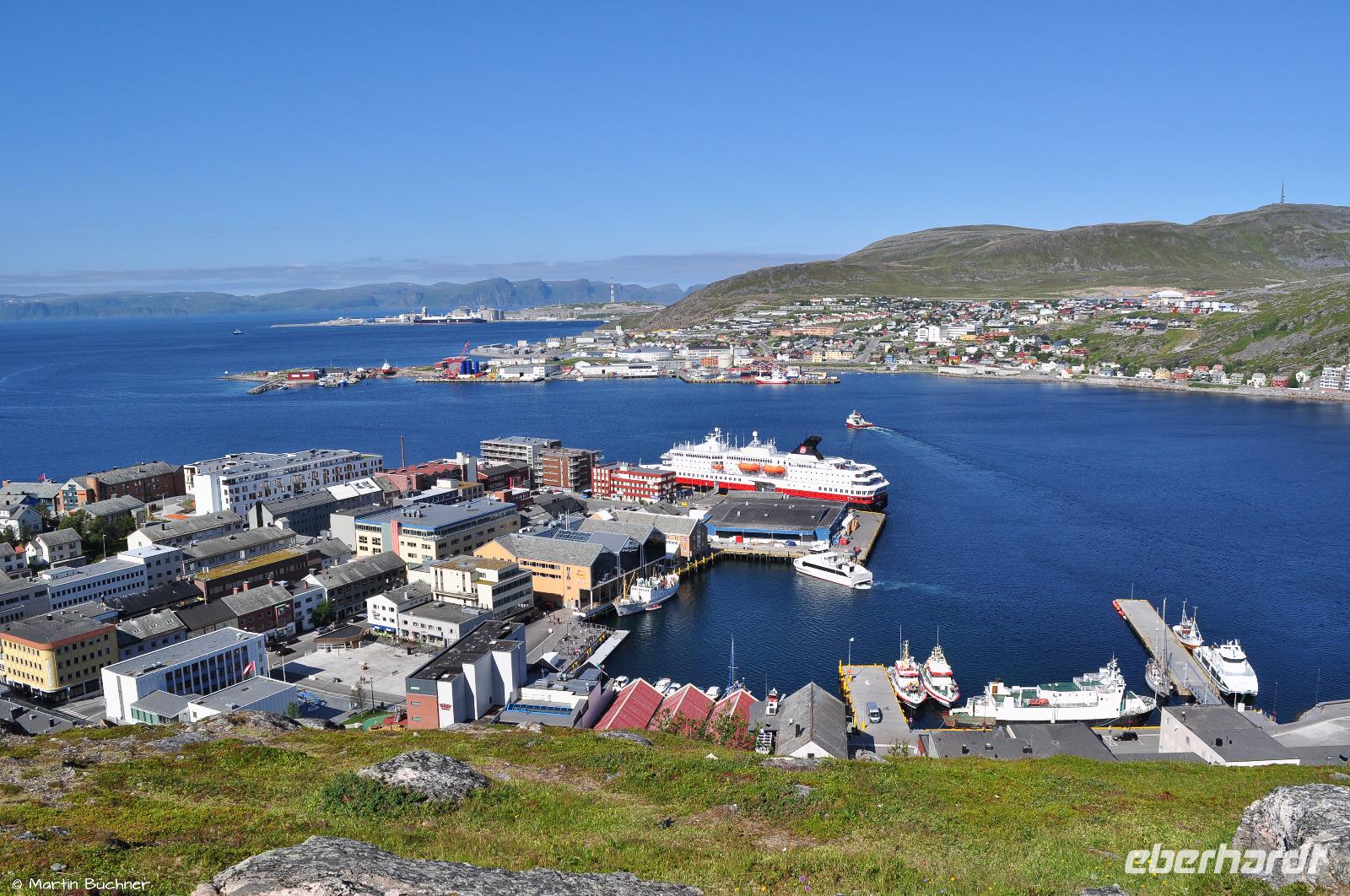 Wir erreichen die „nördlichste Stadt der Welt". Hammerfest darf diesen Titel weitertragen, da Honningsvaag, dass vor wenigen Jahren zur Stadt erklärt wurde, auf diesen Titel verzichtet hat.