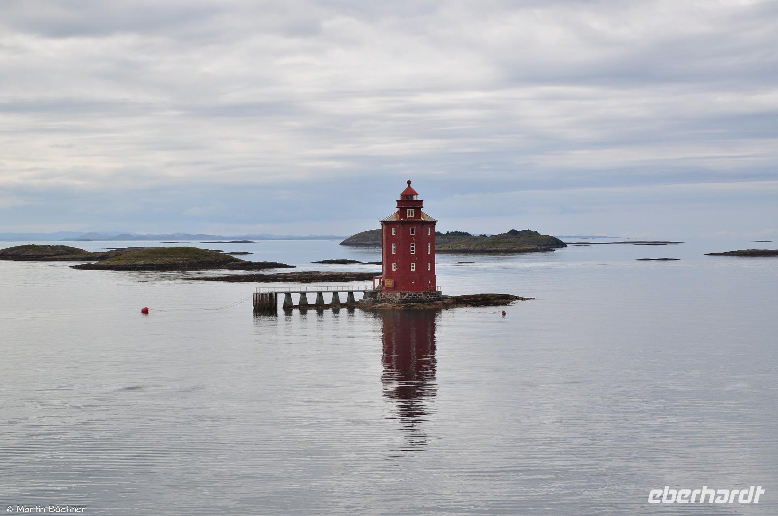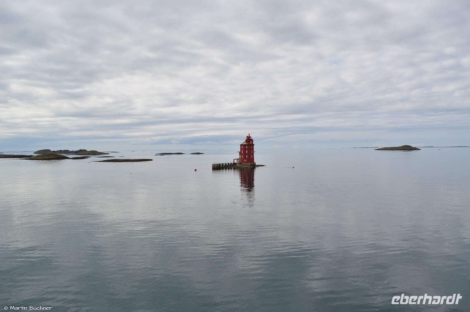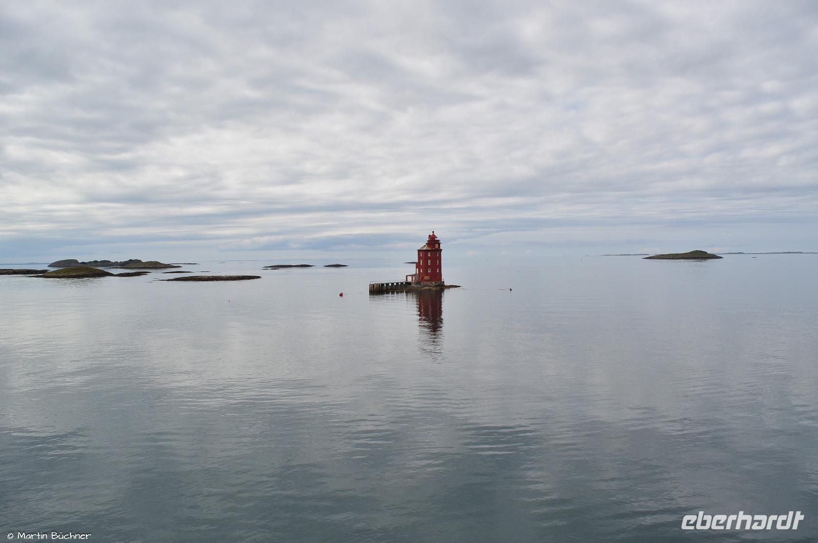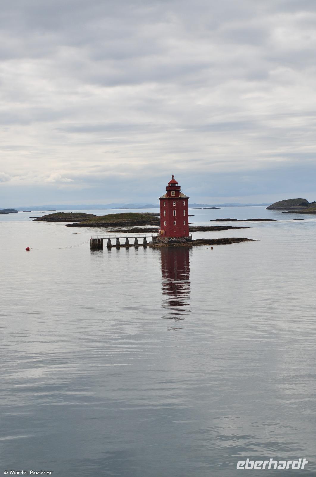 Am frühen Nachmittag passieren wie den Leuchtturm Kjeungsskjaer fyr. Ein roter achteckiger Leuchtturm, der bekannteste der Hurtigruten Strecke.