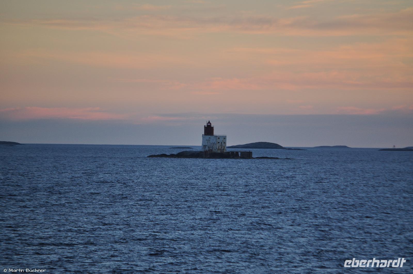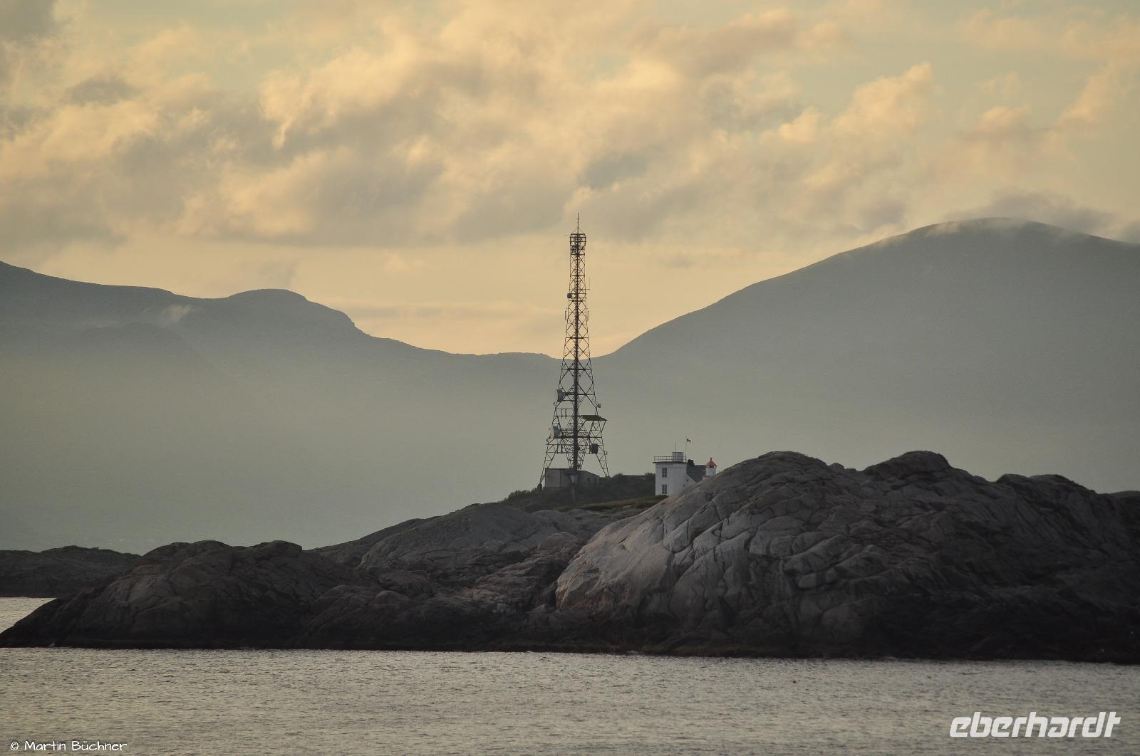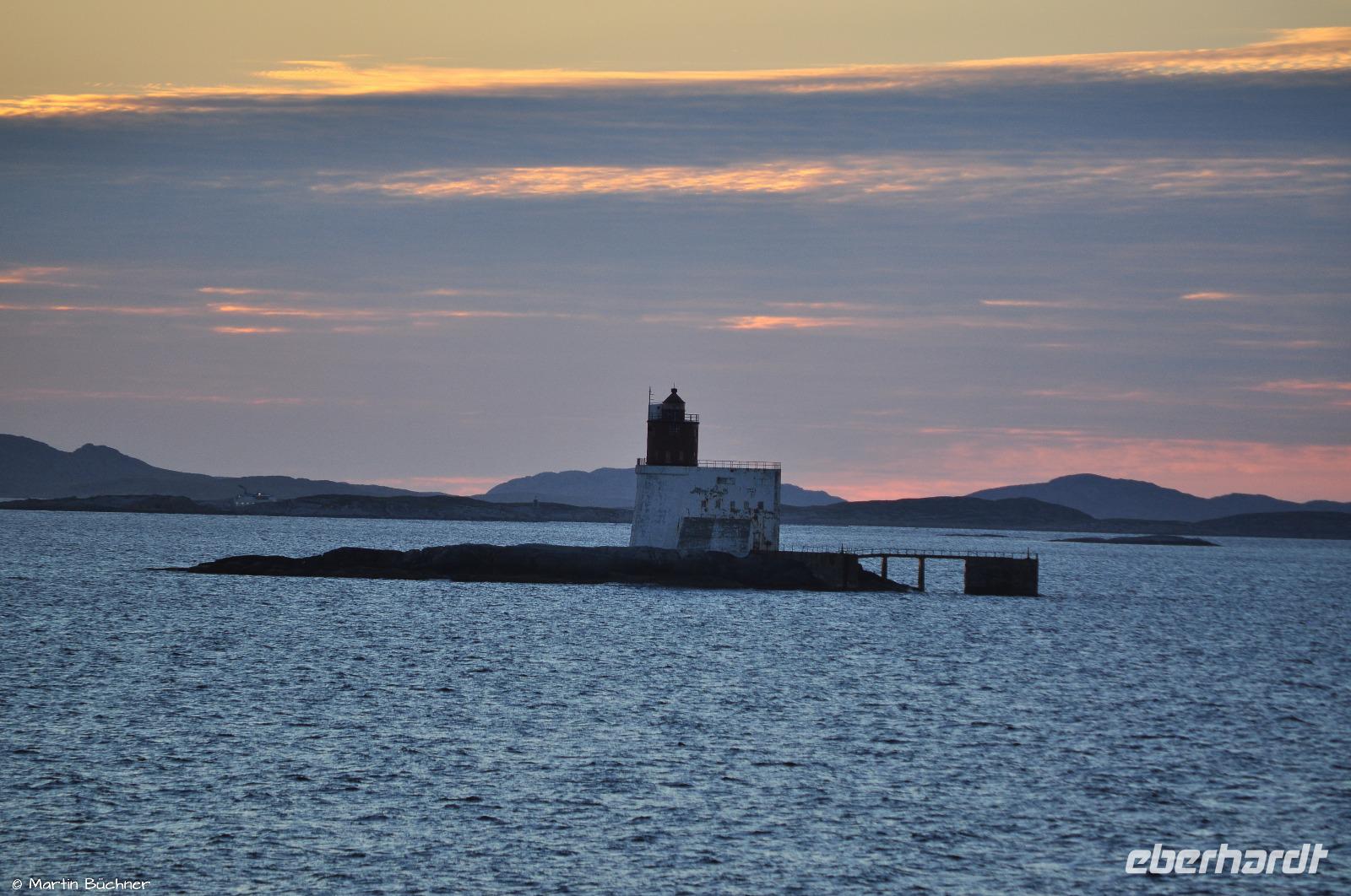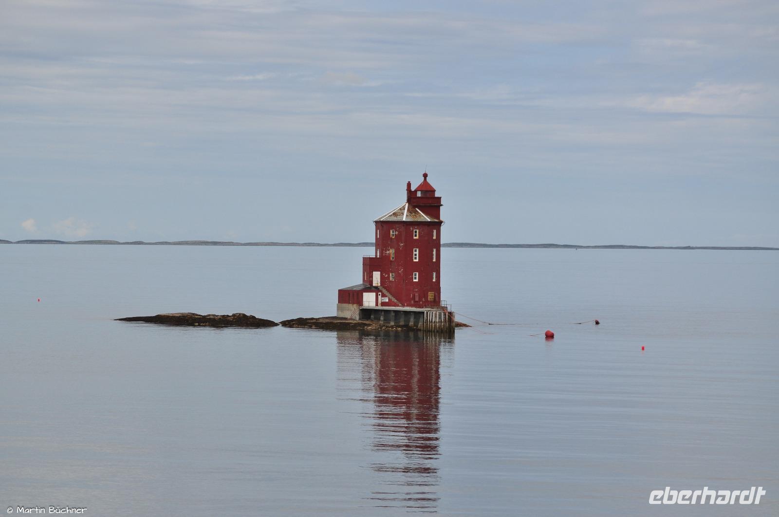Am frühen Nachmittag passieren wie den Leuchtturm Kjeungsskjaer fyr. Ein roter achteckiger Leuchtturm, der bekannteste der Hurtigruten Strecke.