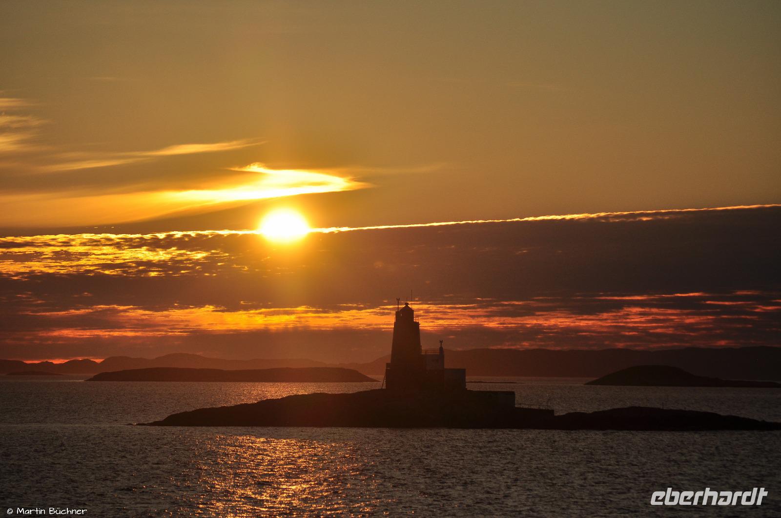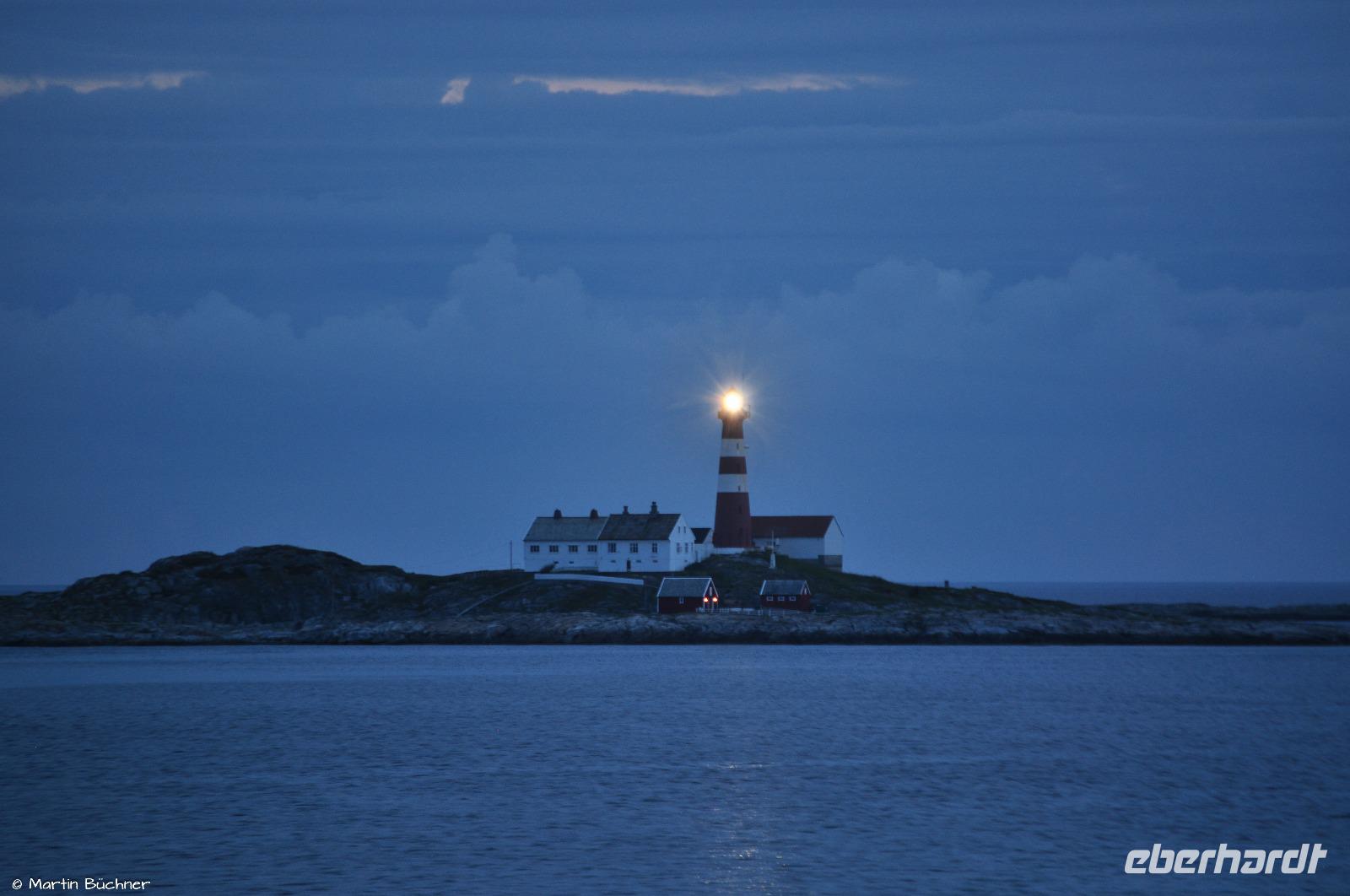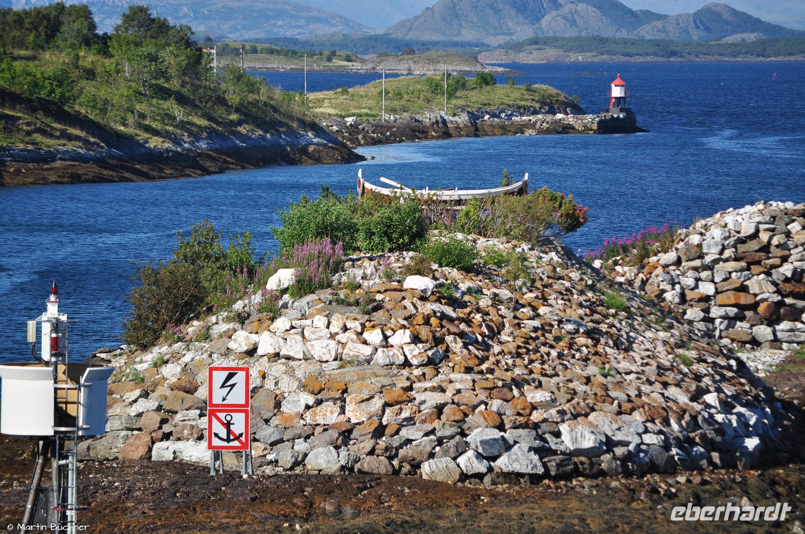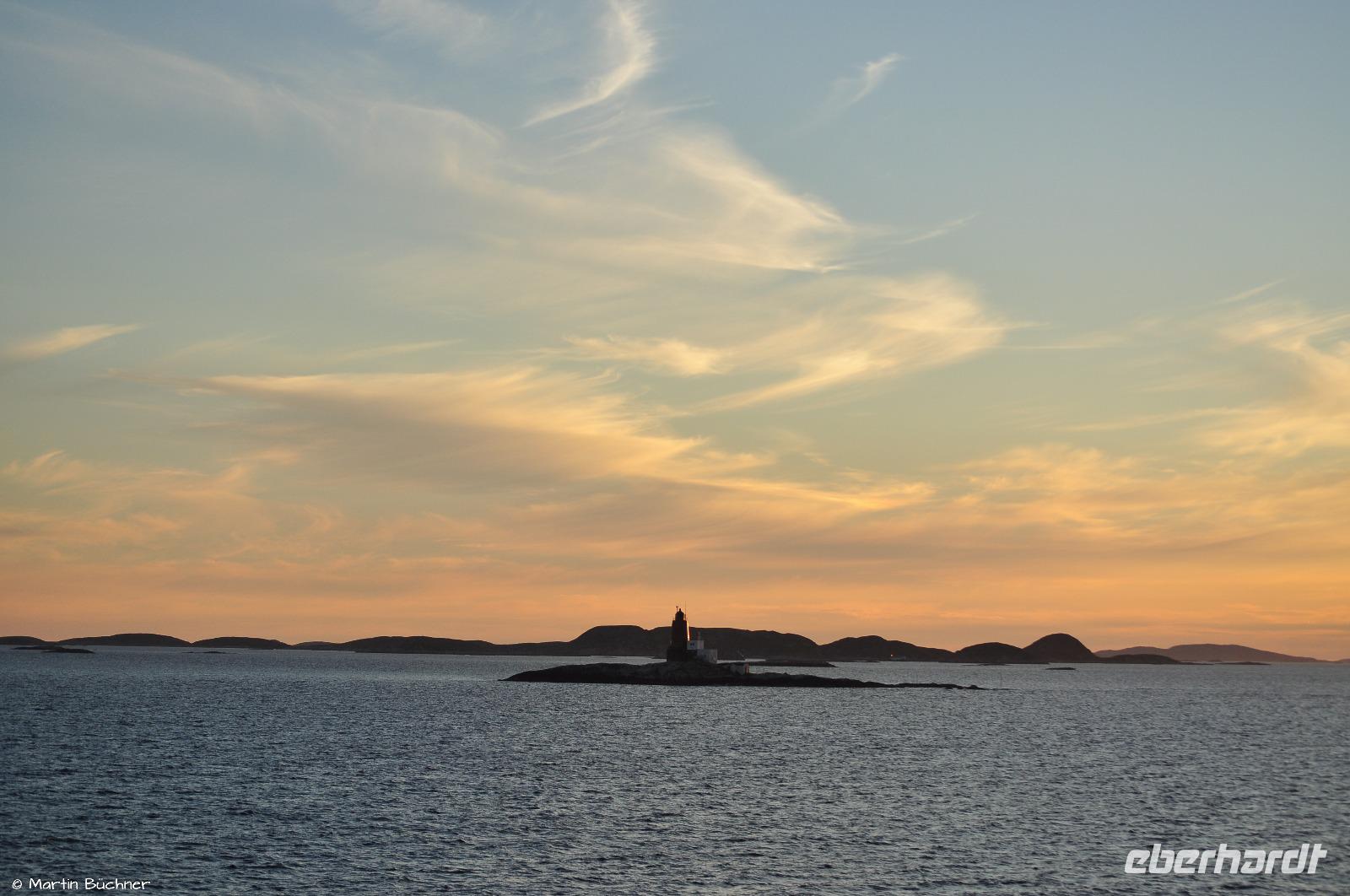 Am frühen Nachmittag passieren wie den Leuchtturm Kjeungsskjaer fyr. Ein roter achteckiger Leuchtturm, der bekannteste der Hurtigruten Strecke.