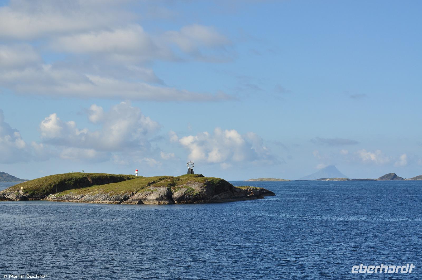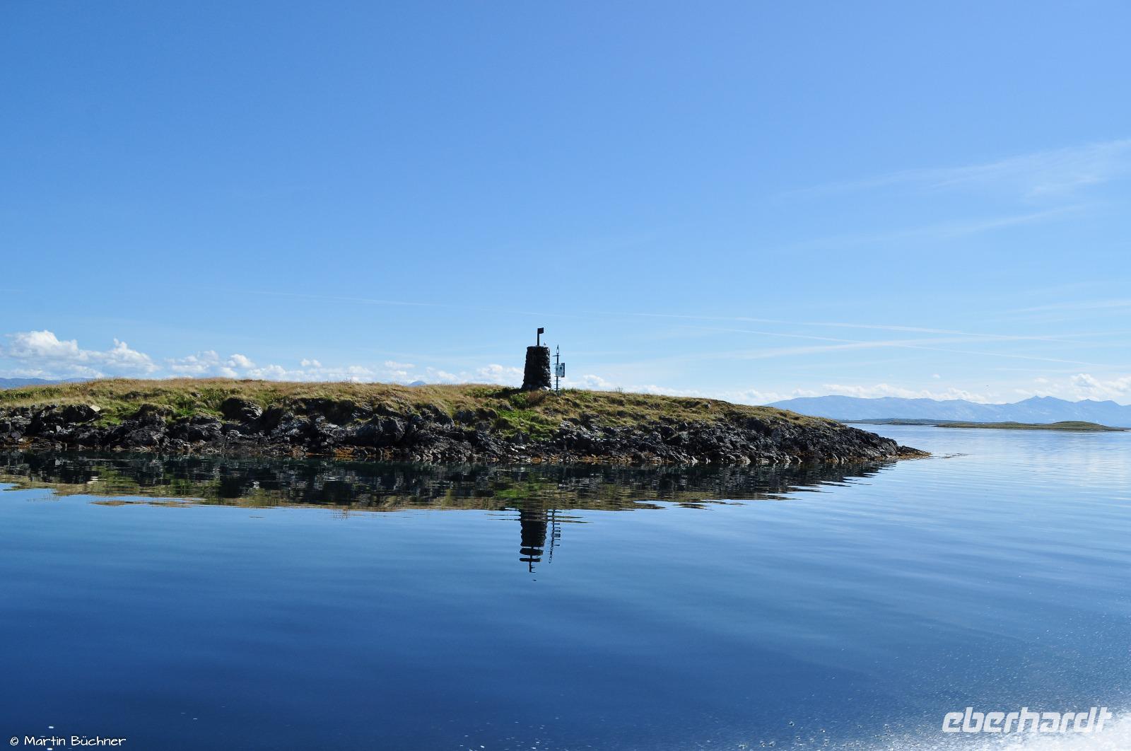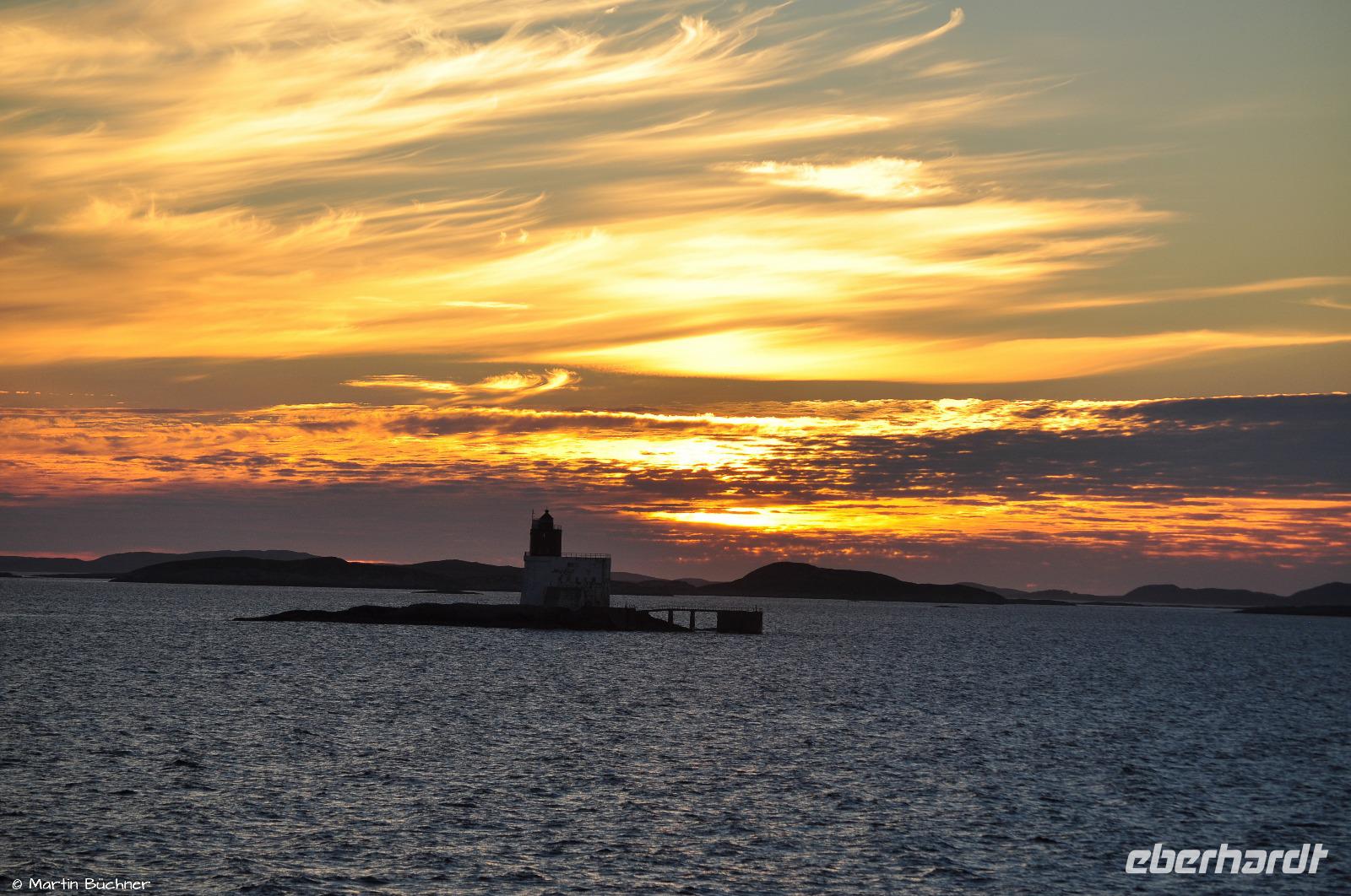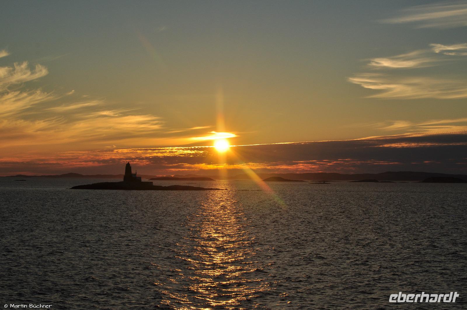 Am frühen Nachmittag passieren wie den Leuchtturm Kjeungsskjaer fyr. Ein roter achteckiger Leuchtturm, der bekannteste der Hurtigruten Strecke.