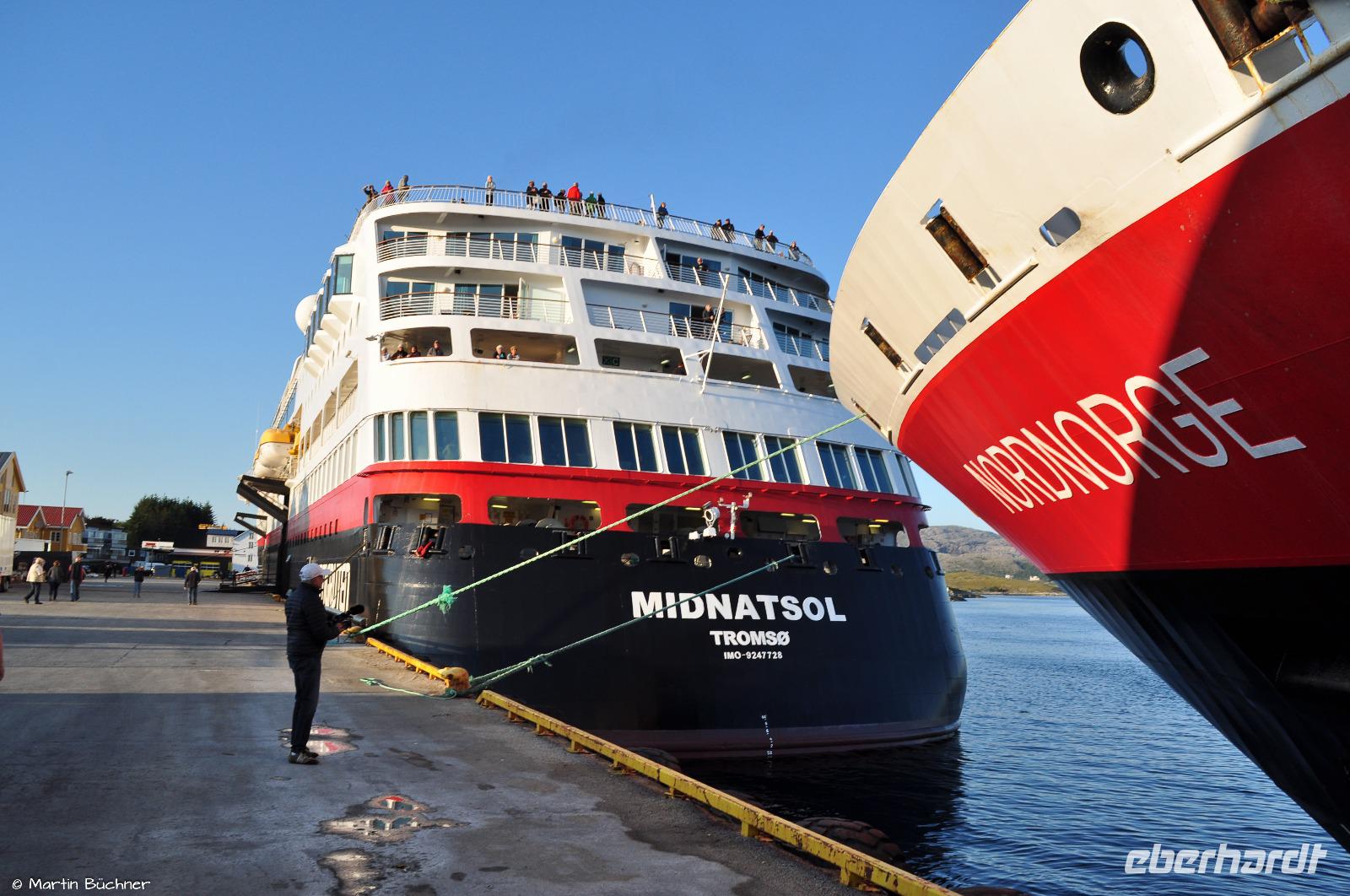 Am Abend liegt das Schiff gemeinsam mit dem südgehenden Schiff in Rörvik. Heute ist es die M/S Midnatsol, das größte in der Hurtigruten Flotte, es kann besichtigt werden.