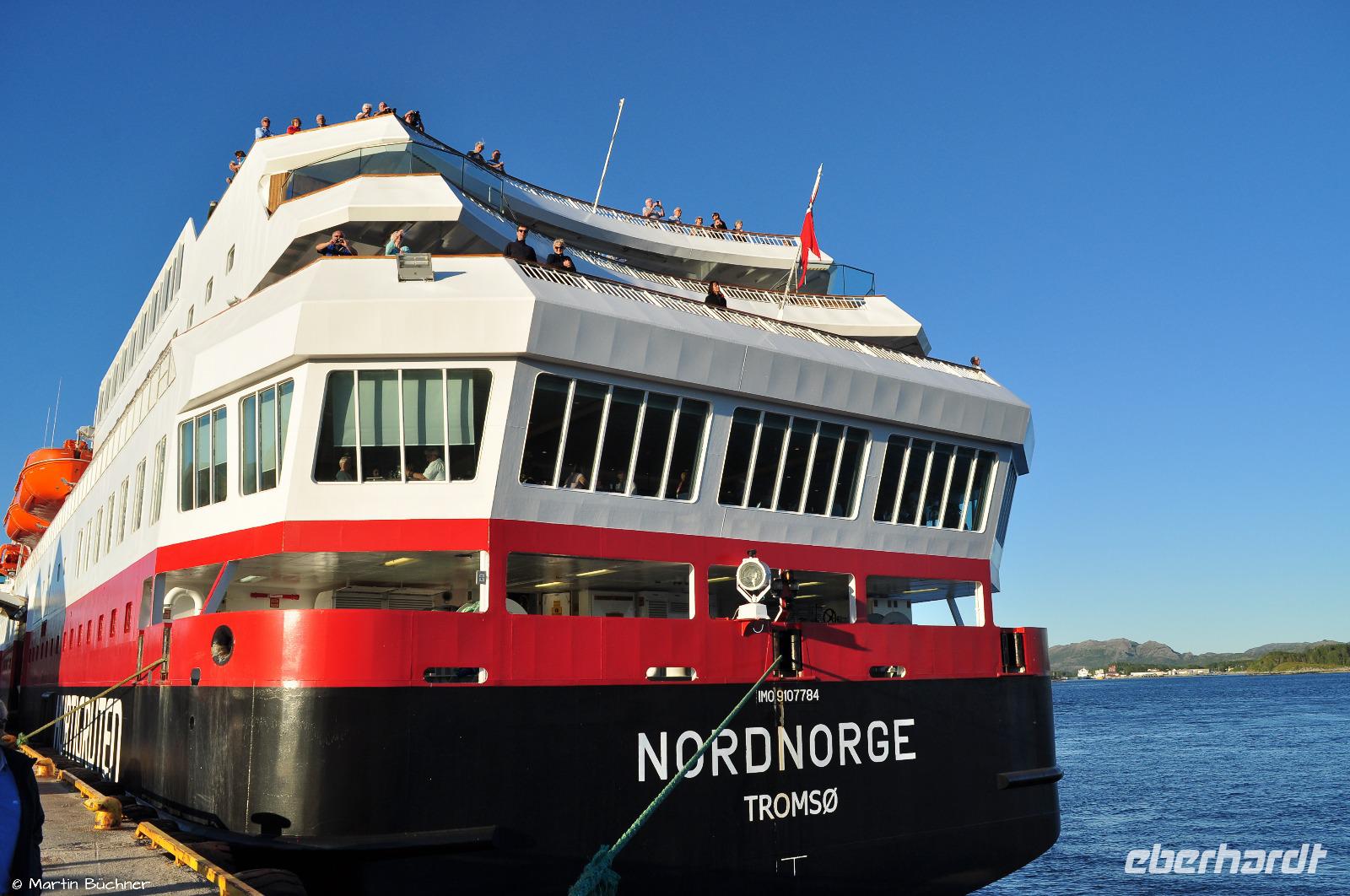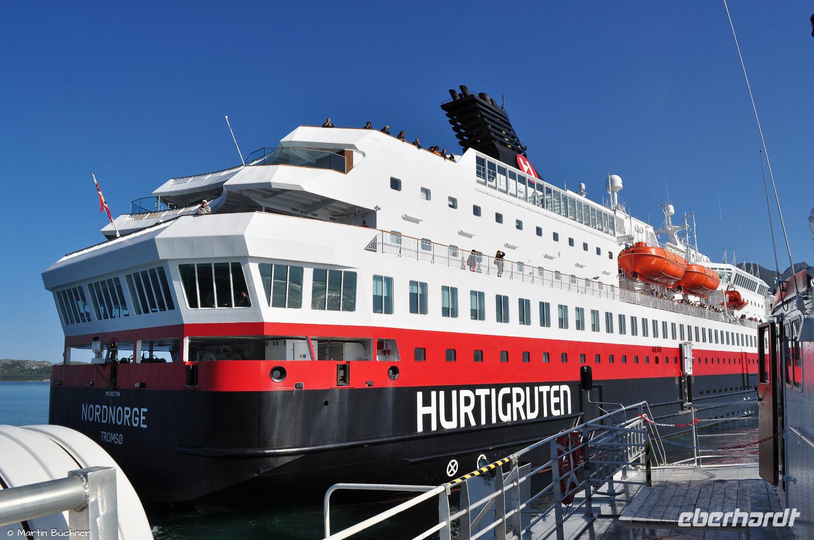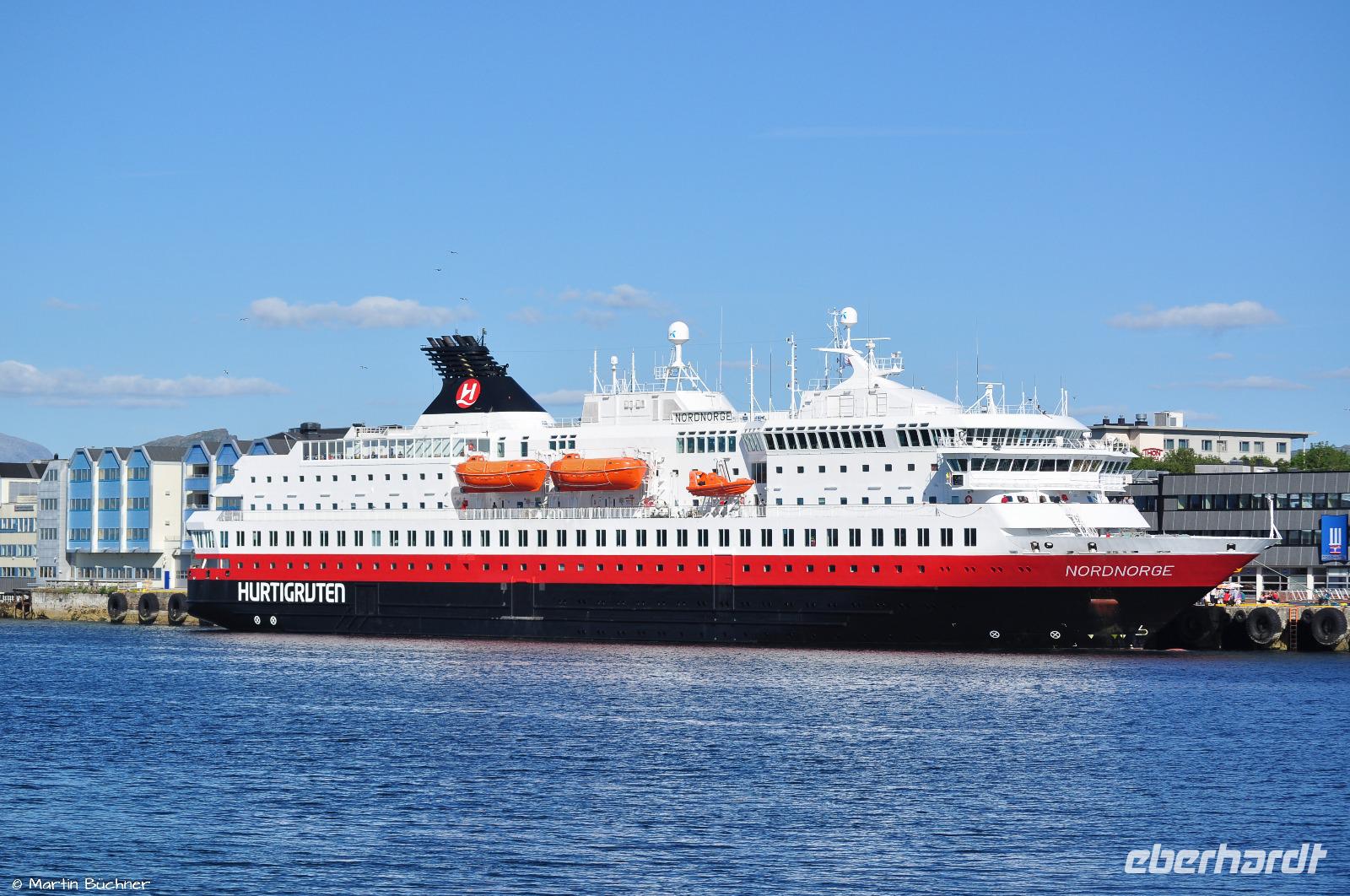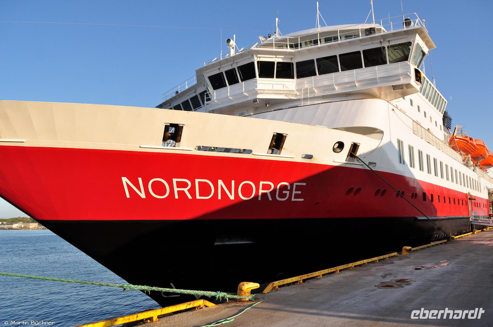 Die nordwärts gehende Hurtigruten M/S Nordnorge legt um Punk 12.00 Uhr ab.