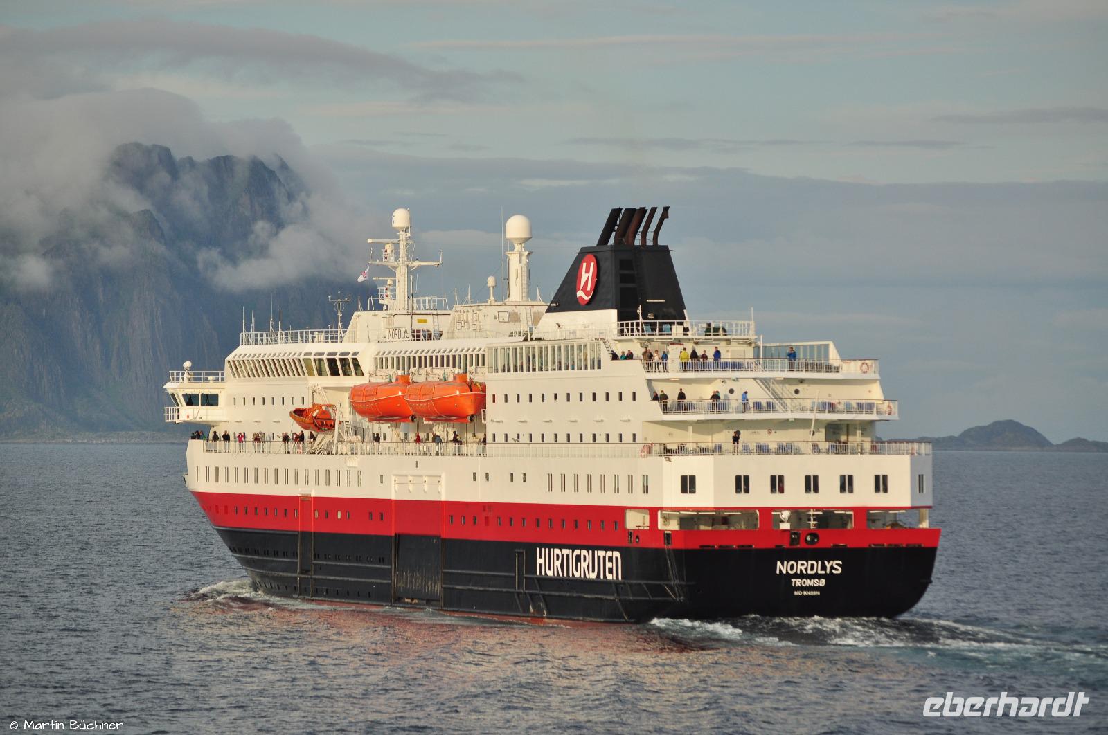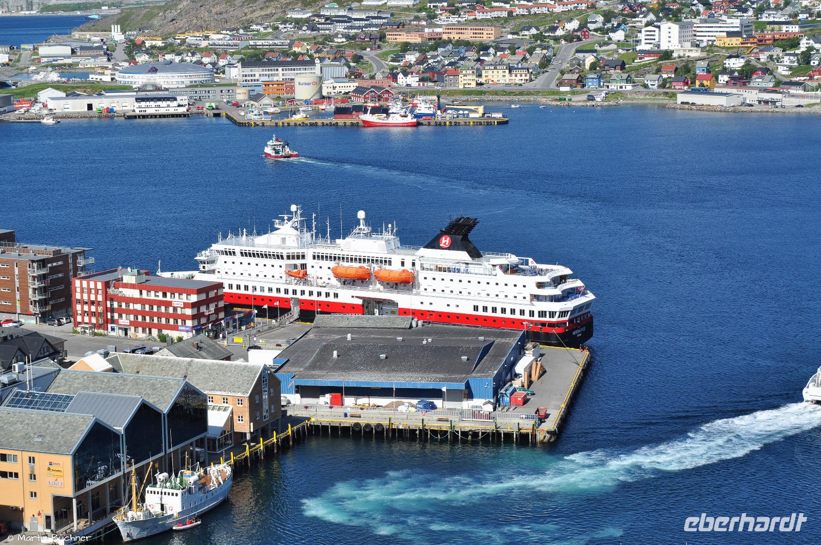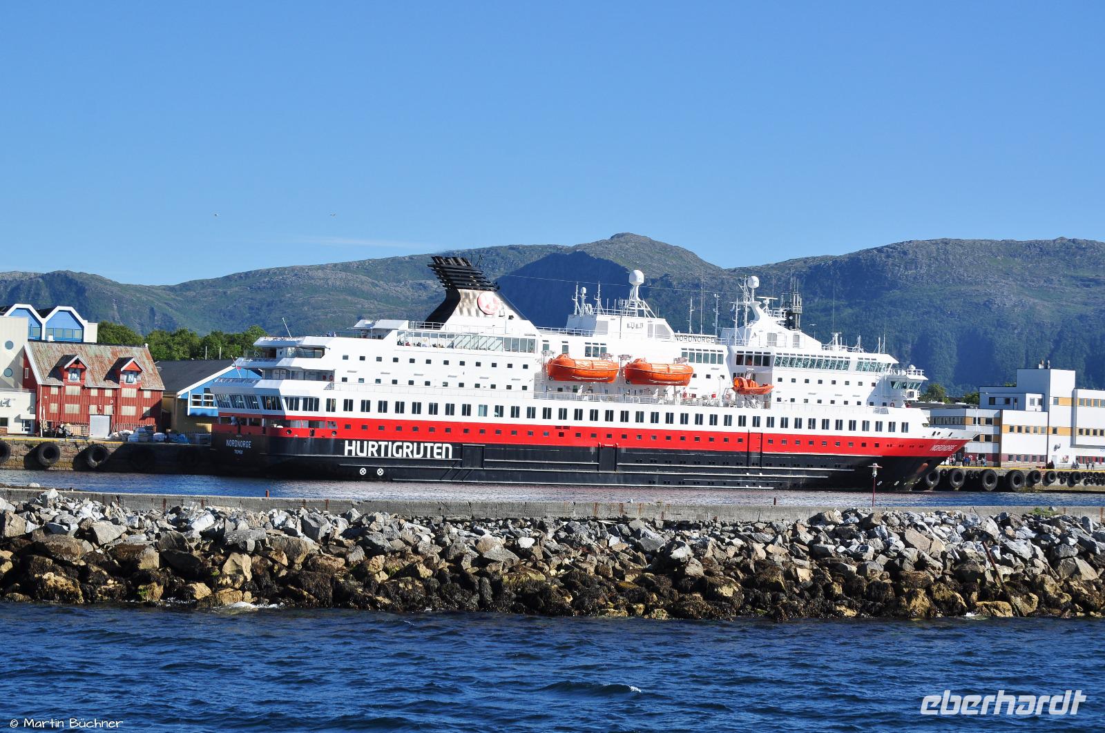 Die nordwärts gehende Hurtigruten M/S Nordnorge legt um Punk 12.00 Uhr ab.